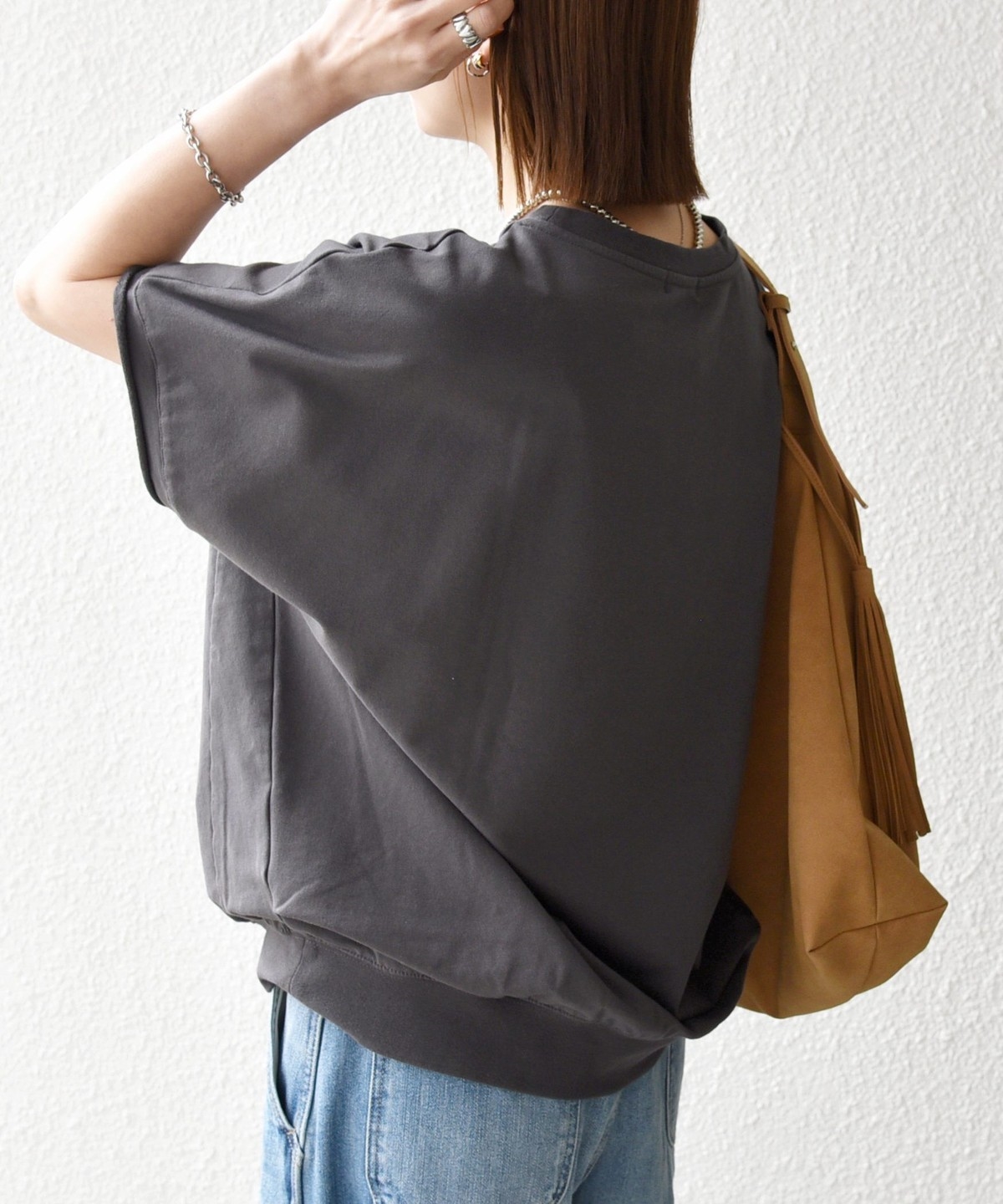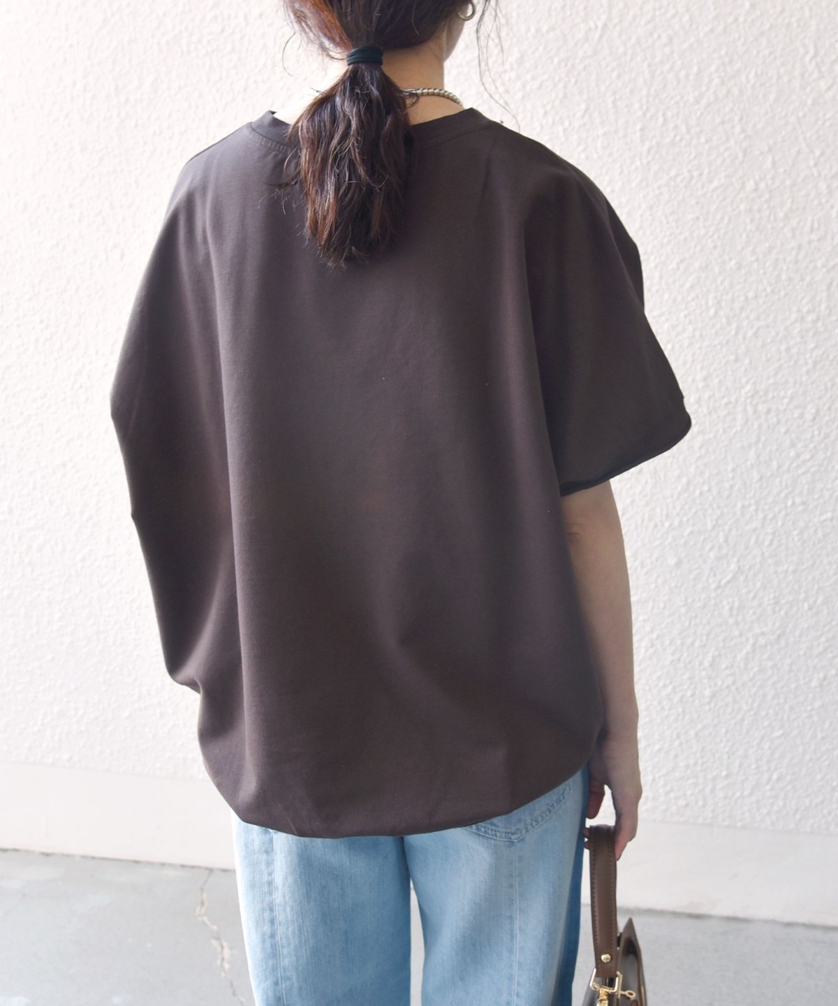 裾に施されたリブは柔らかく締め付けすぎないので、さらっと着るだけで自然とコクーンシルエットが出てくれます。