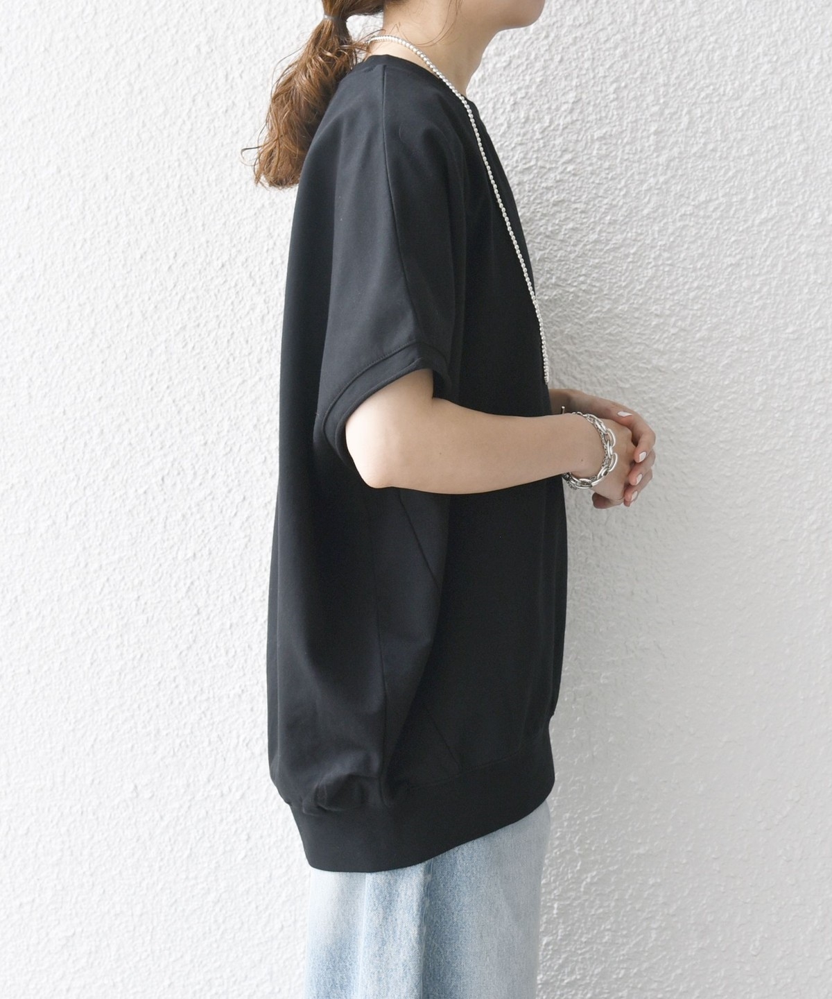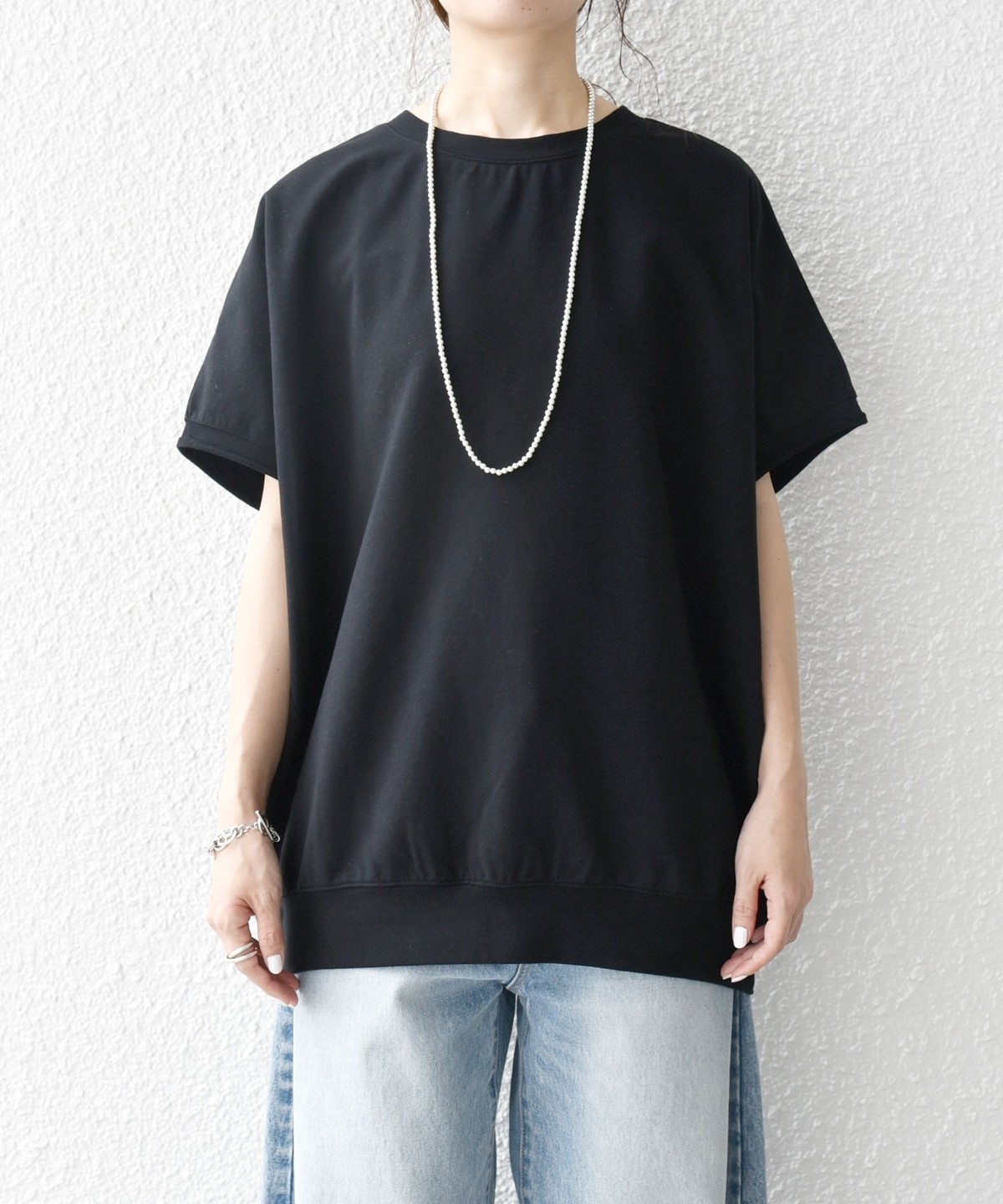 3. 《一部予約》【WEB限定】SHIPS any:〈洗濯機可能〉インレイ コクーン ショートスリーブ プルオーバー ブラック
