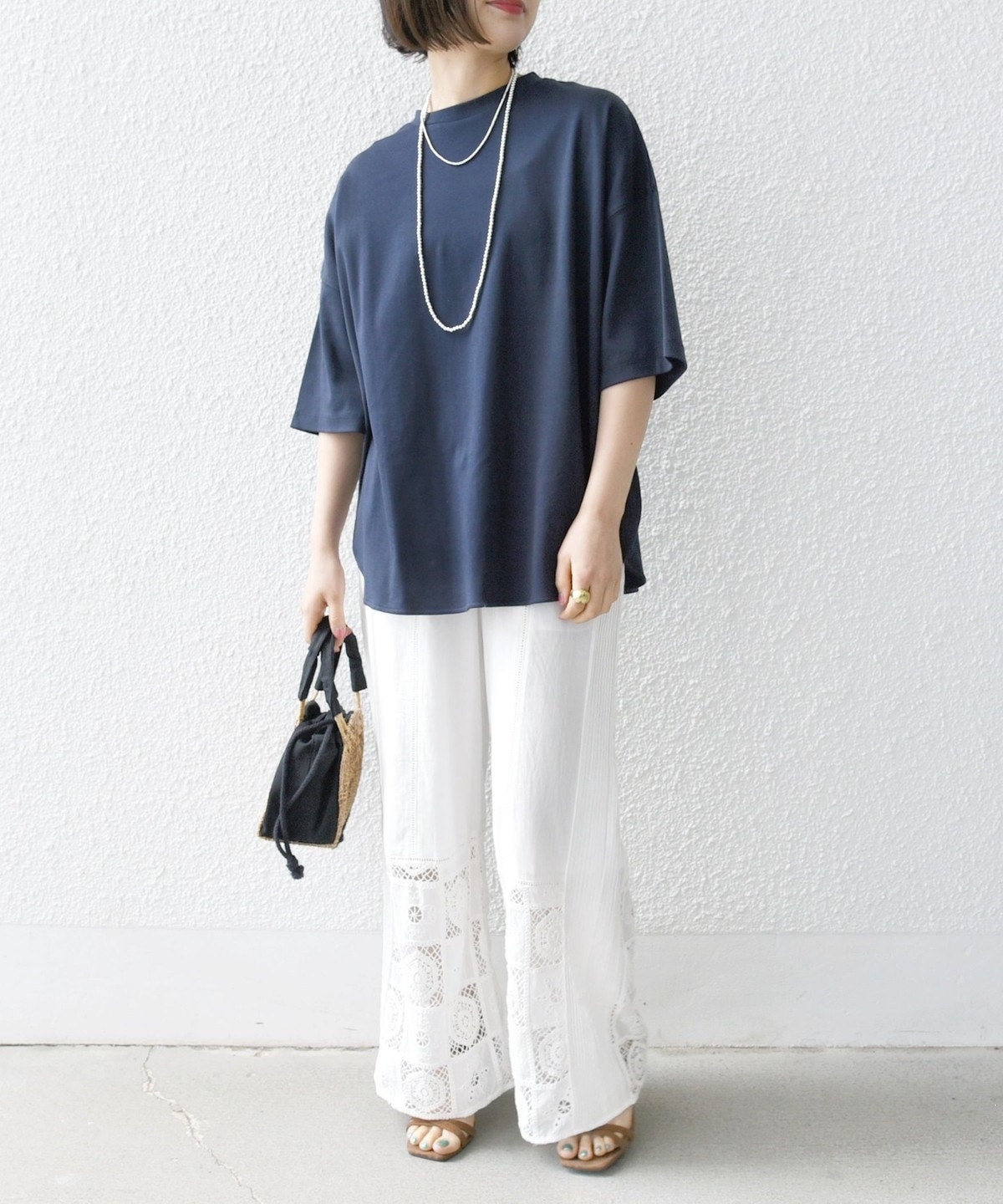 ワイドパンツやロングスカートとのルーズなコーディネートも今季らしく、抜け感を演出できます。