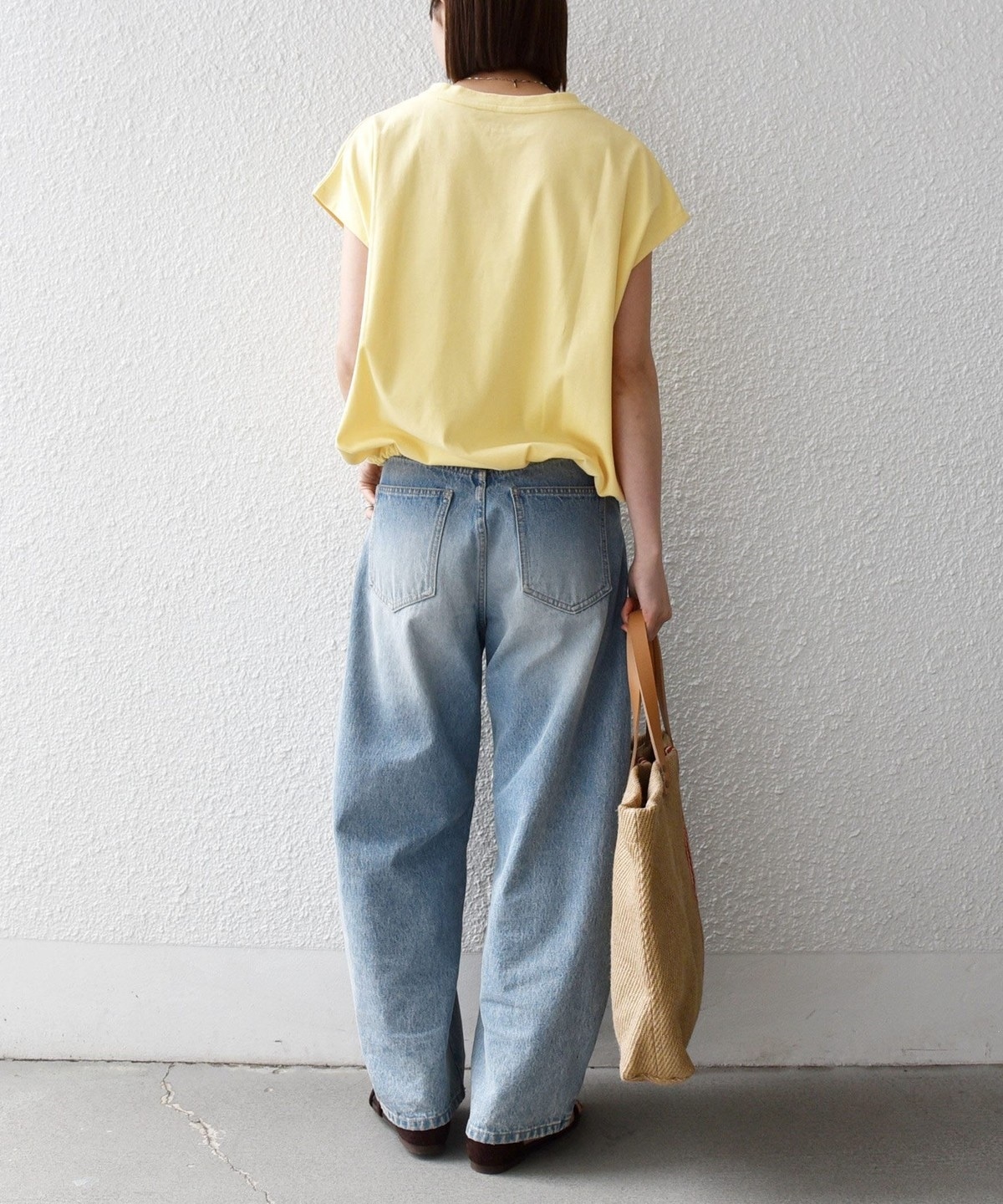 デニムやテーパードパンツに合わせれば、裾のドローストリングでつくる立体感がスタイリングのアクセントに。