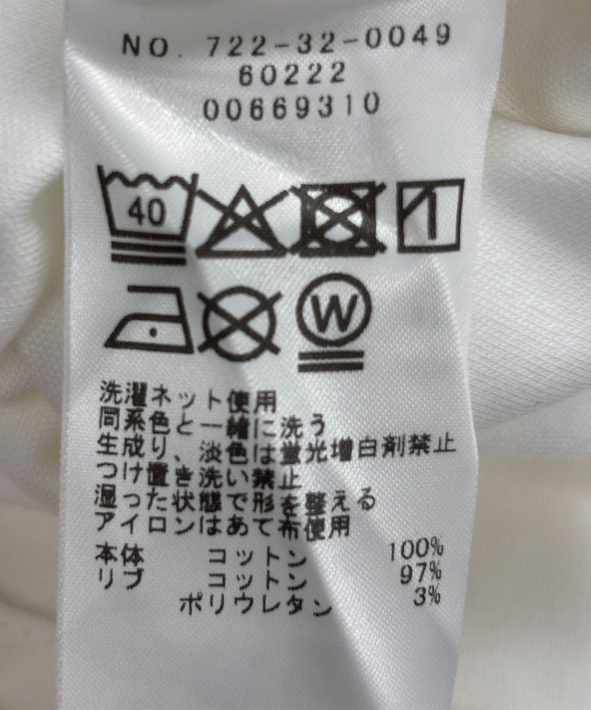 素材:本体: コットン100%, リブ: コットン97%, ポリウレタン3%