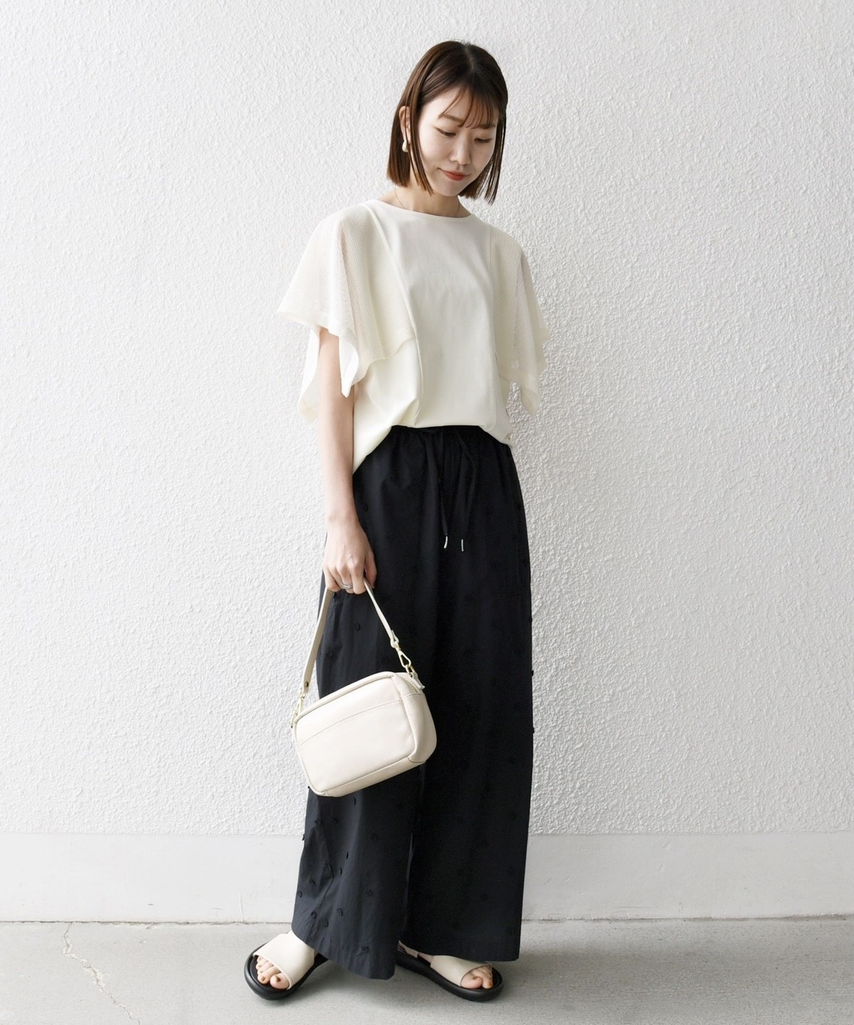 カットソーですがラフすぎないデザインなので、スラックスと合わせて大人っぽくまとめるのも素敵です。