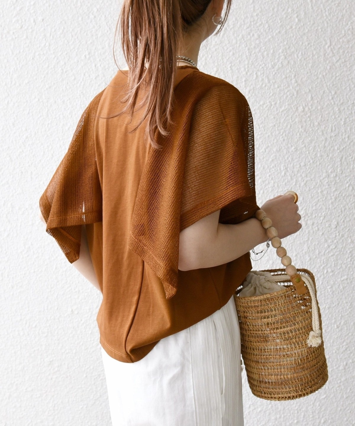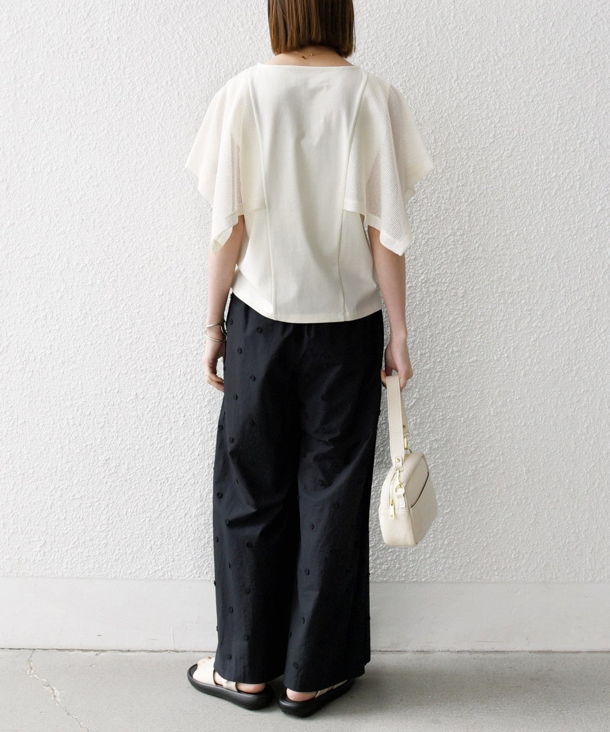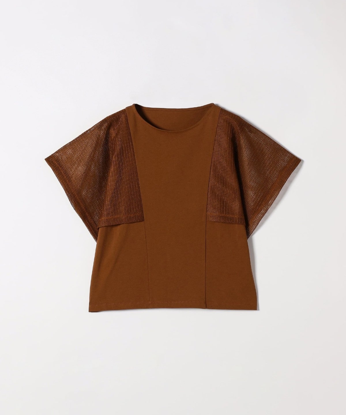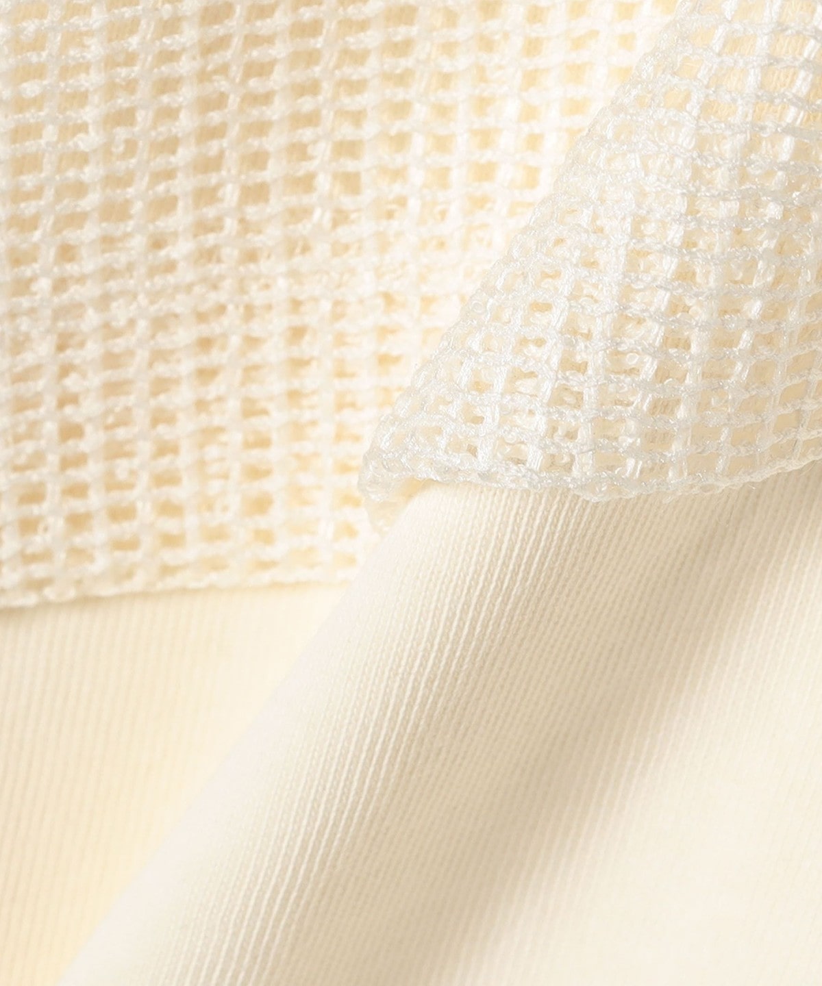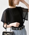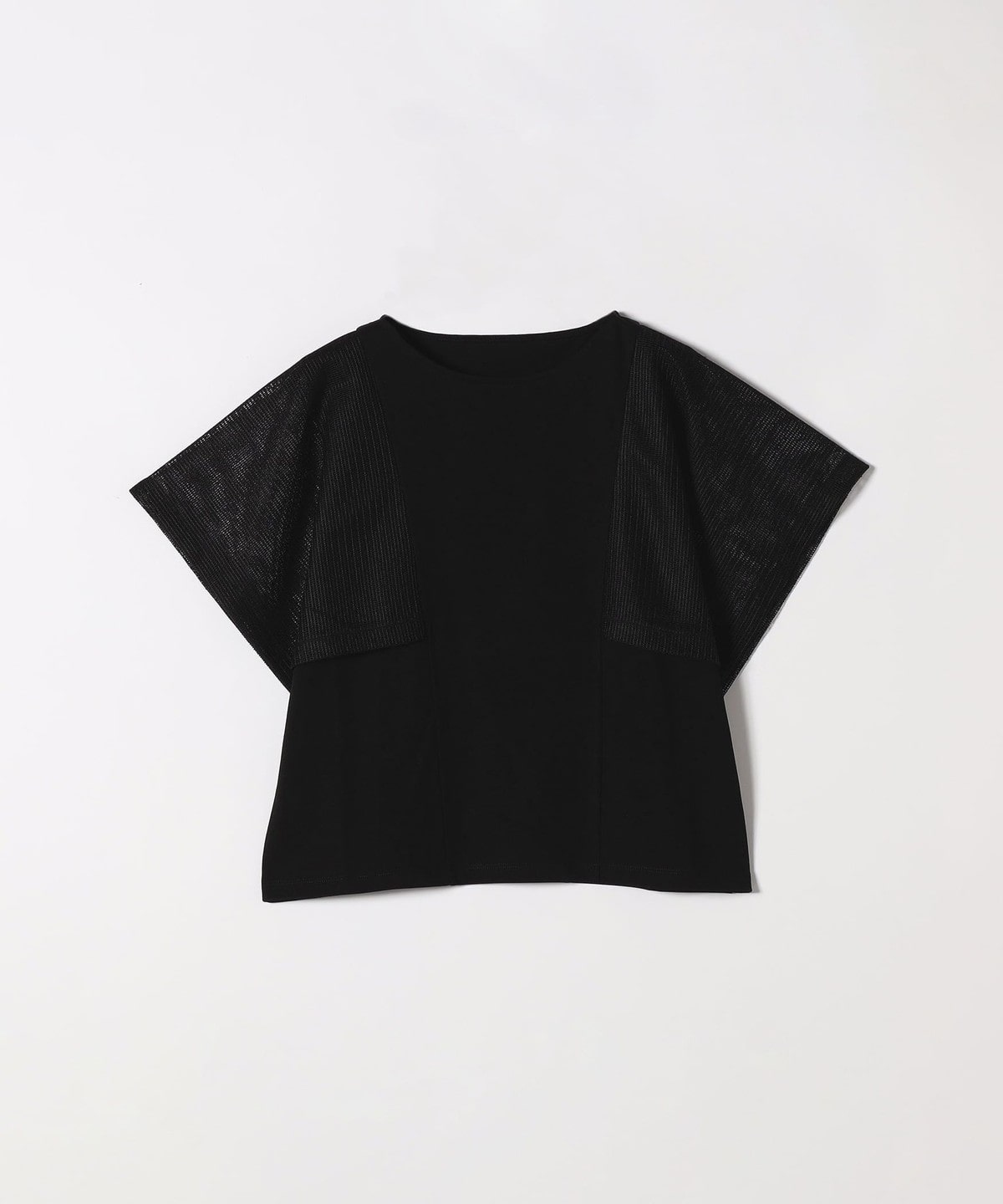 シアーでトレンド感のあるメッシュ素材の袖が、涼しげな印象のデザインTシャツ。