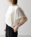 スクエア型のハンカチーフスリーブで動くたびに揺れて女性らしさを演出します。