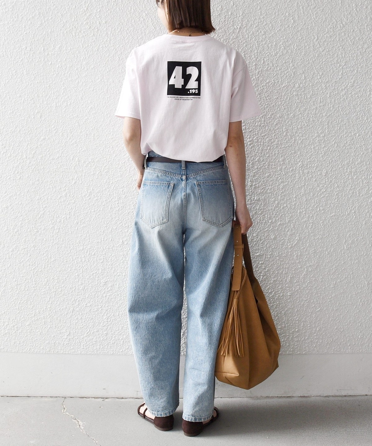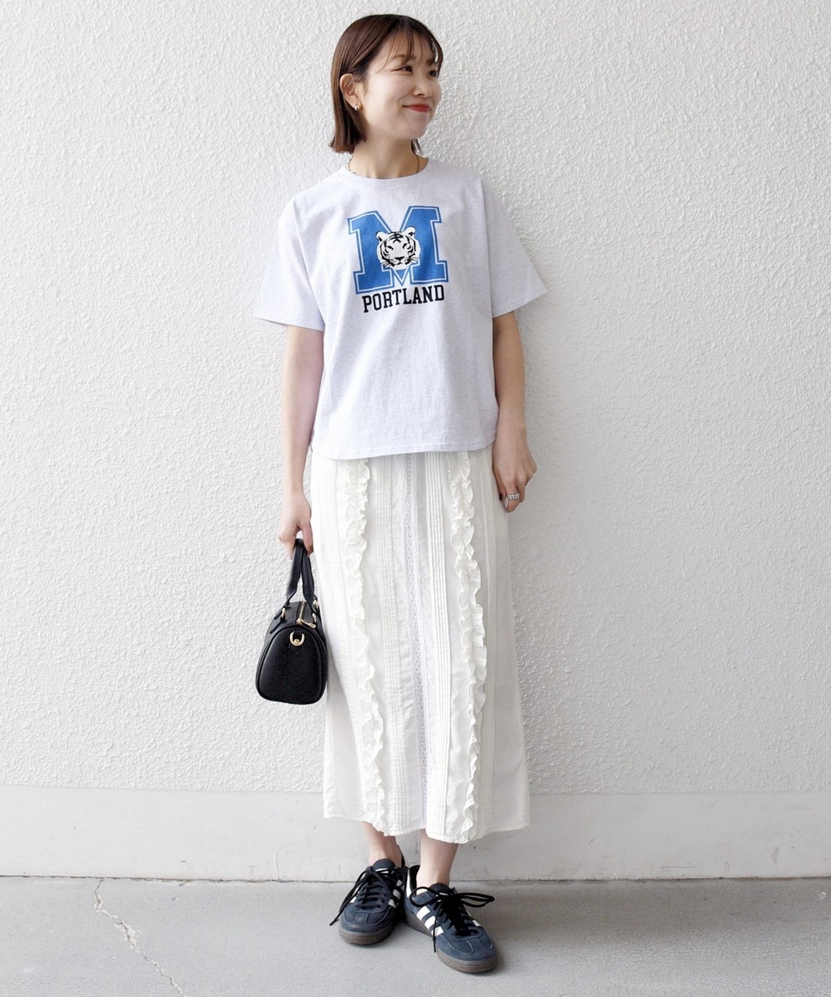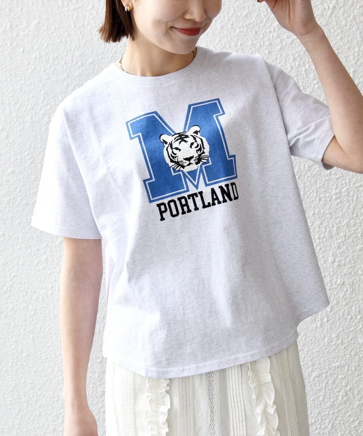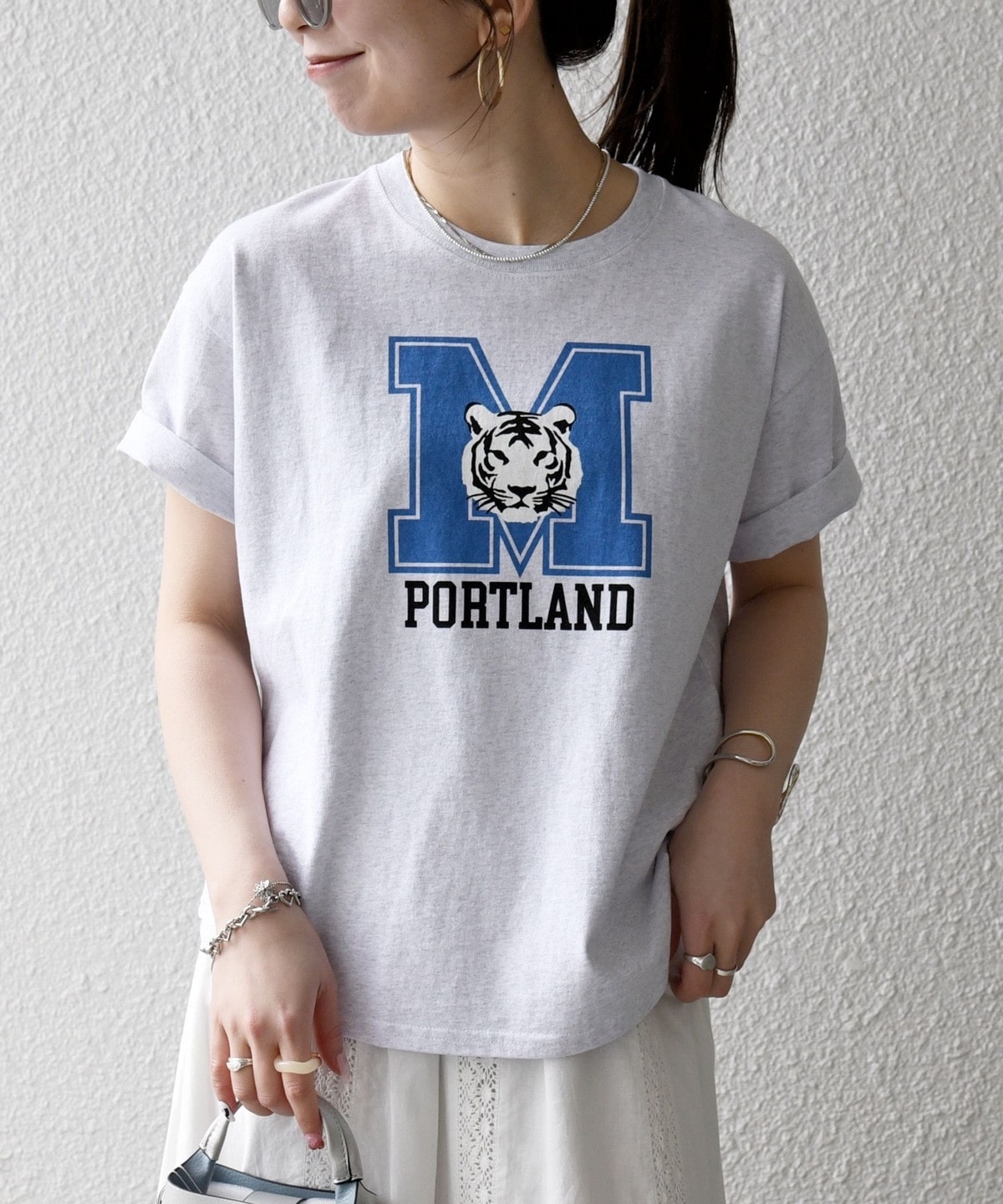 ラウンドヘムで短めの着丈は、インしなくてもバランスよく着こなせるのが魅力◎