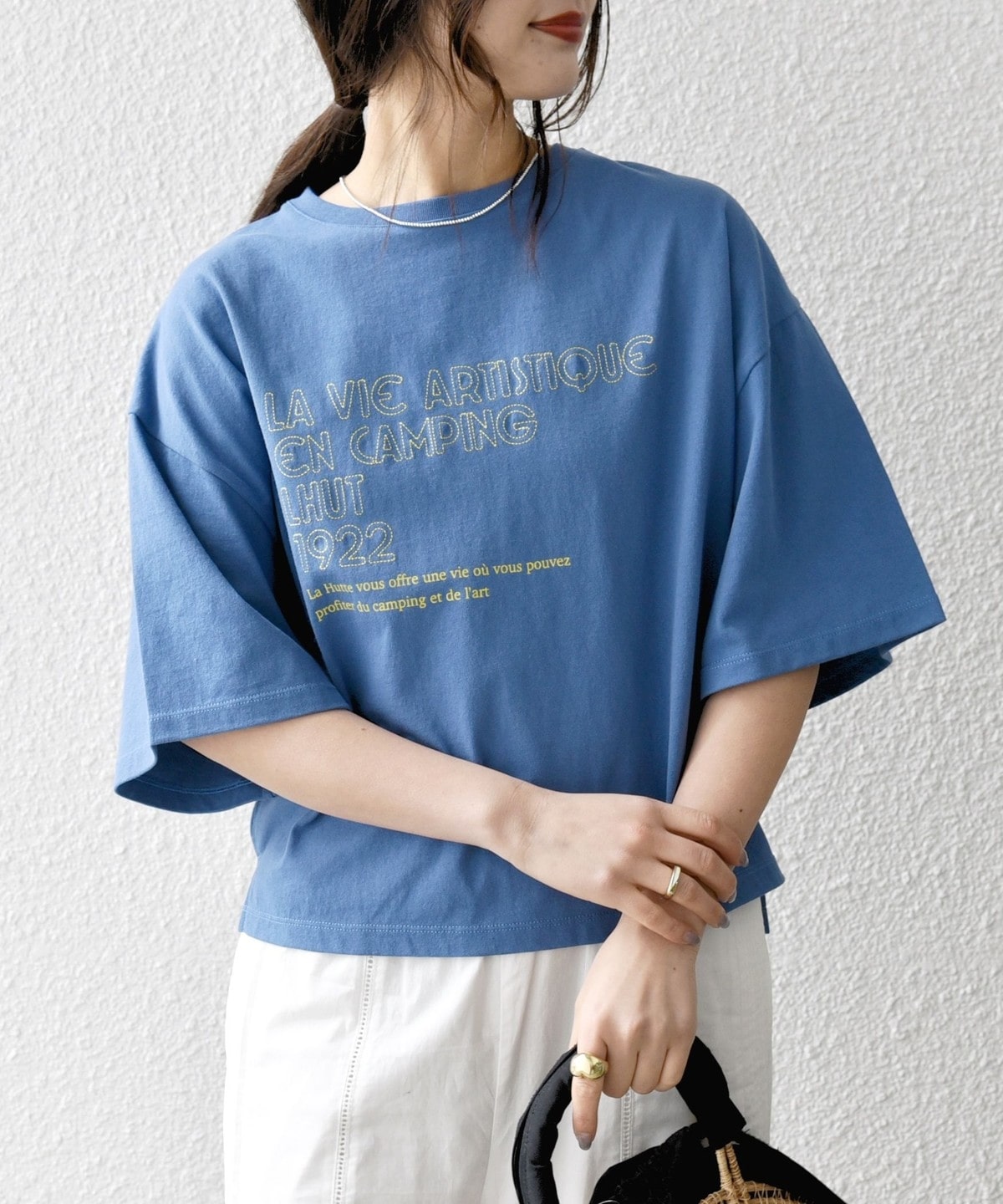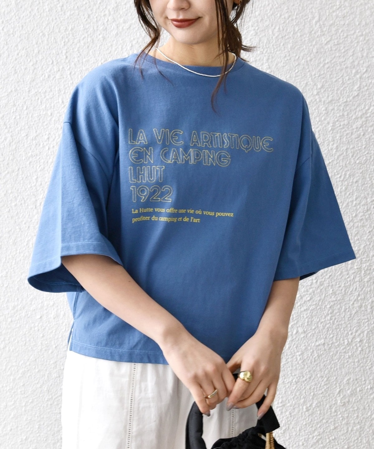 【SHIPS any別注】Collegiate Pacific:〈洗濯機可能〉V ガゼット プリント & 刺繍 Tシャツ 25SS