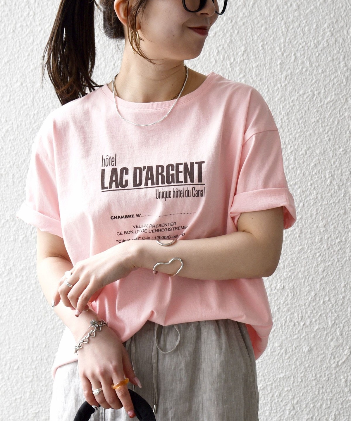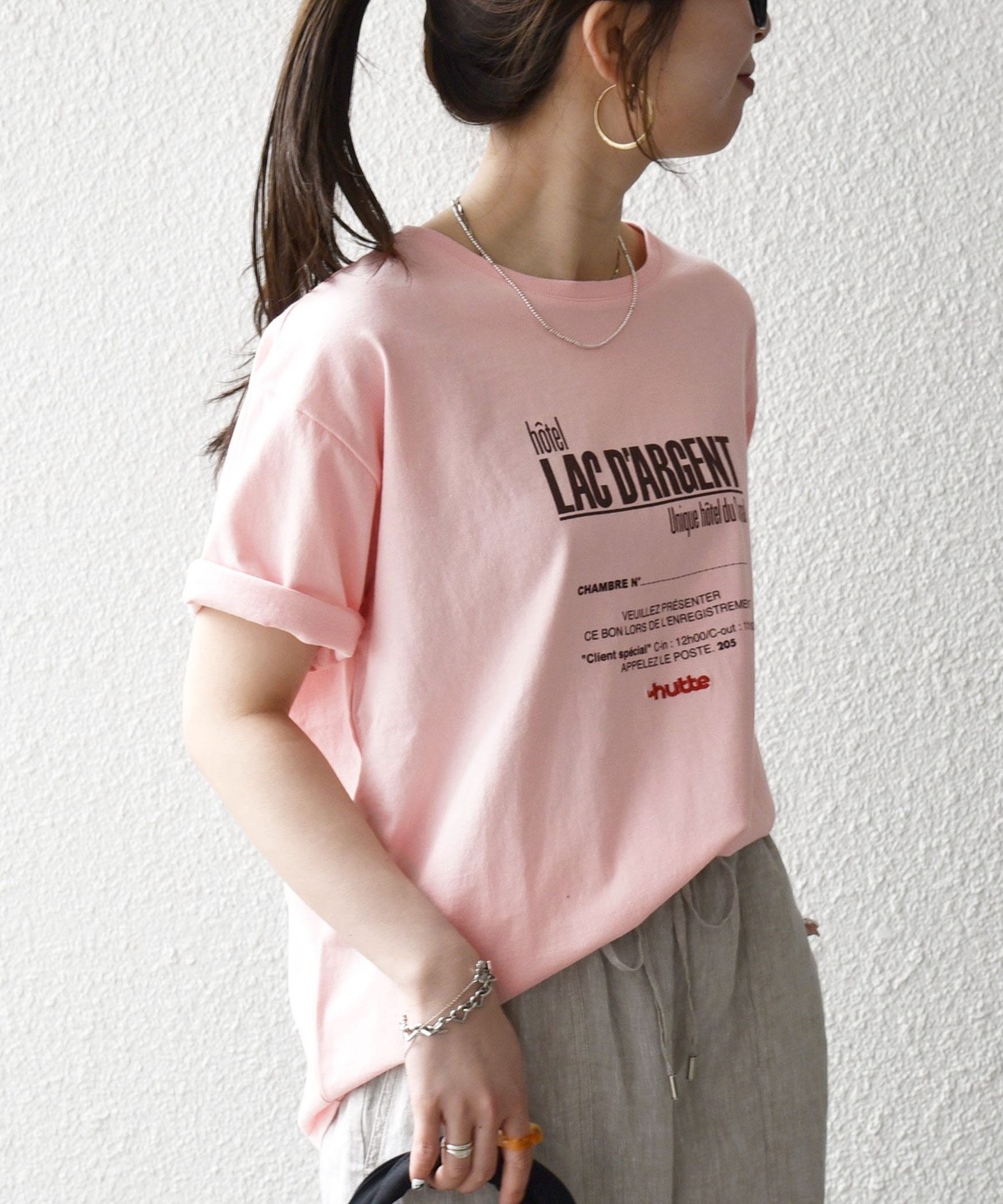 4. 《予約》【SHIPS any別注】La Hutte:〈洗濯機可能〉デザイン ロゴ プリント TEE 26SS ピンク