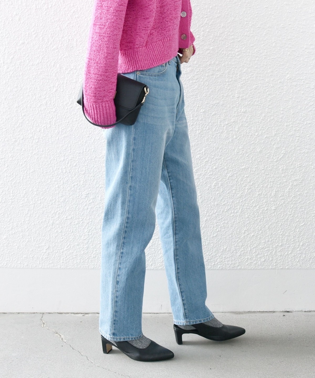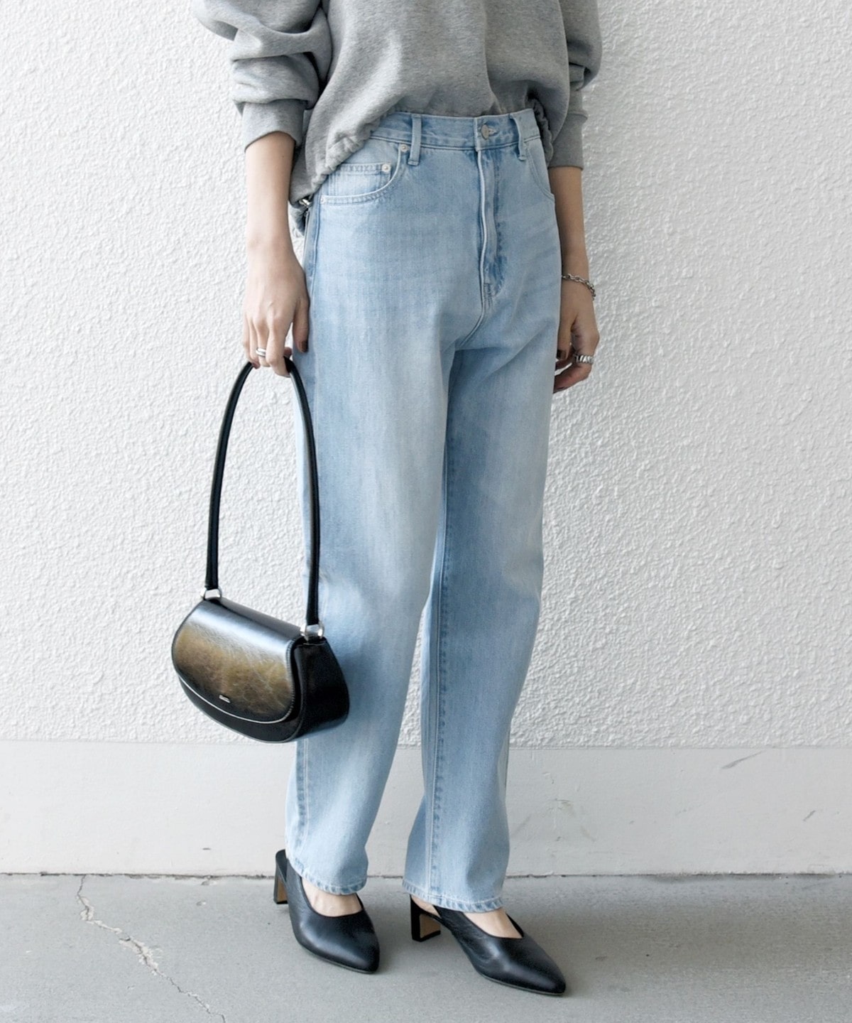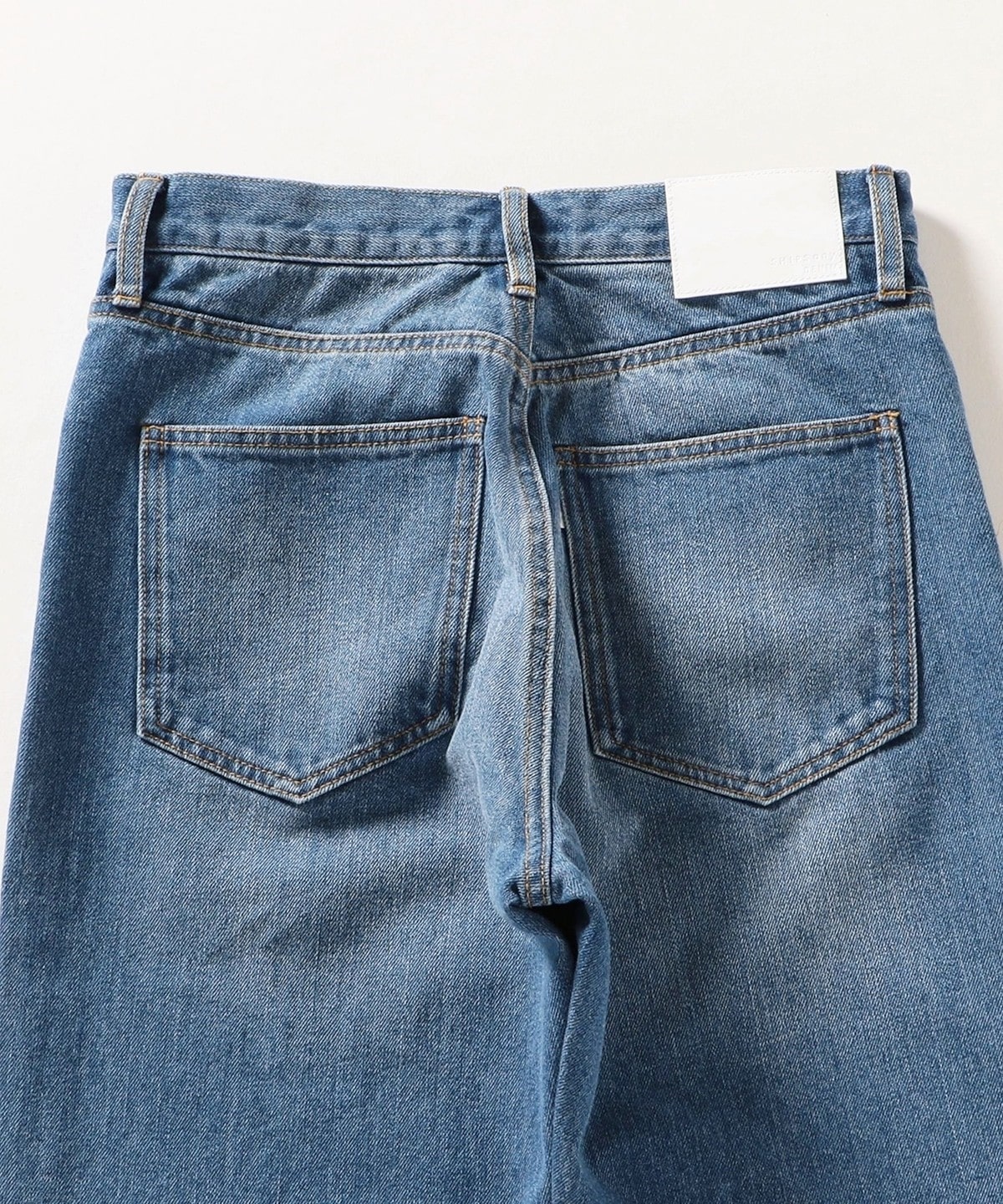 股上深めのハイライズで、ヒップ周りがややゆったりとした細すぎないカーヴィーなシルエットのデニムパンツ。