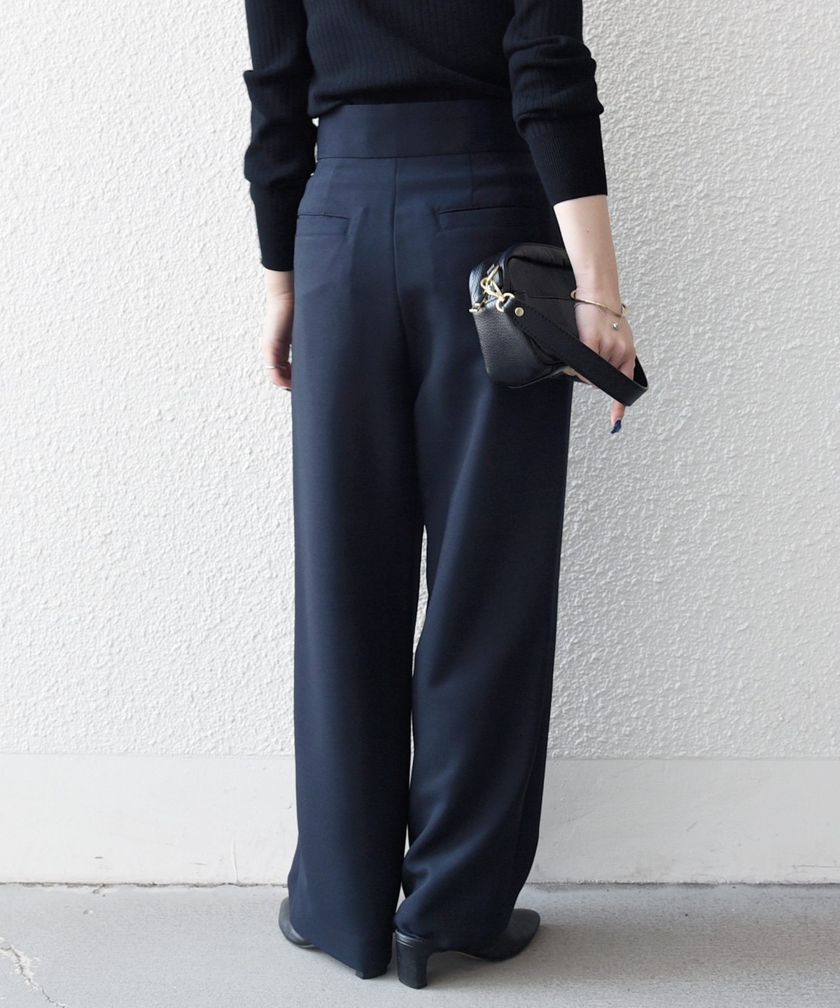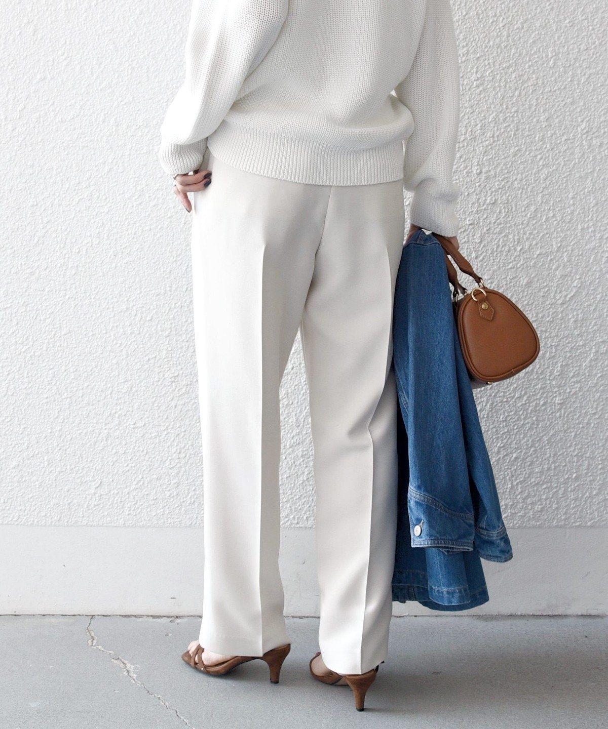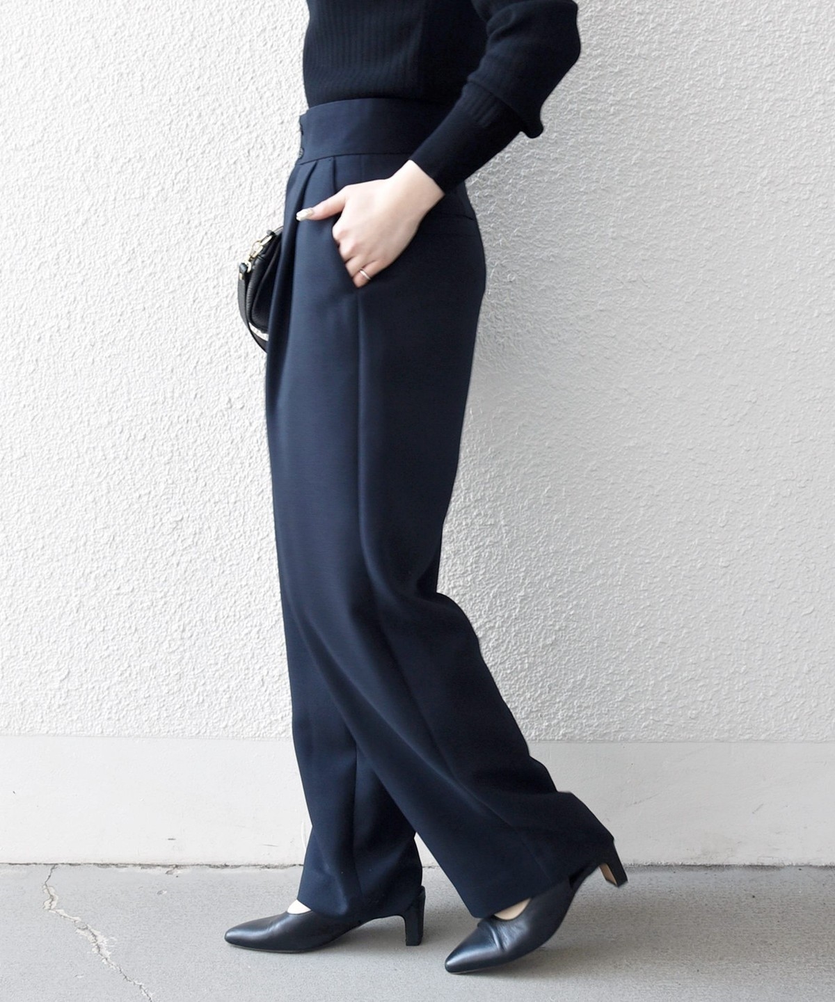 ワンタックのセンタープレスがきちんと感をプラスし、すっきりとした印象に。