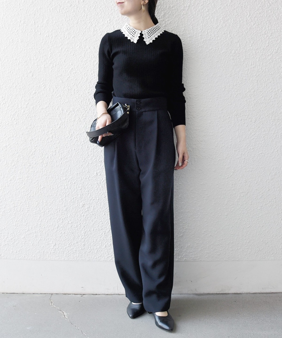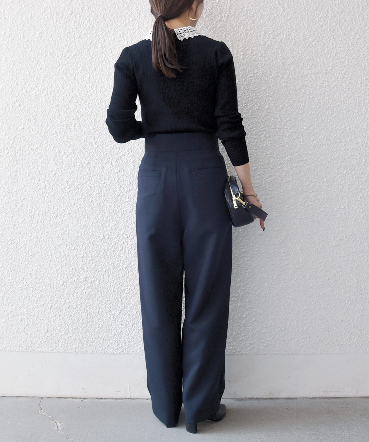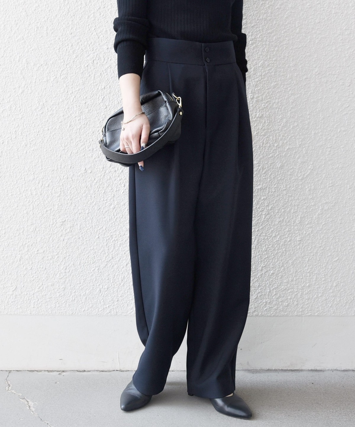 ワンタックのセンタープレスがきちんと感をプラスし、すっきりとした印象に。