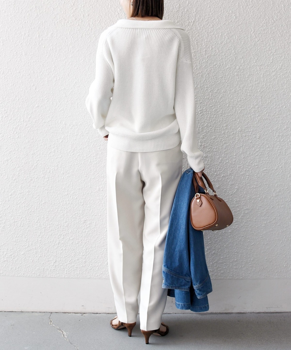 2. 《予約》SHIPS any:〈洗濯機可能〉ダブルクロス タック ストレート パンツ[NAVY BLUE] オフホワイト