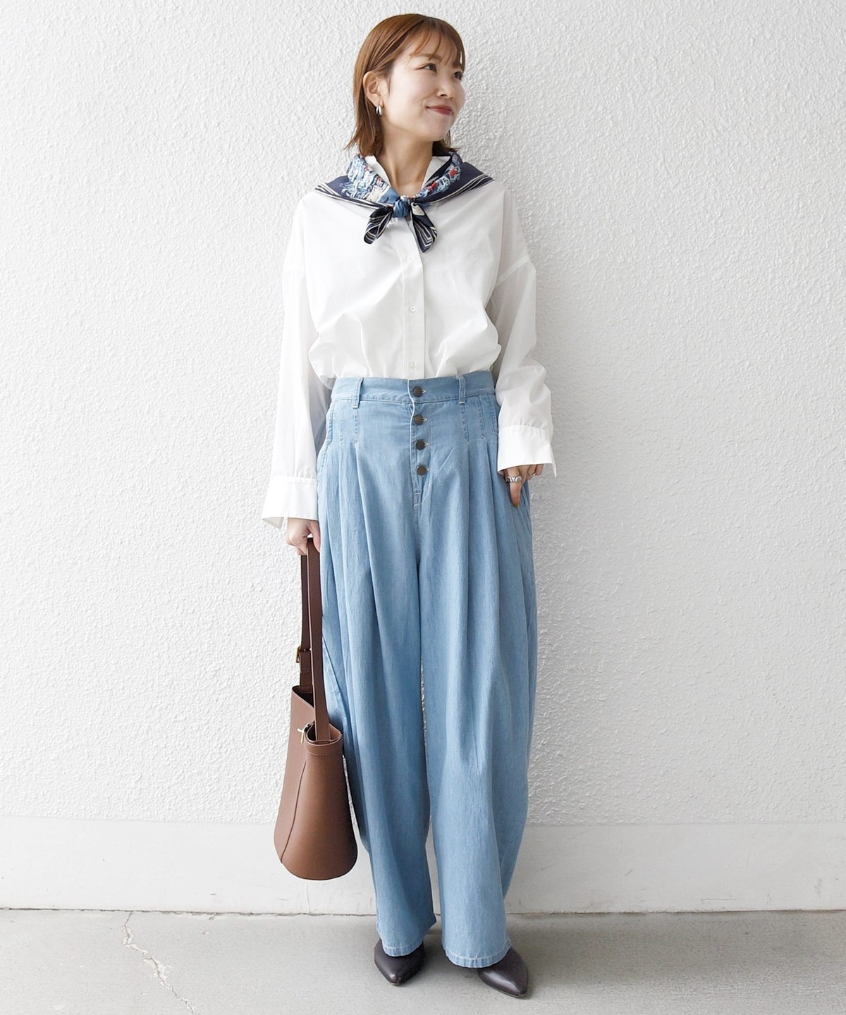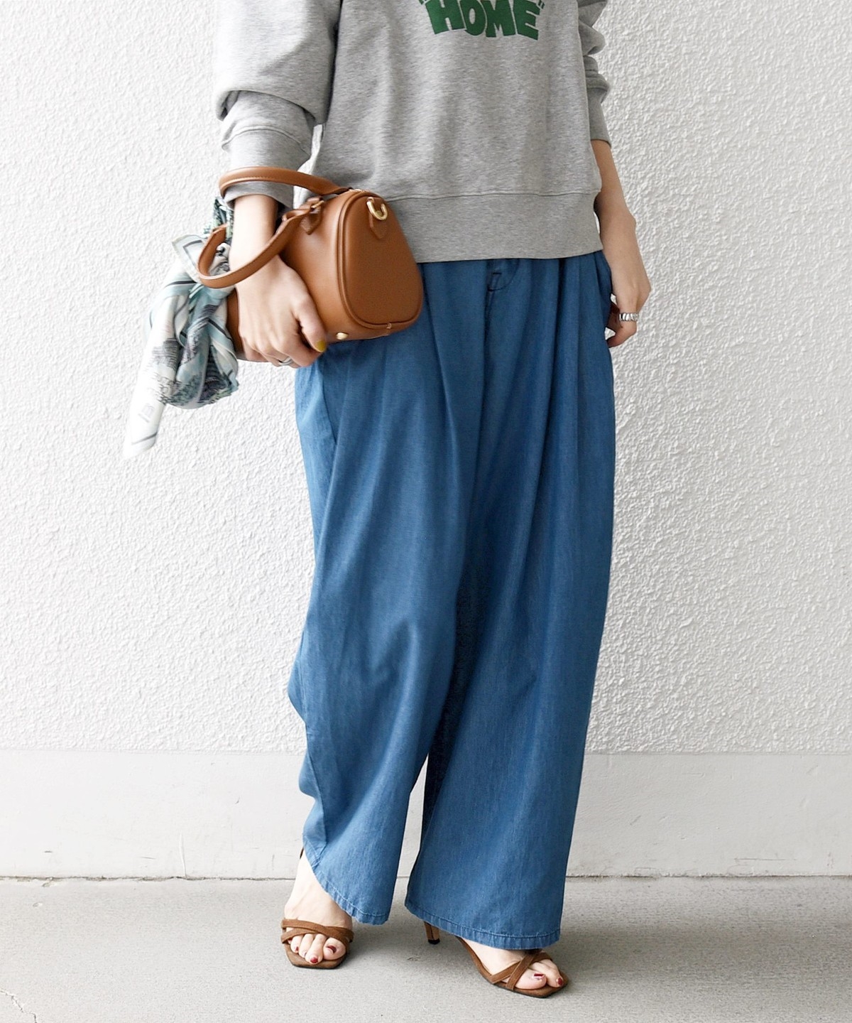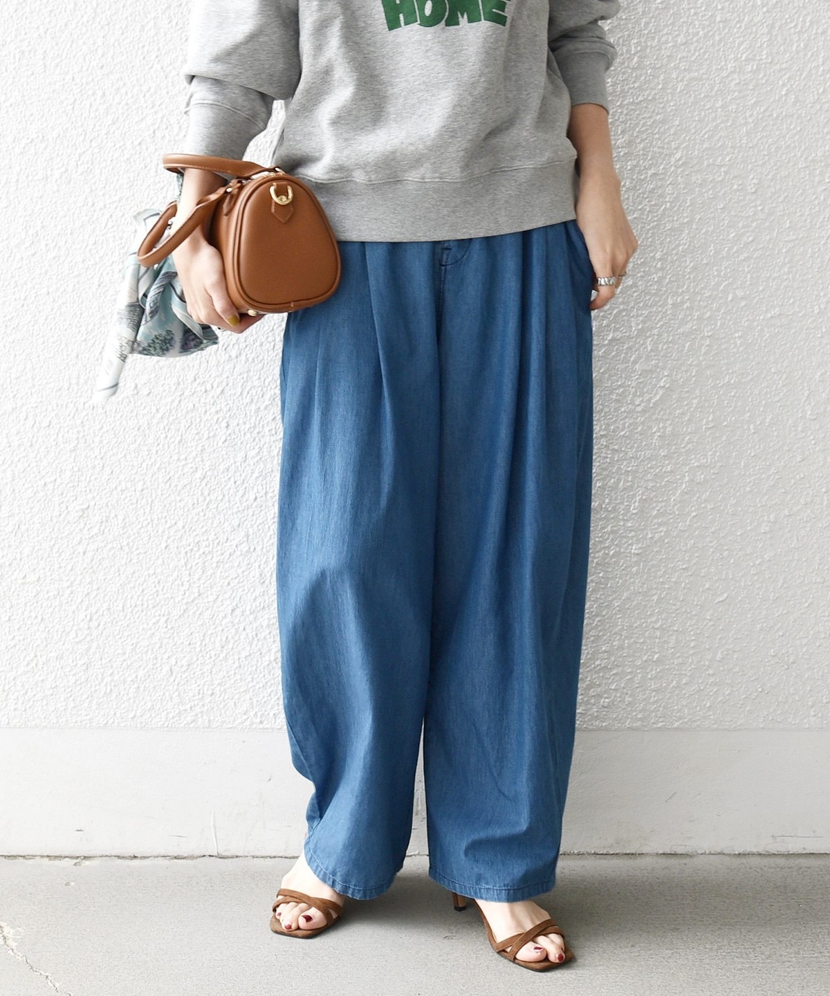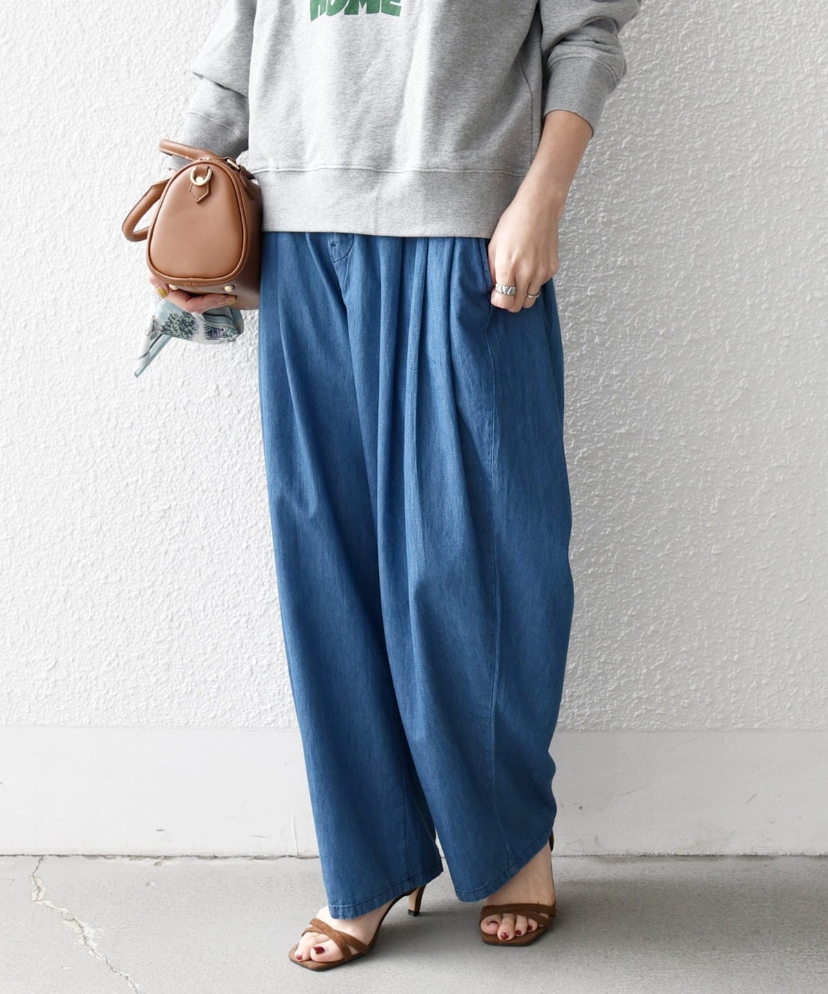 コンパクトなトップスと合わせてシルエットのコントラストを楽しむのもオススメです。