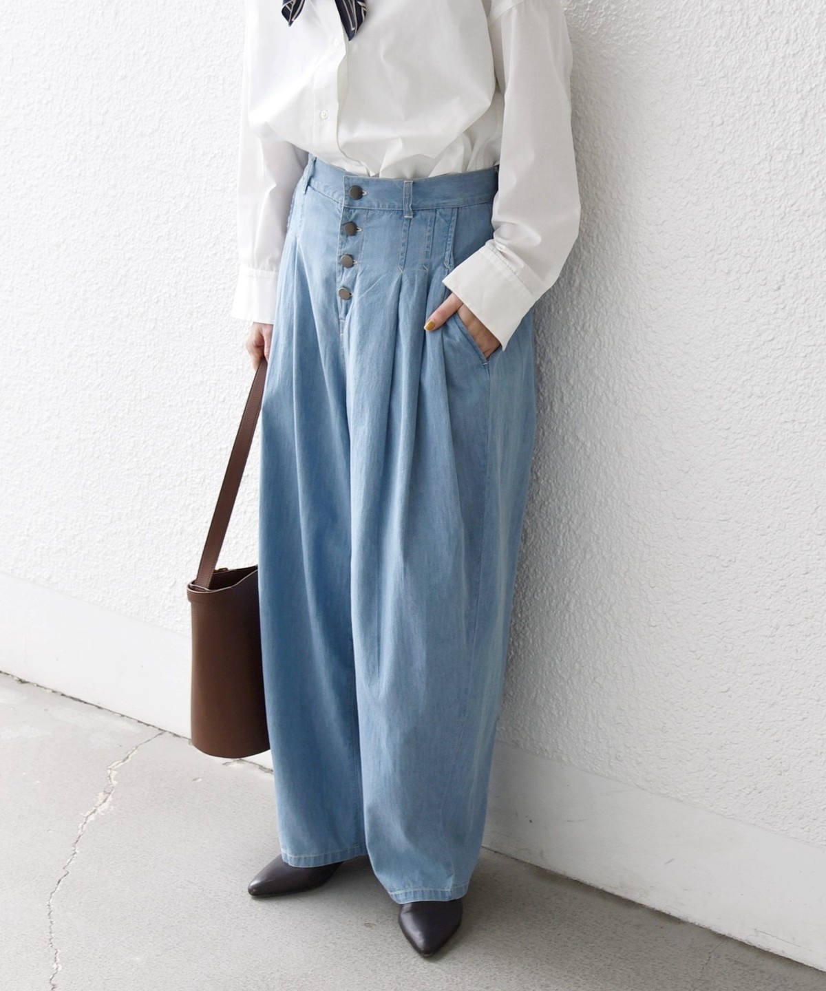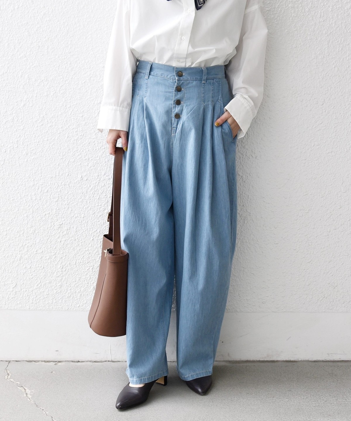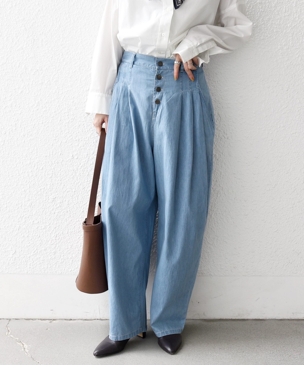 《予約》SHIPS any:〈洗濯機可能〉ライト デニム バレル タック パンツ