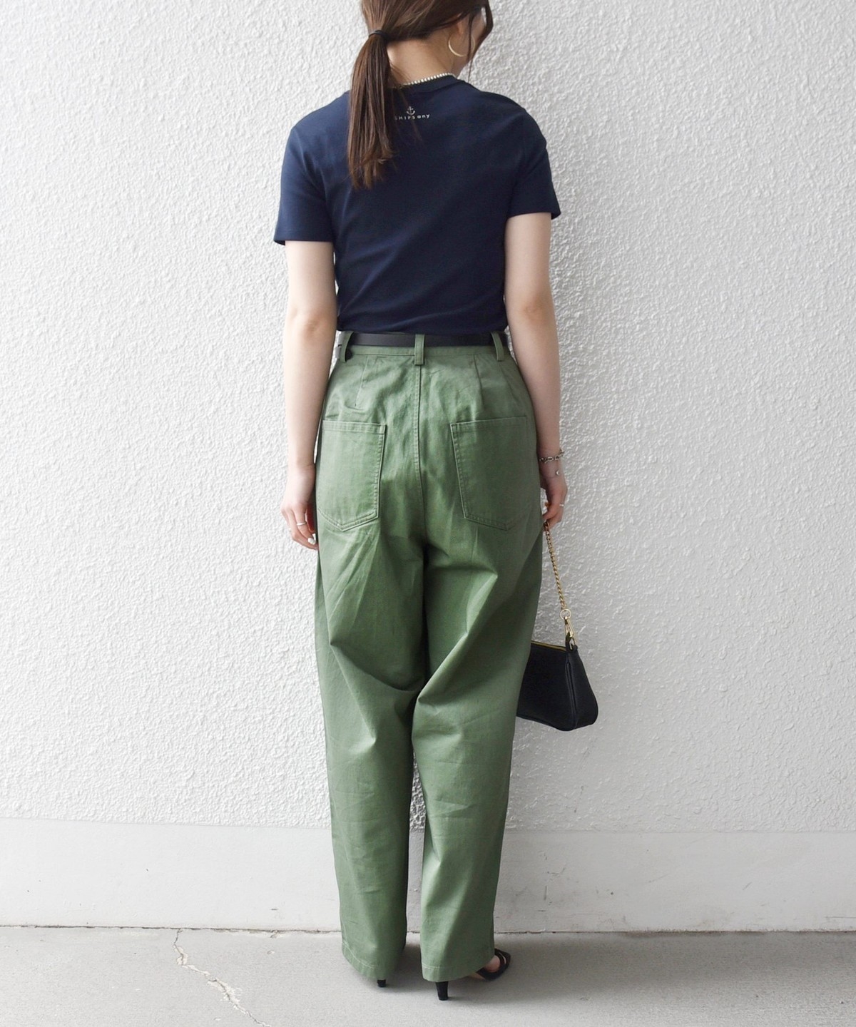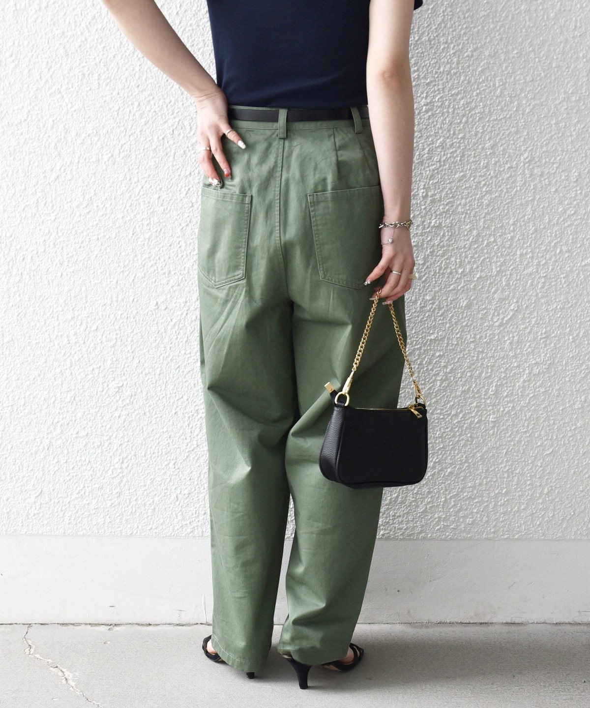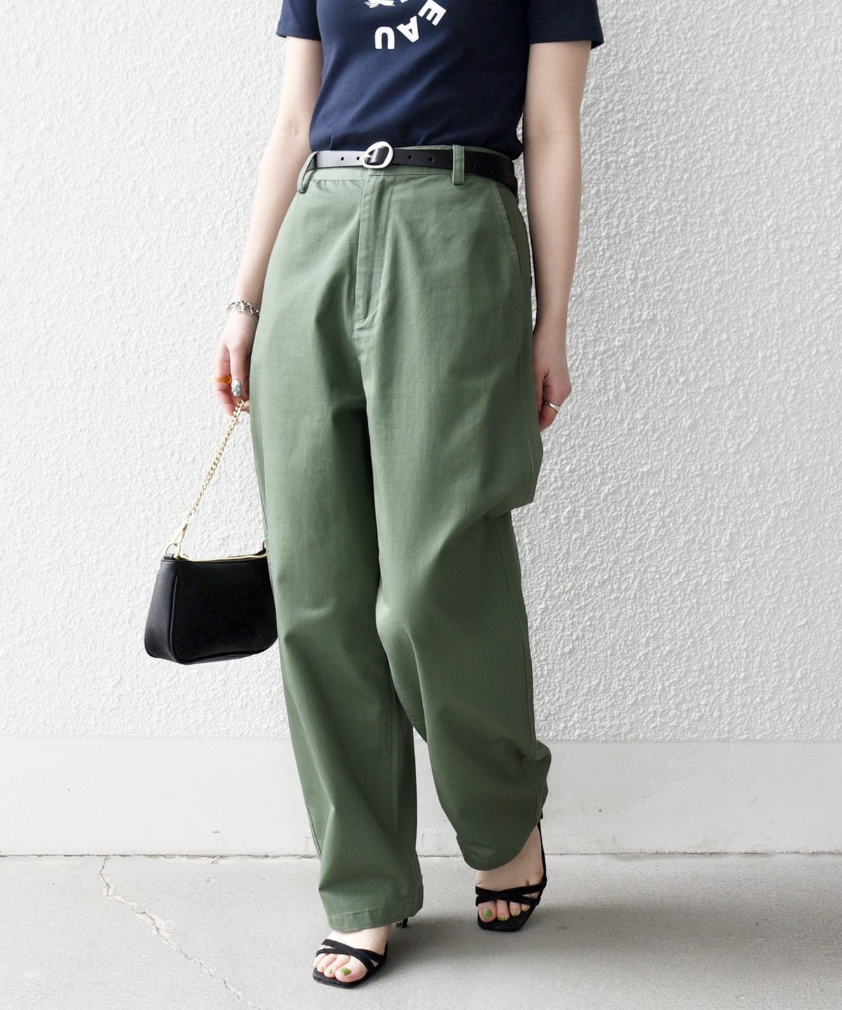 ウエストを落としてルーズに着ても、きゅっとベルトで絞ってハイウエストに着ても◎