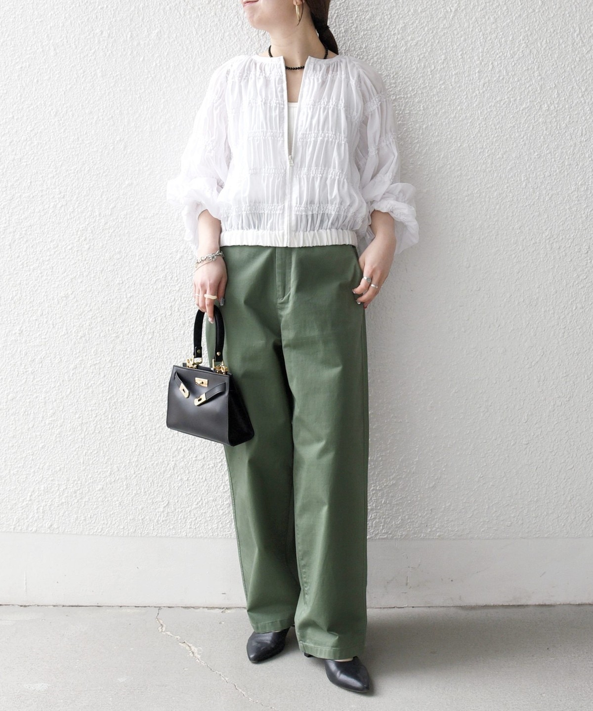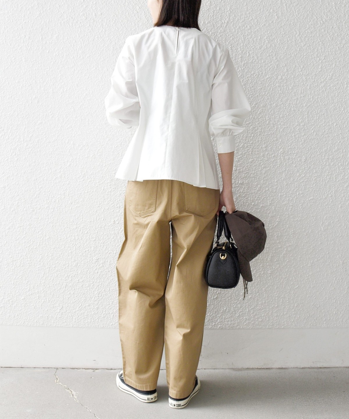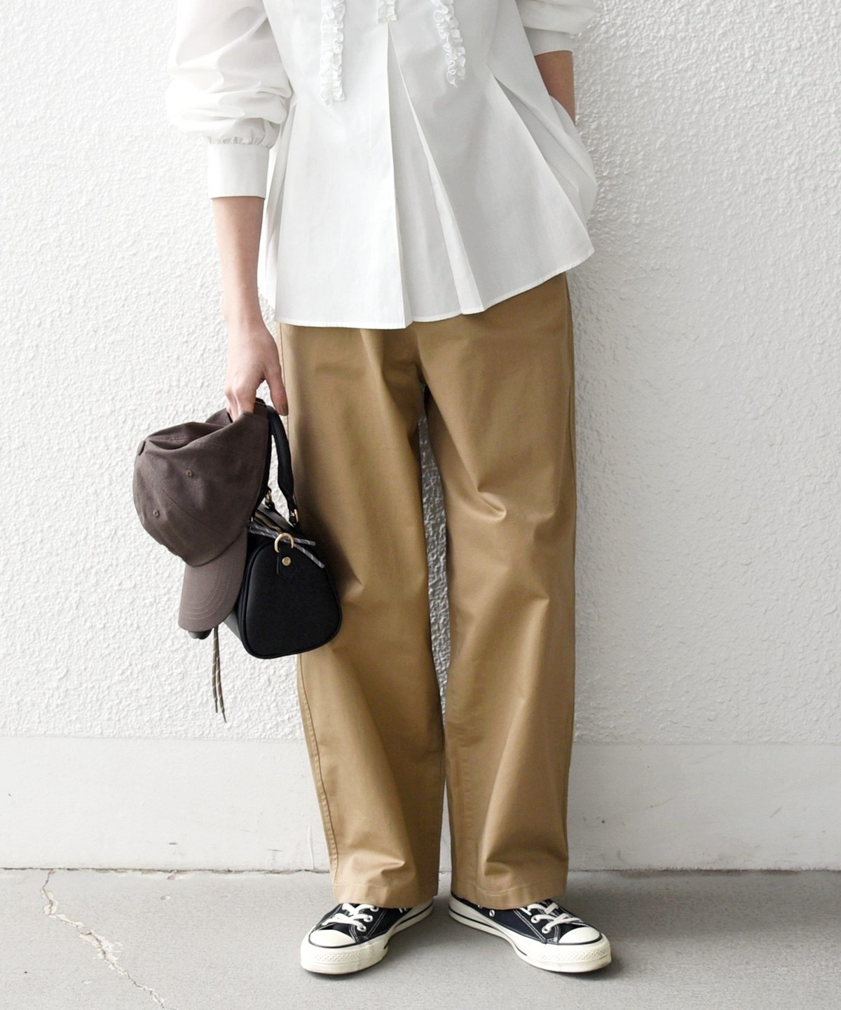 こなれ感のあるセミワイドのシルエットながら、ノータックなのでスッキリした印象で着用いただけます。
