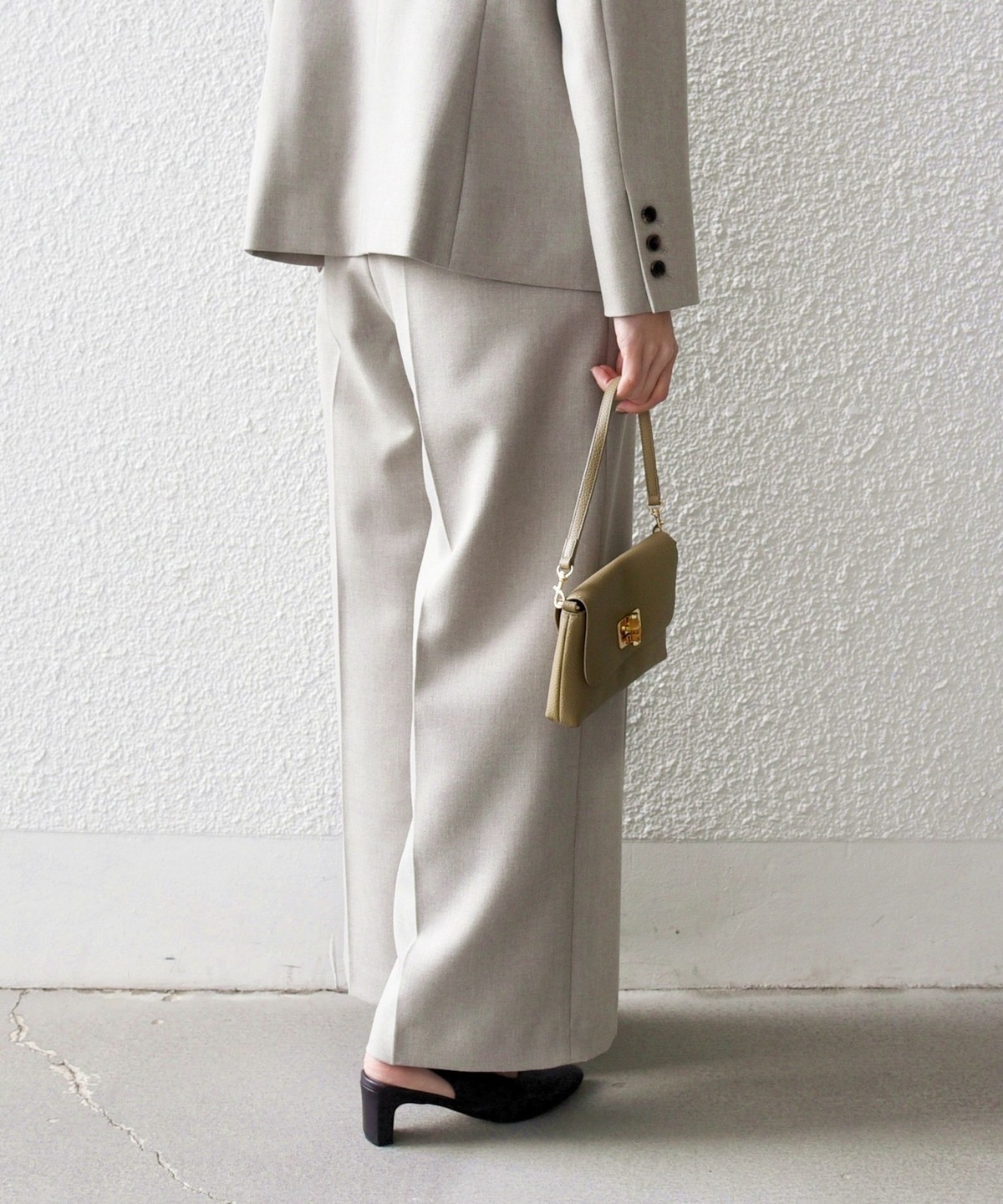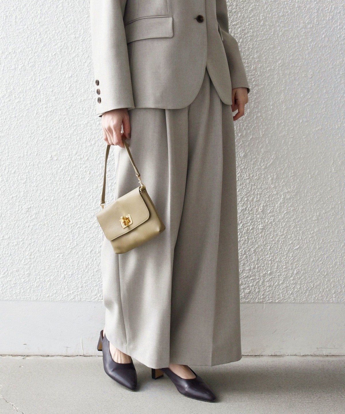 パンプスや同素材のアイテムと合わせれば、通勤や学校行事、オケージョンシーンにも対応します。
