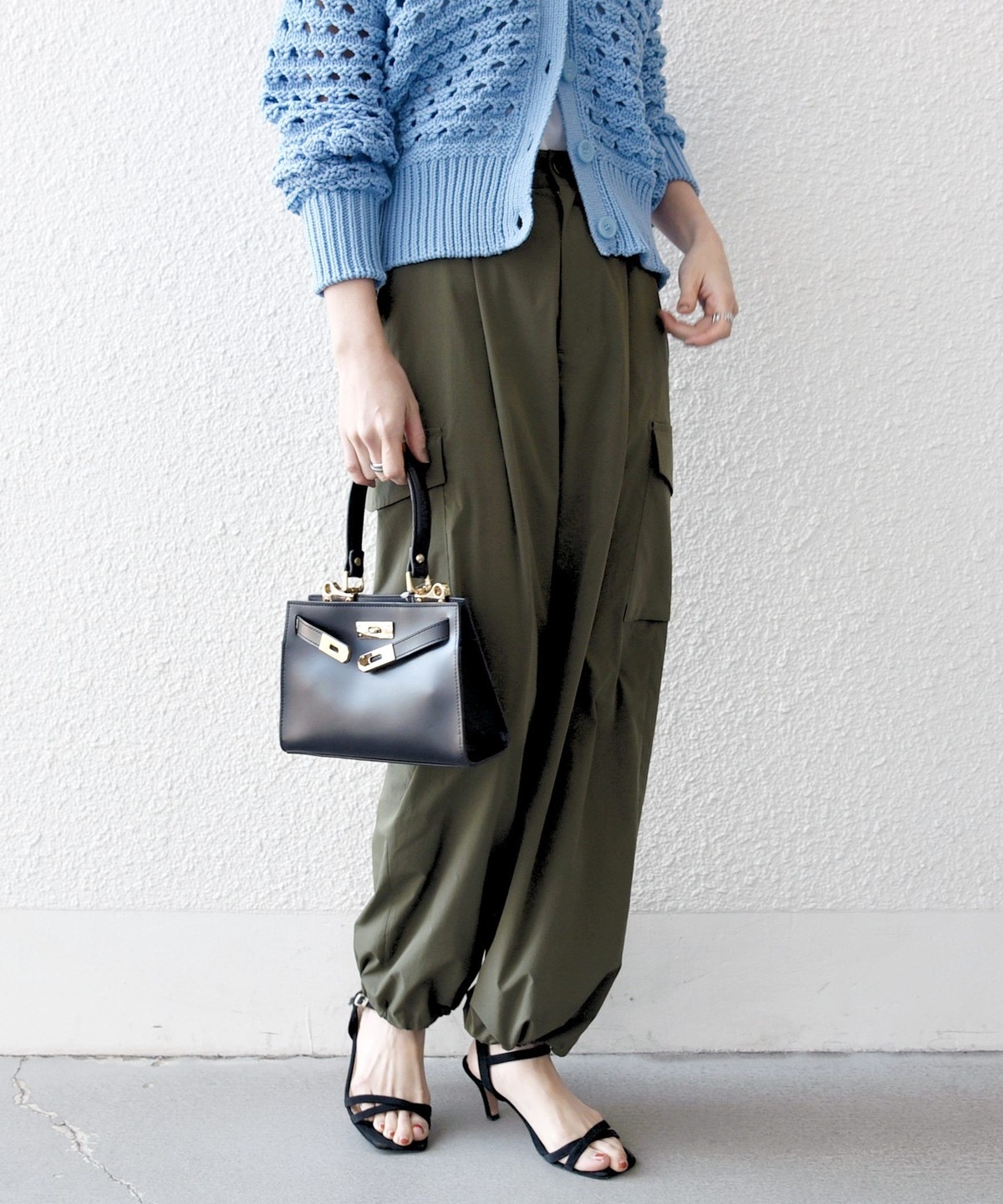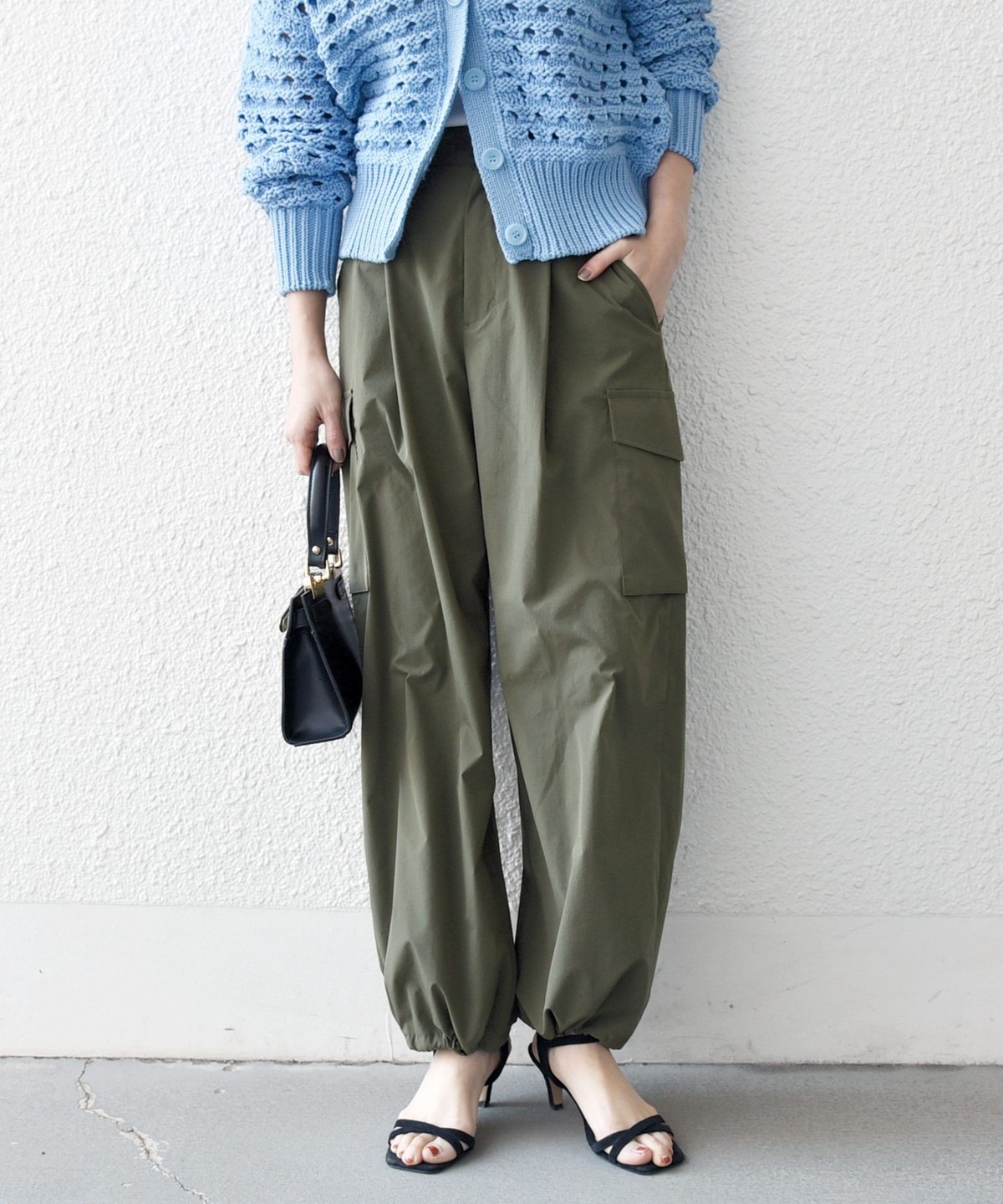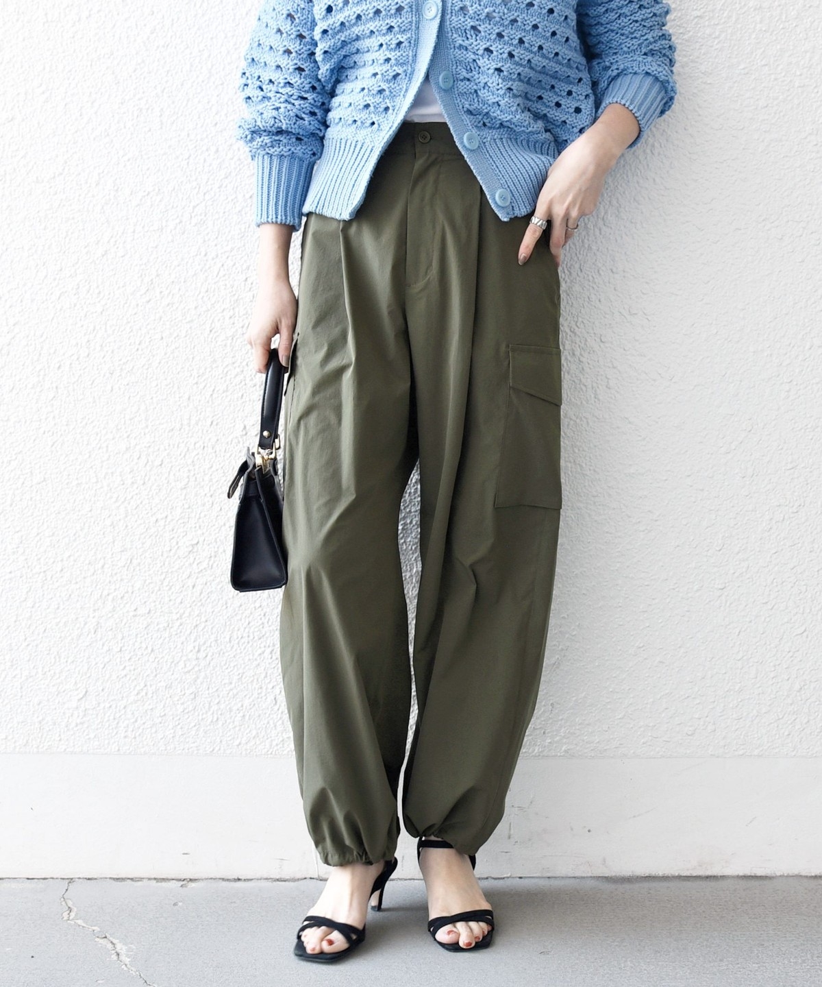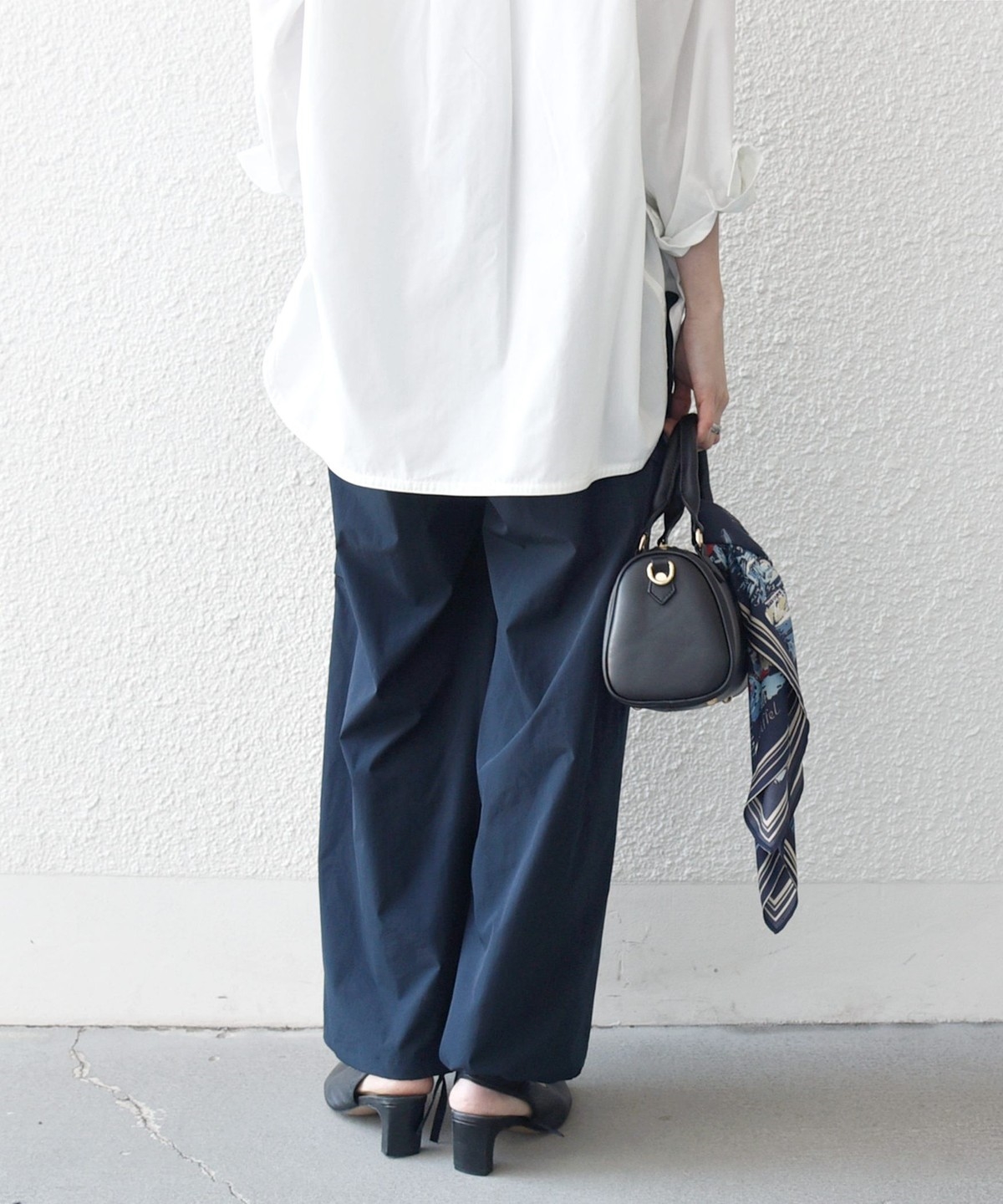 程良い光沢感のある素材が、カジュアルになりすぎず大人っぽく着用いただけます。