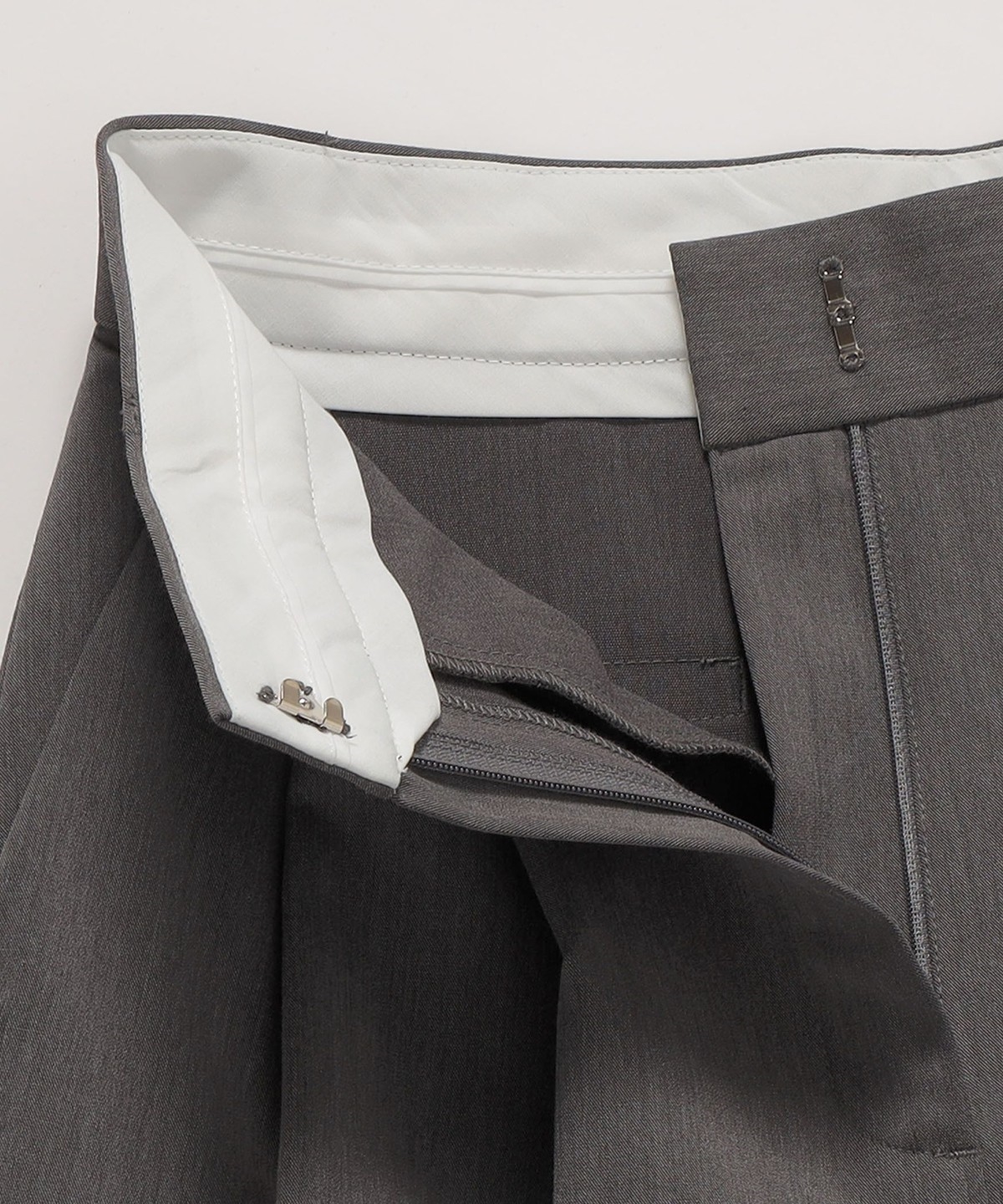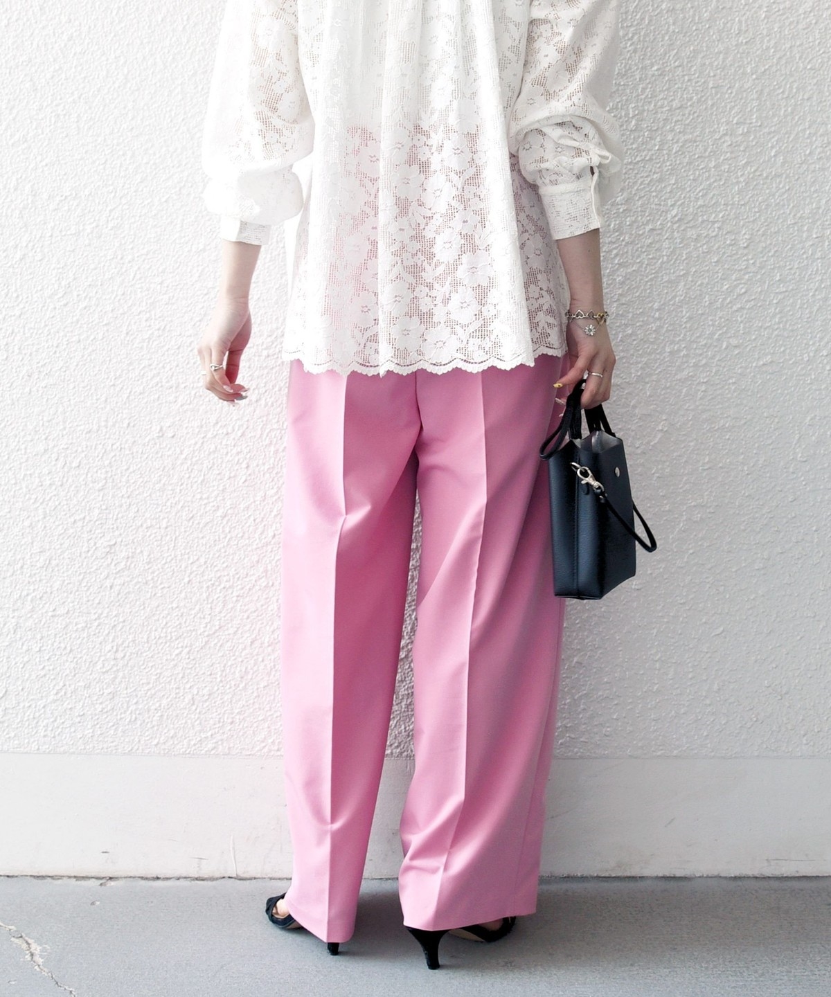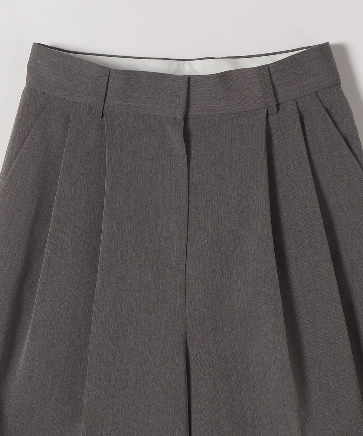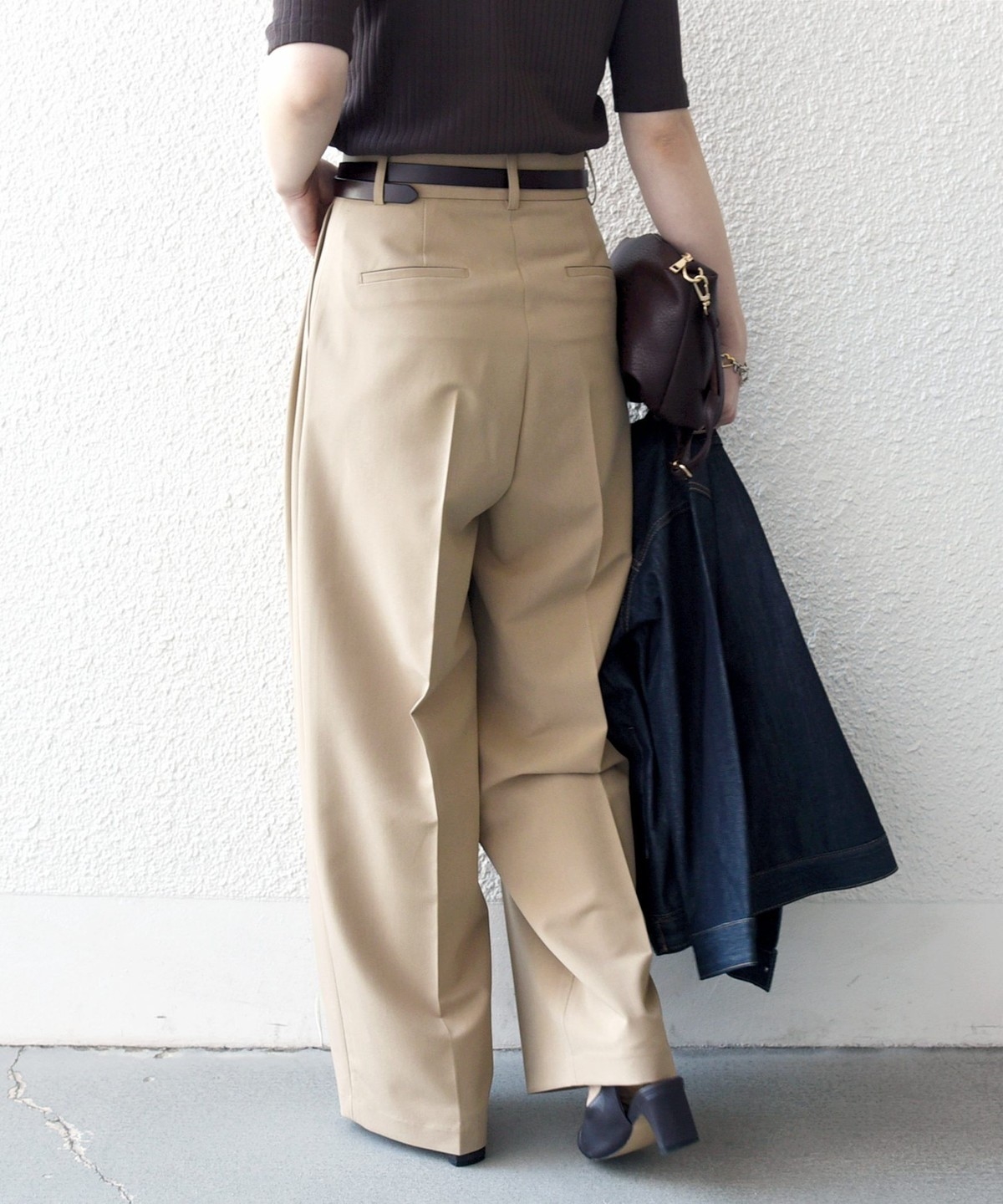 やや太めのベルト幅と2タックのワイドシルエットでマニッシュな印象のトラウザー。
