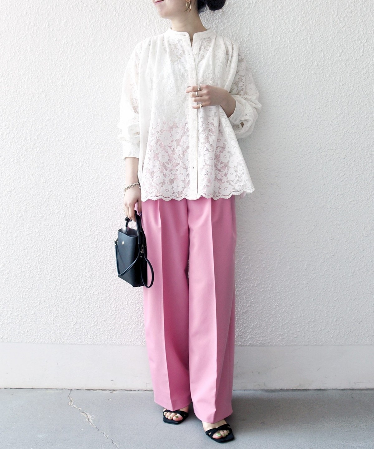 程よい落ち感があるため広がりすぎず、トップスを選ばずに着用いただけます。