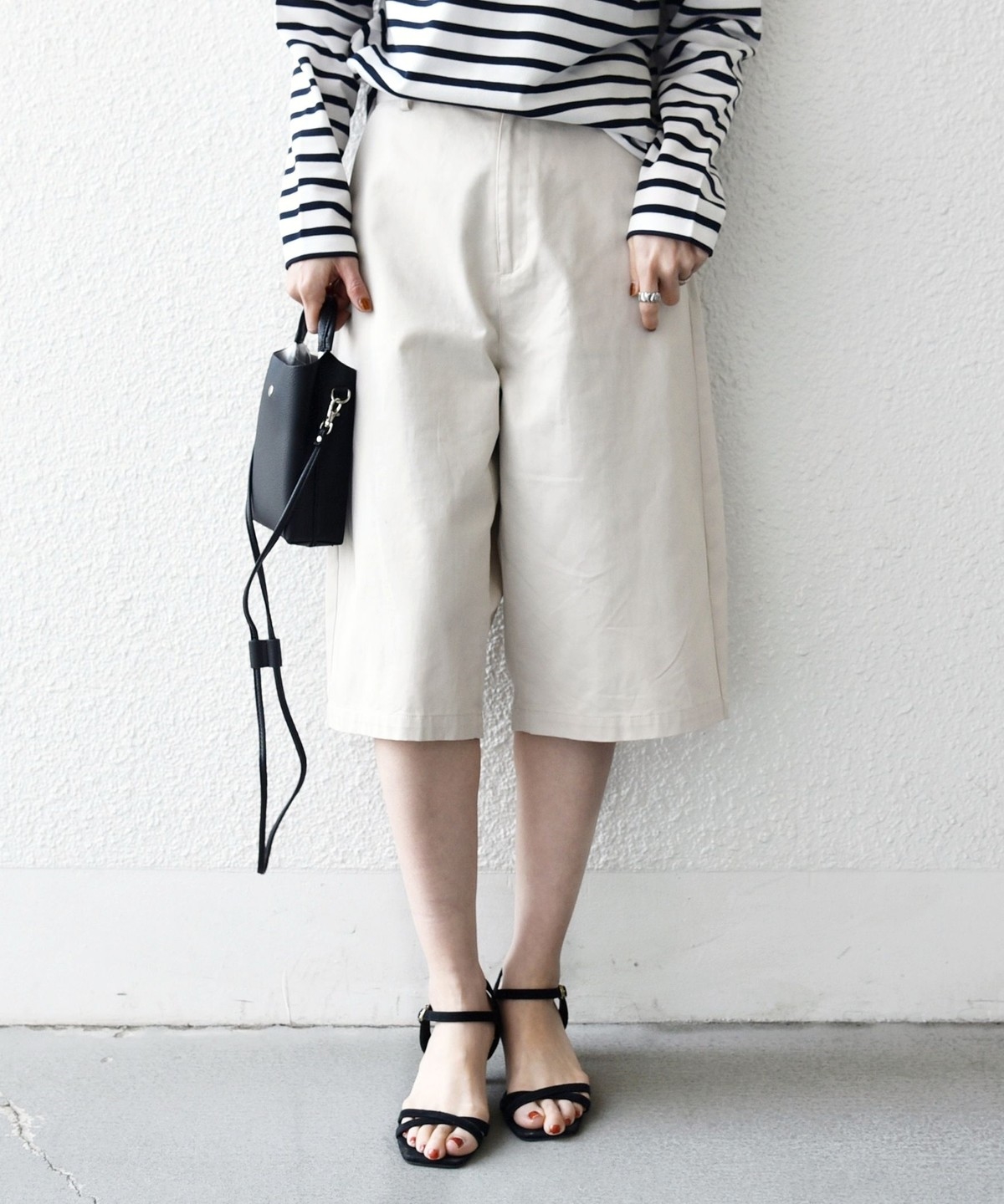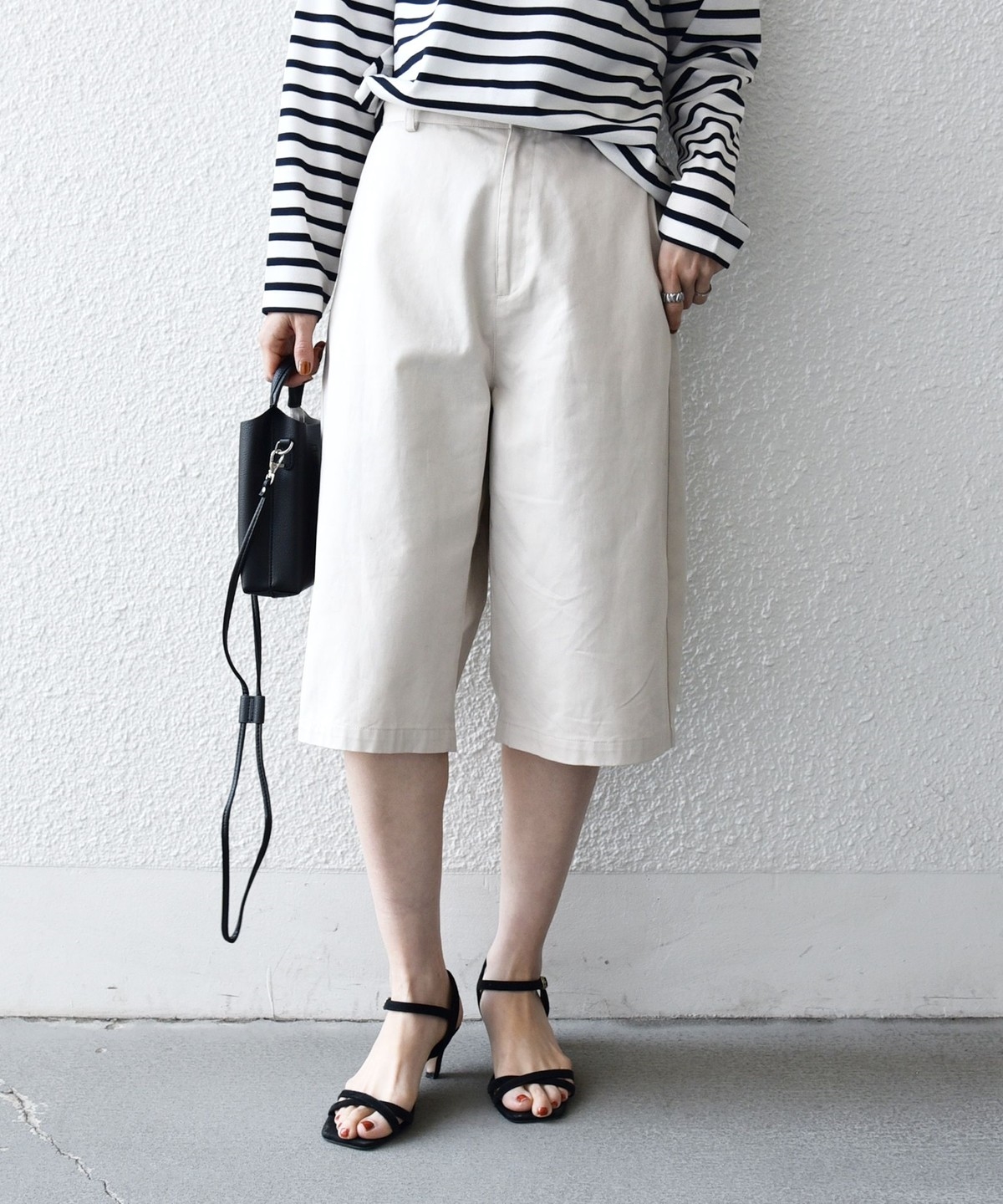 膝下丈なので露出が少なく、普段ハーフパンツを穿かない方にも挑戦しやすい一着です。