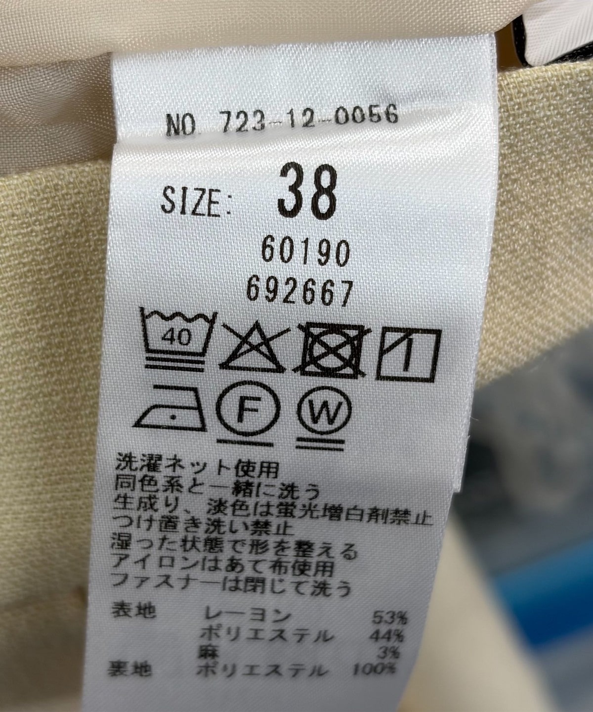 素材:表地: レーヨン53%, ポリエステル44%, 麻3%, 裏地: ポリエステル100%