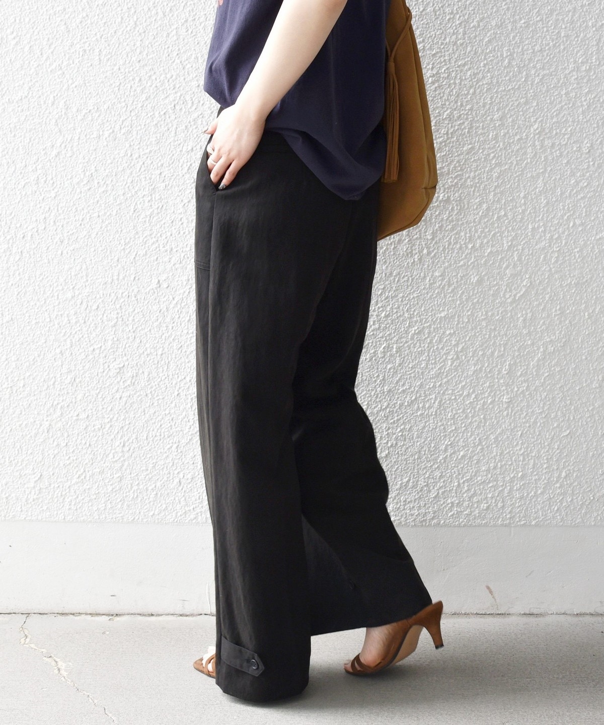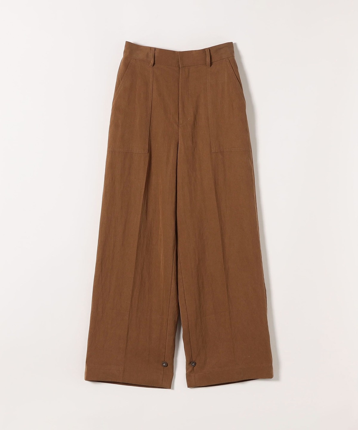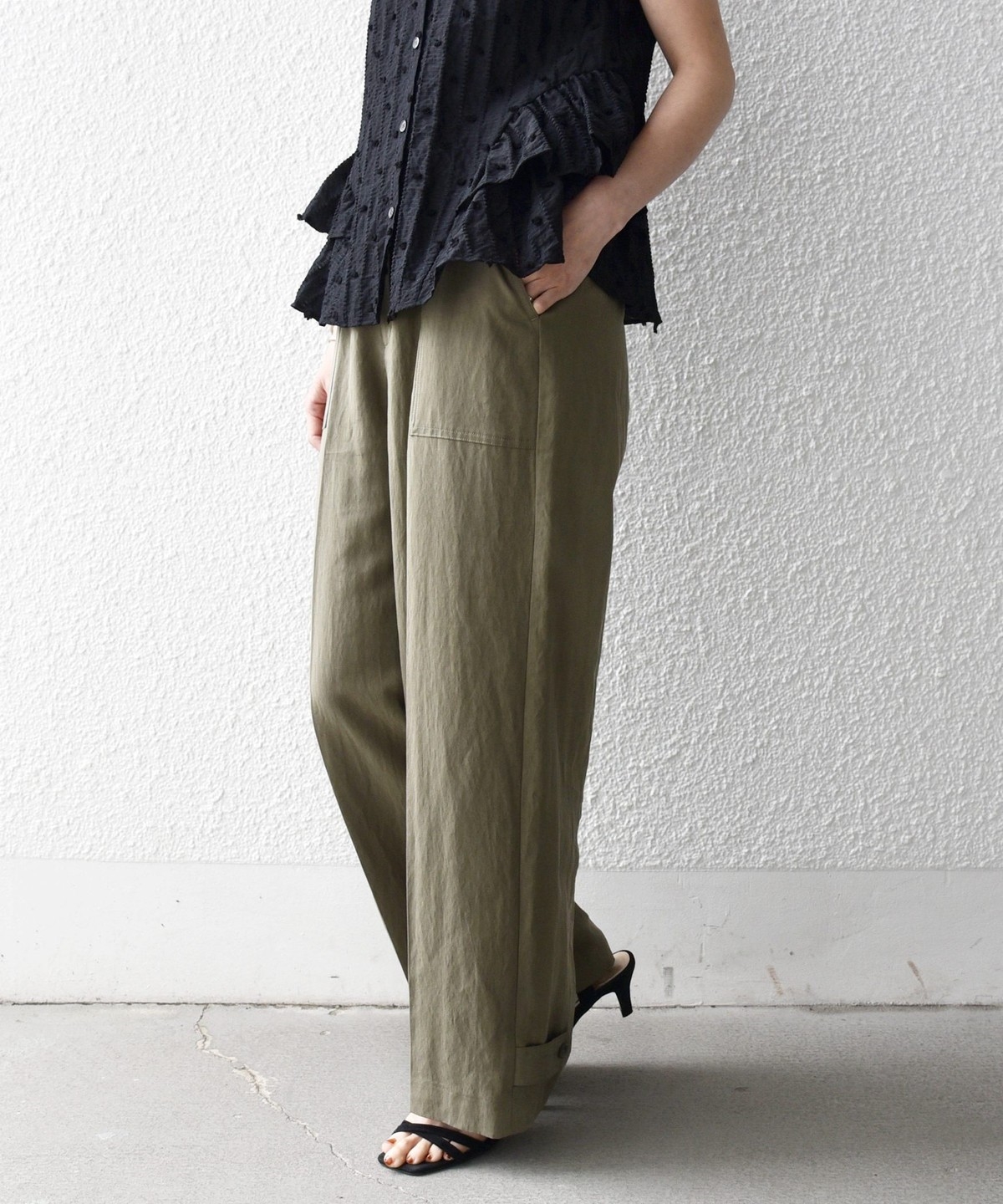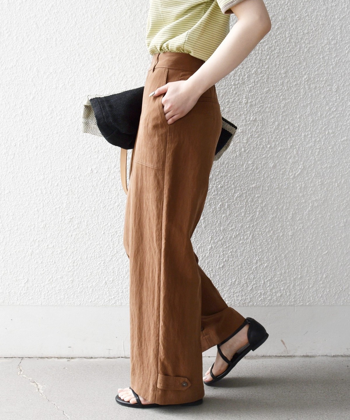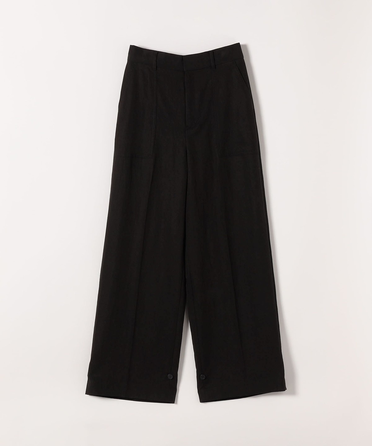 フロントの大きめポケットが程よいアクセントになり、センタープレスとストレートシルエットで自然とすっきり見えを叶えます。