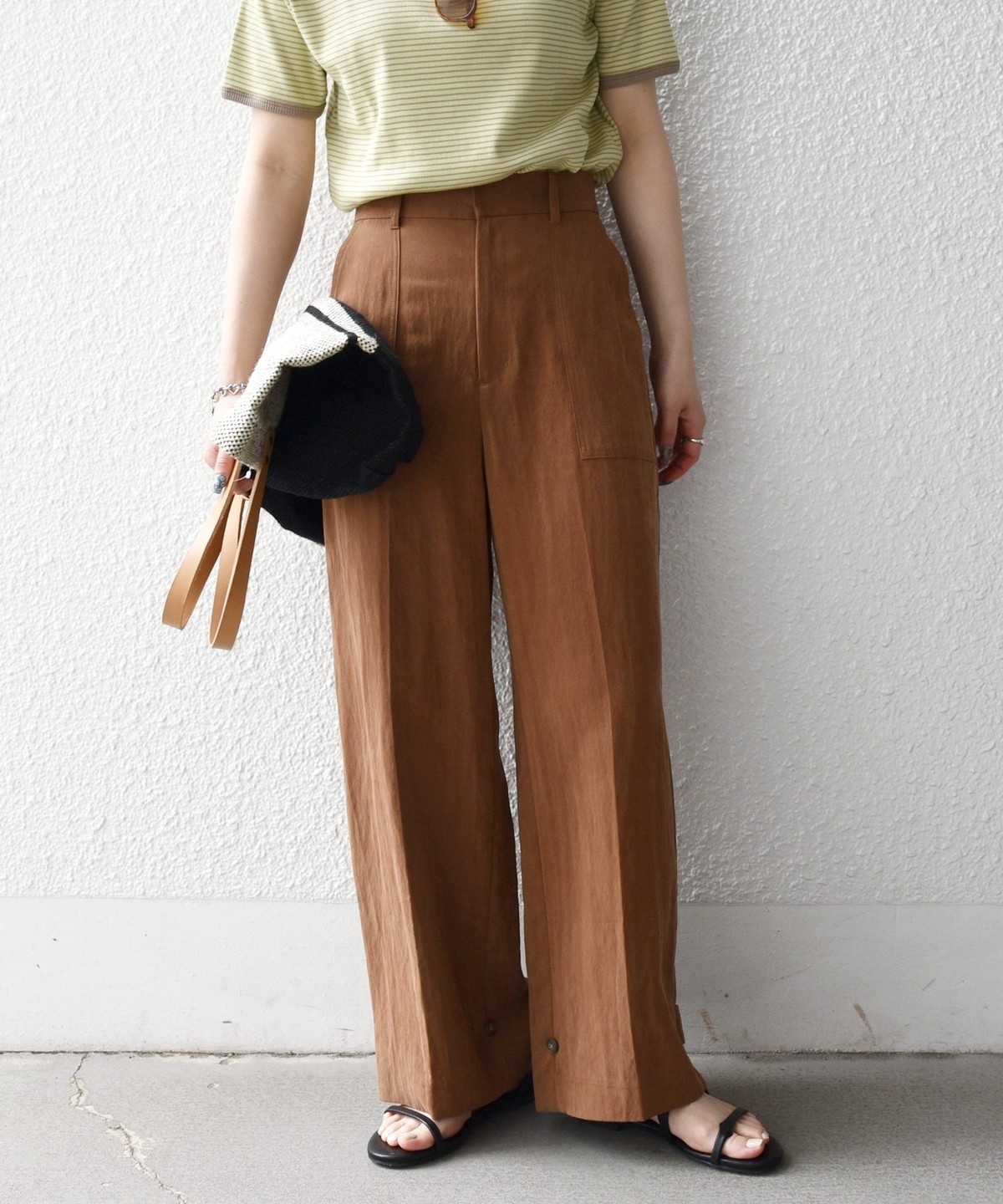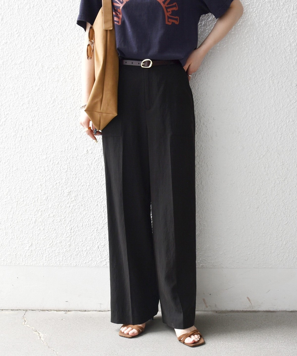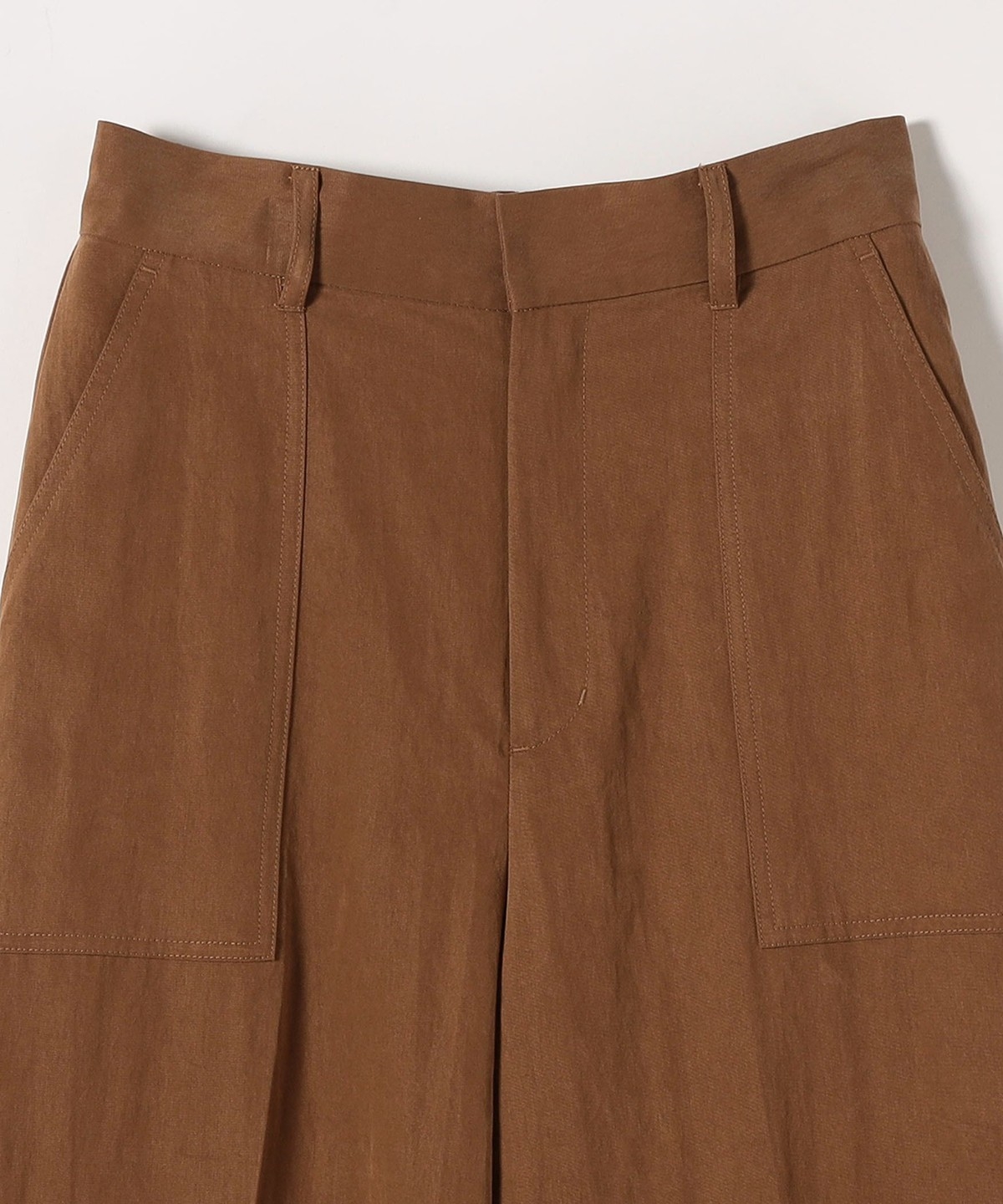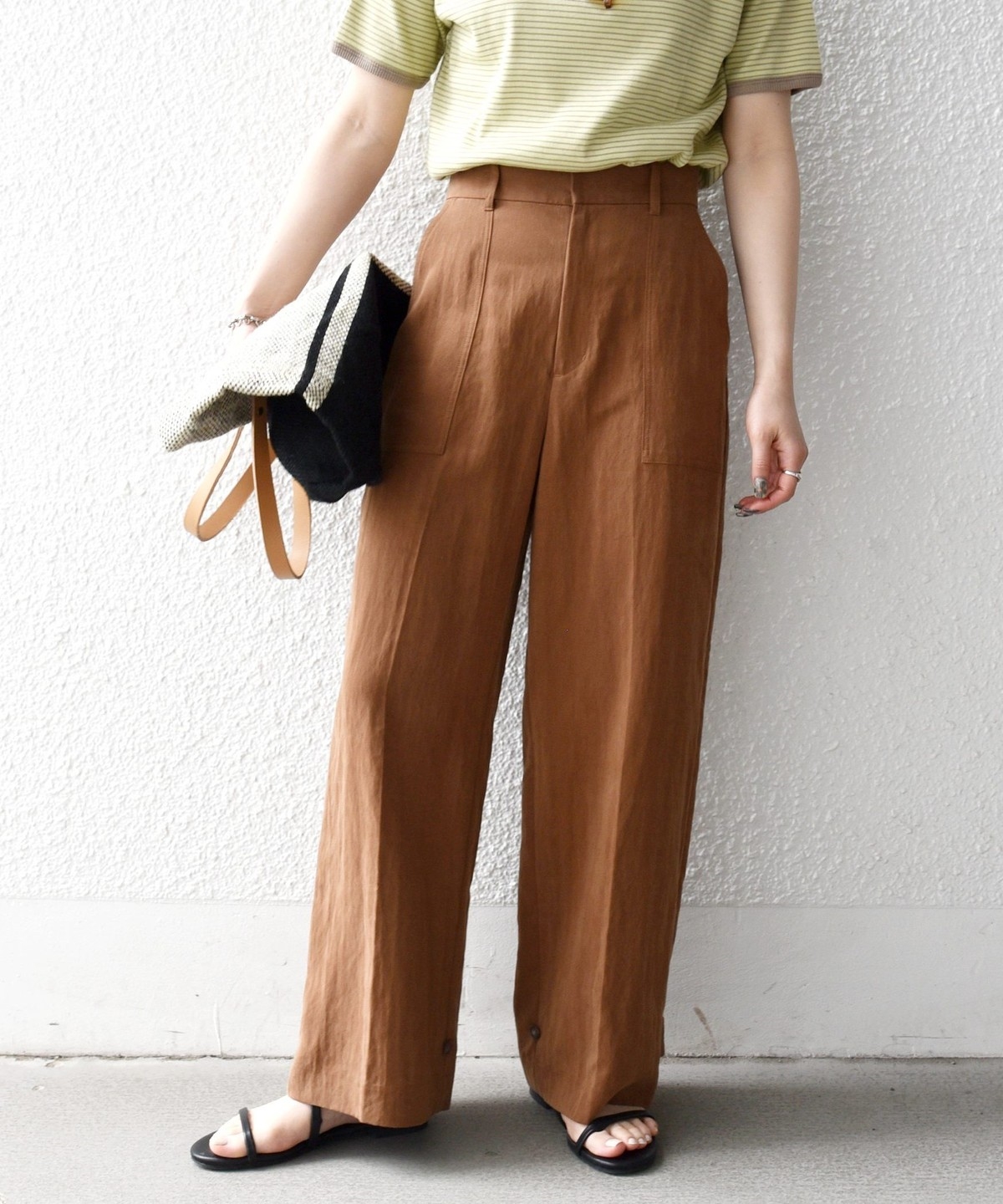 フロントの大きめポケットが程よいアクセントになり、センタープレスとストレートシルエットで自然とすっきり見えを叶えます。