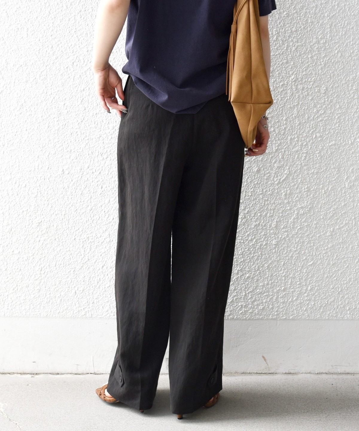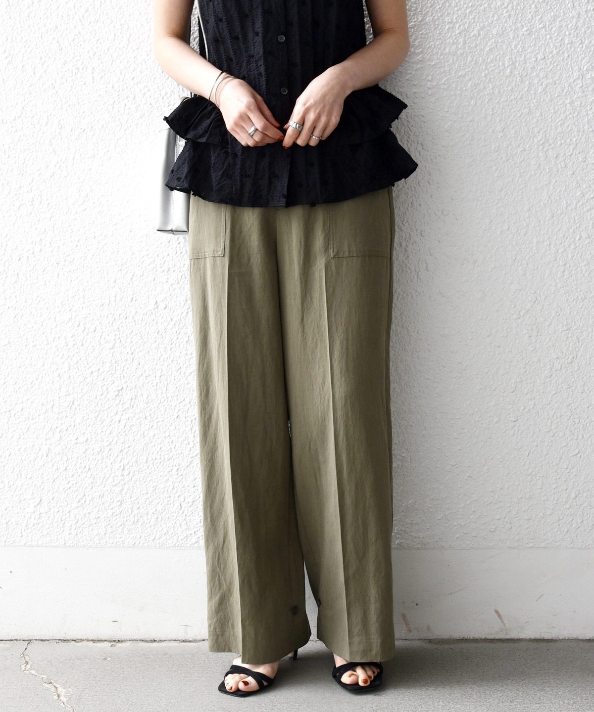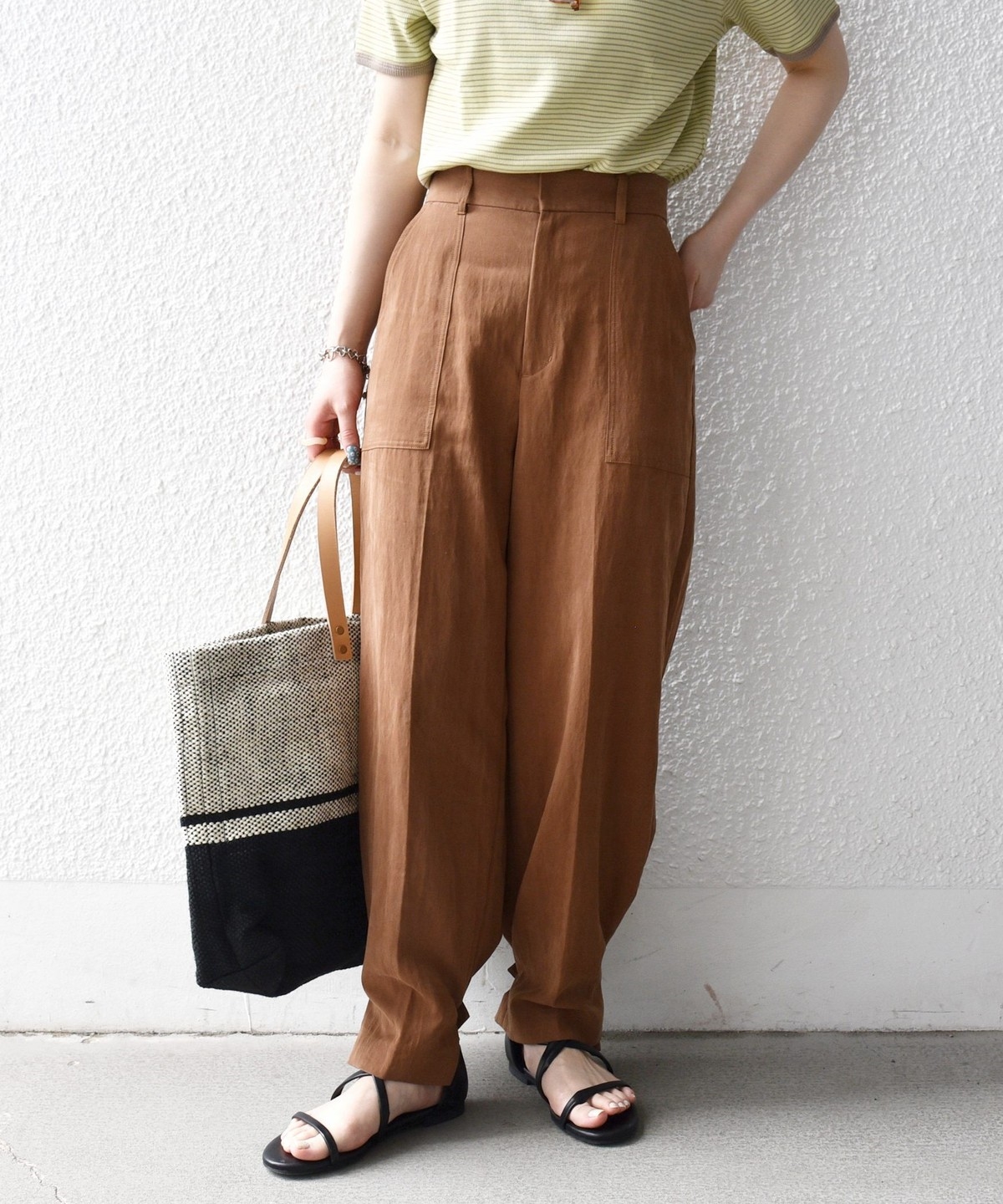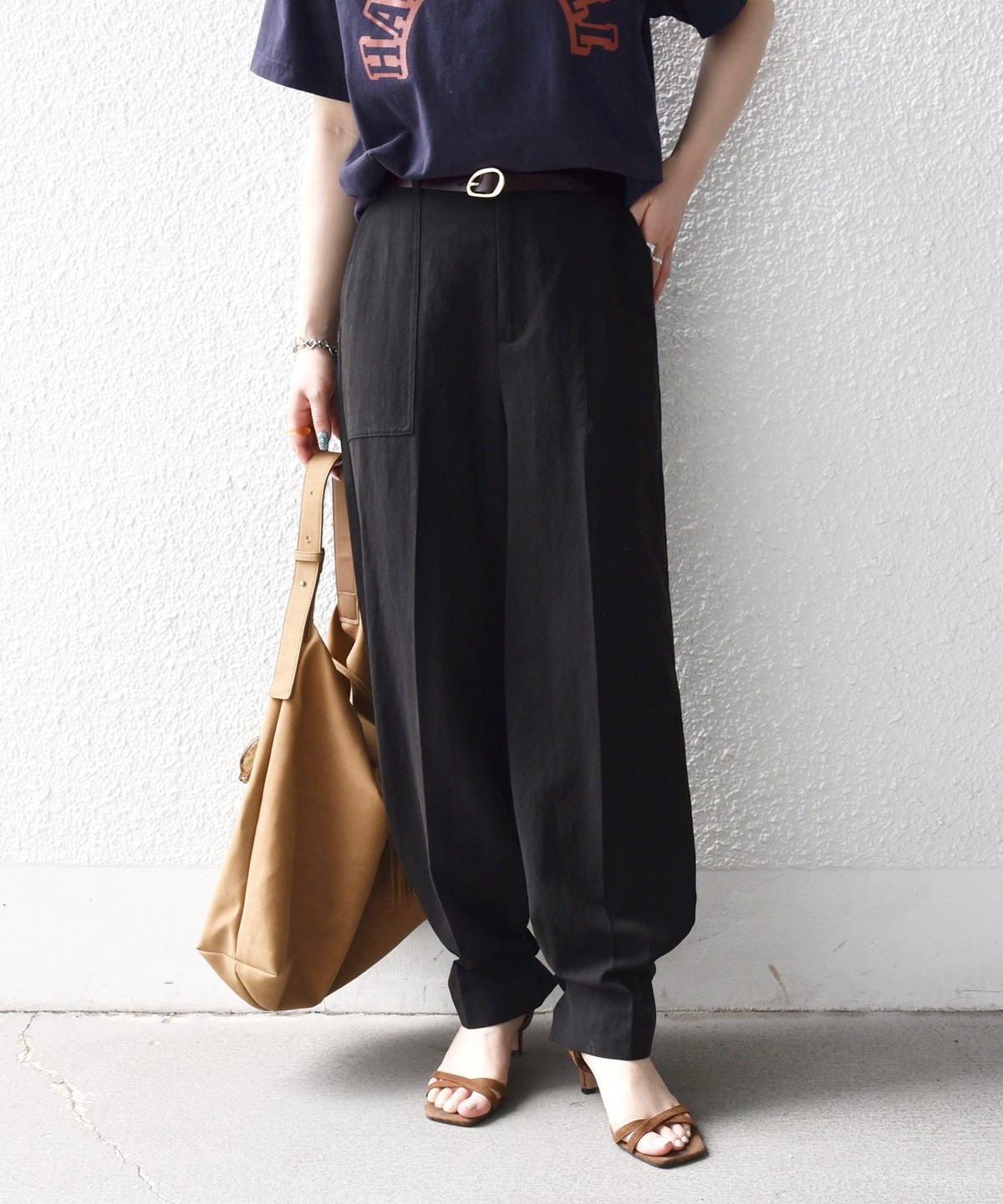 フロントの大きめポケットが程よいアクセントになり、センタープレスとストレートシルエットで自然とすっきり見えを叶えます。