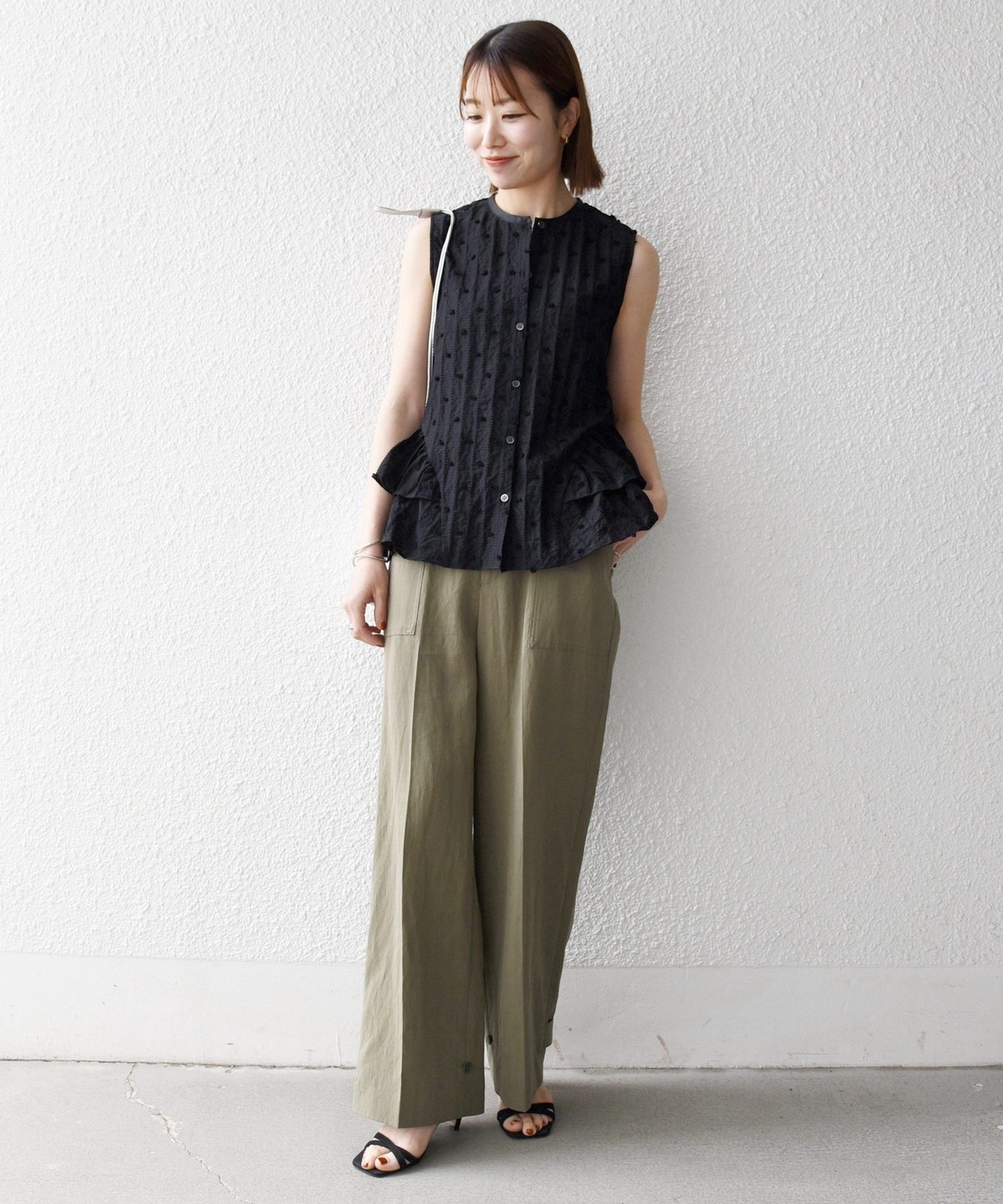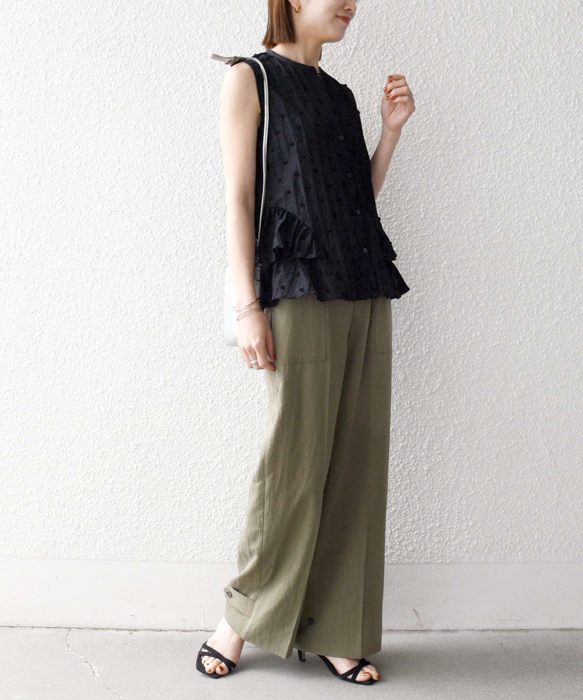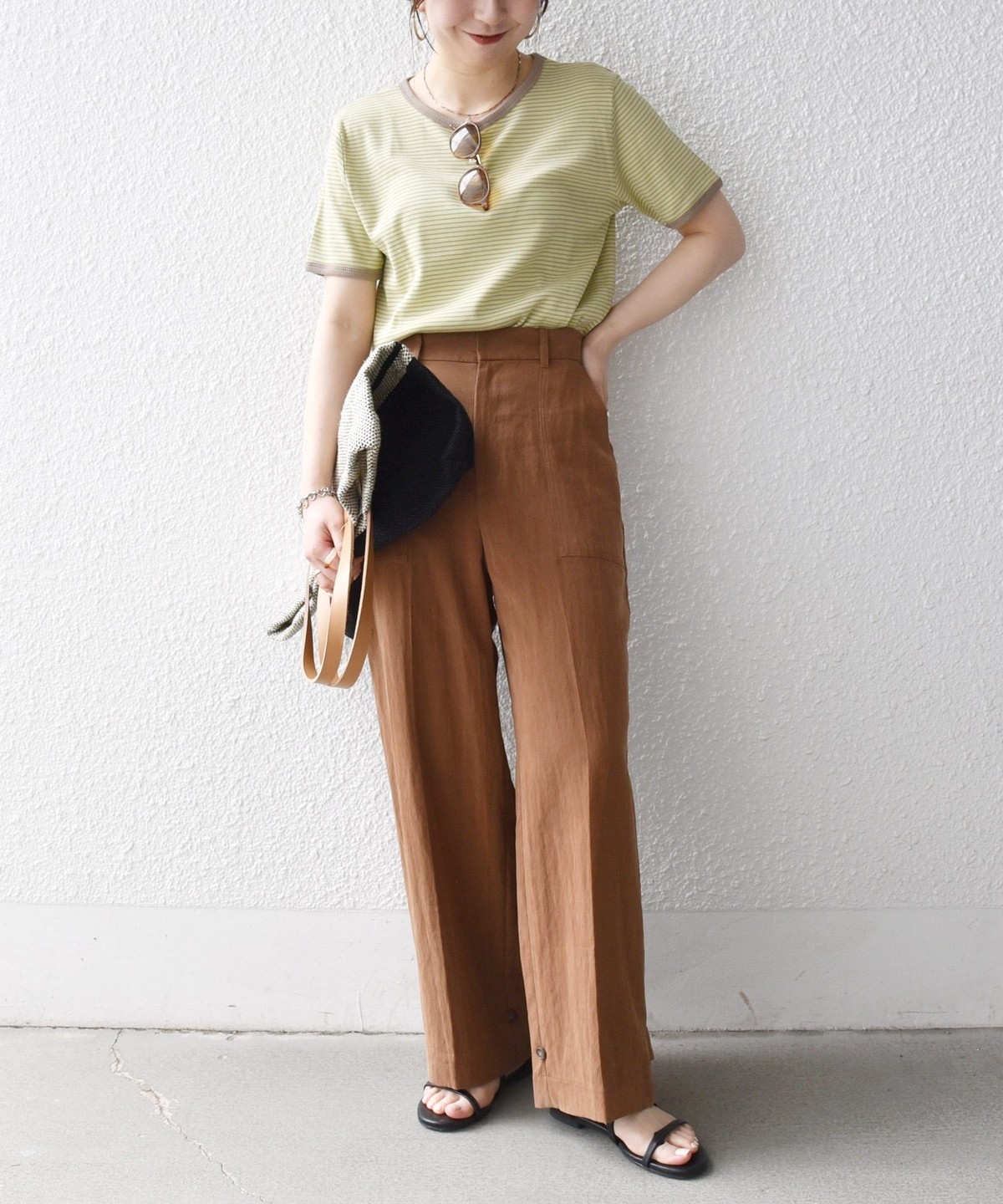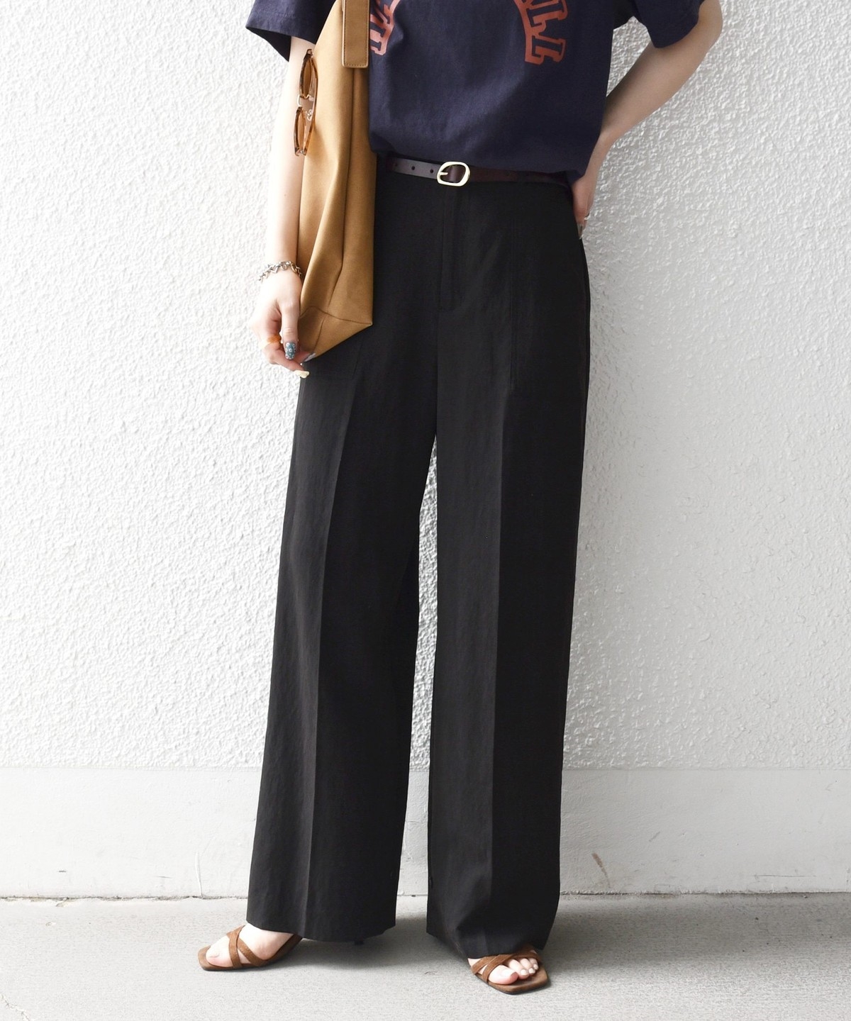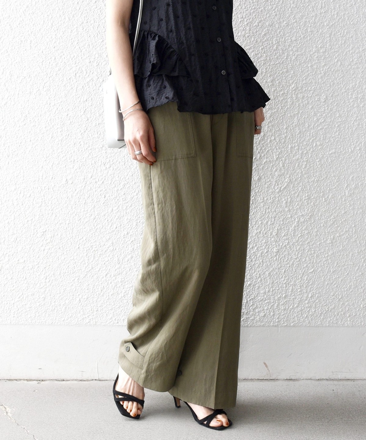 フロントの大きめポケットが程よいアクセントになり、センタープレスとストレートシルエットで自然とすっきり見えを叶えます。