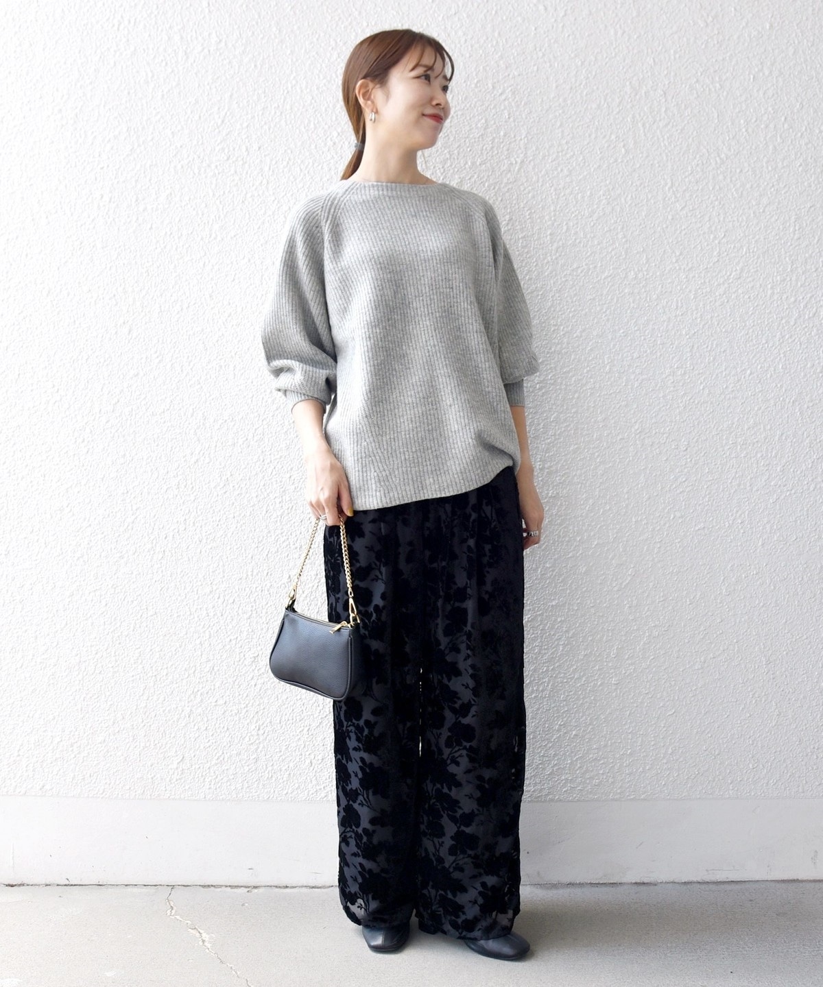 エアリーなニットやブラウスと合わせて、フェミニンな着こなしに。