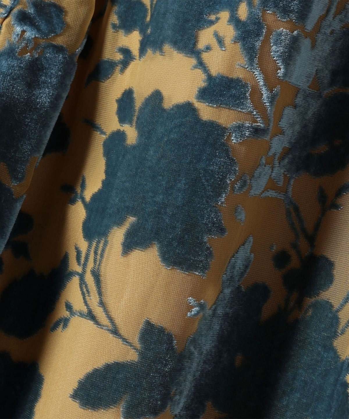 滑らかなベロア生地にオパール加工を施しフラワー柄を浮かび上がらせた生地。