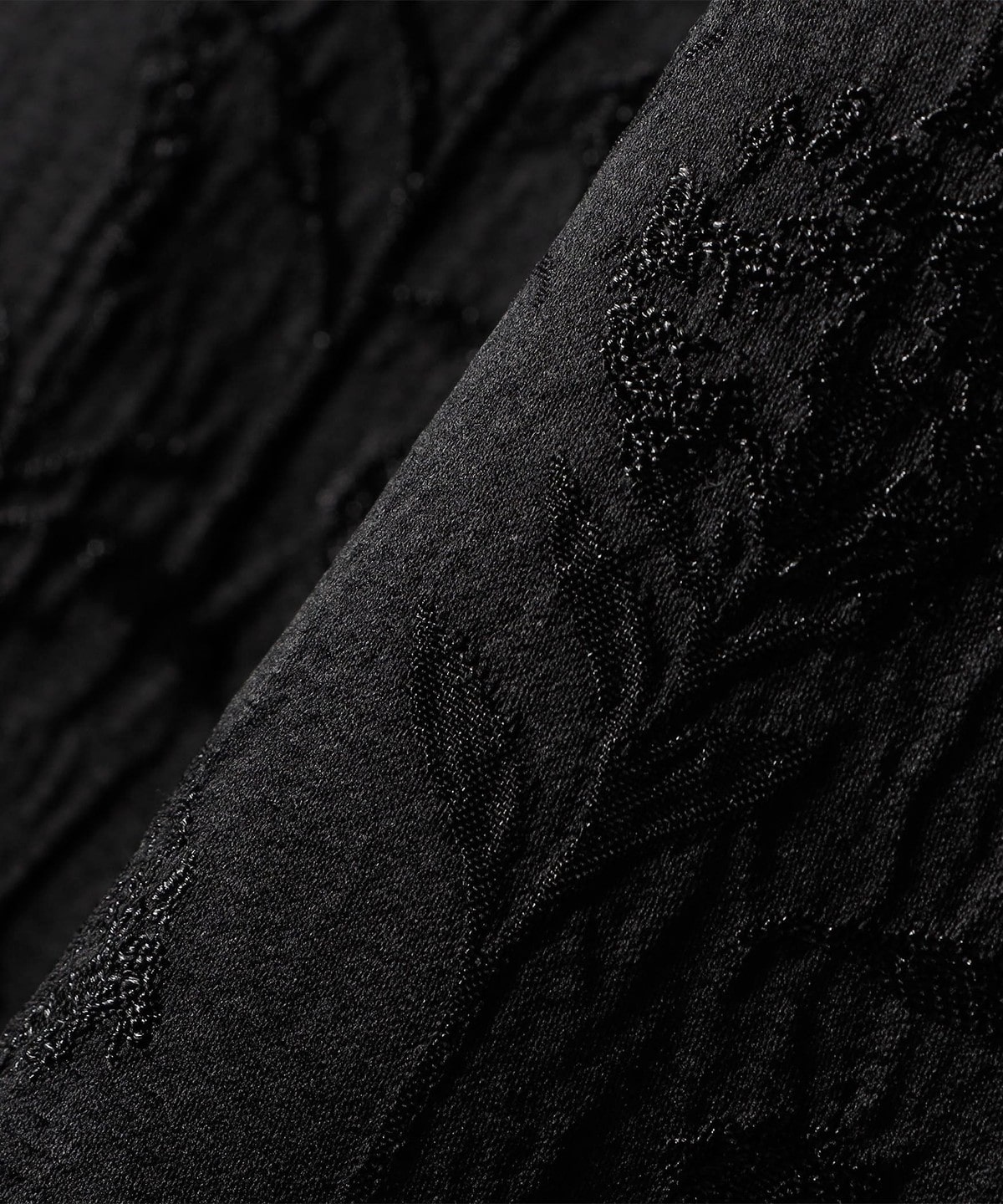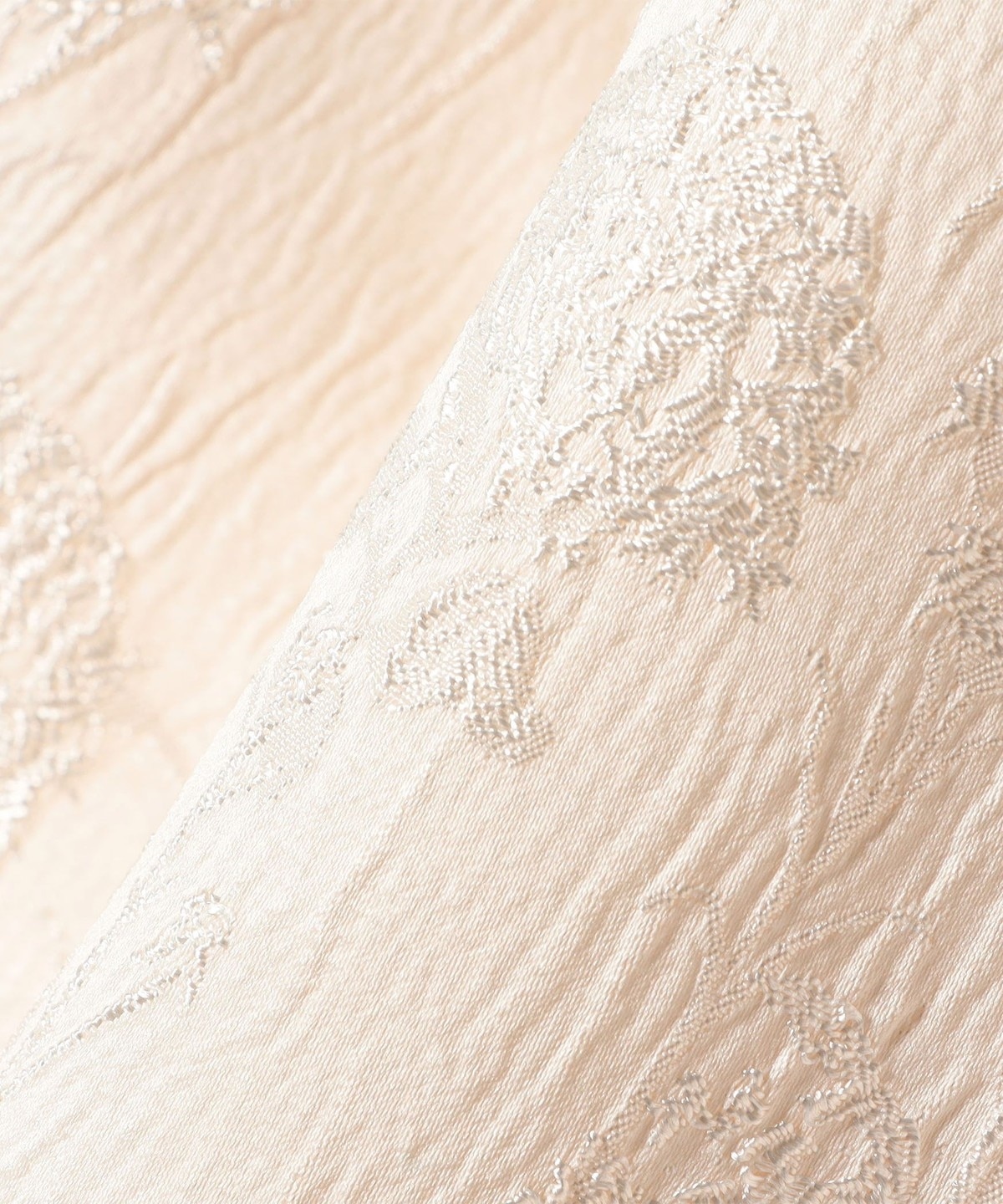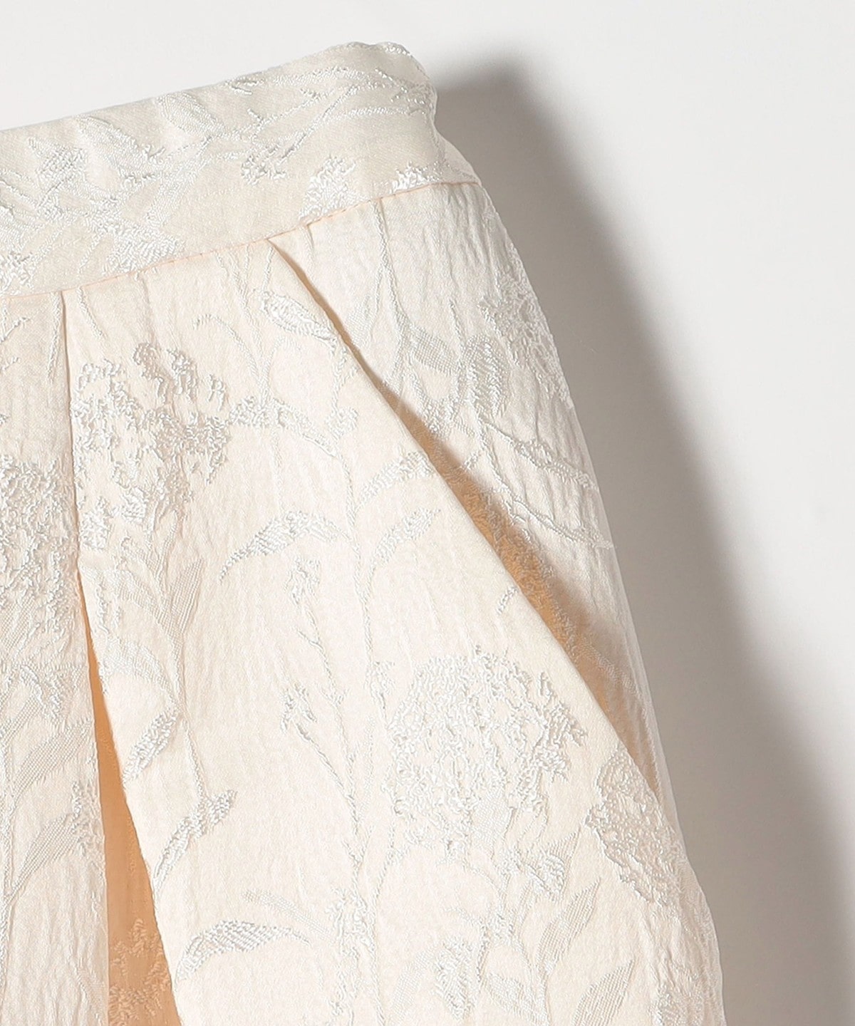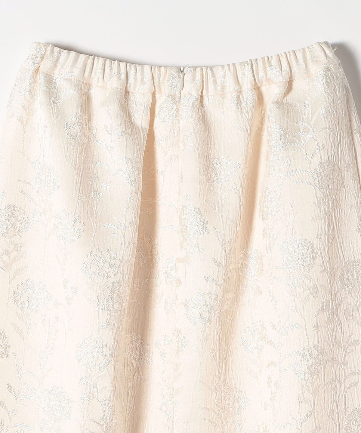 光の当たり方によって表情が変わりフラワー柄が上品に映える、ジャカードスカート。