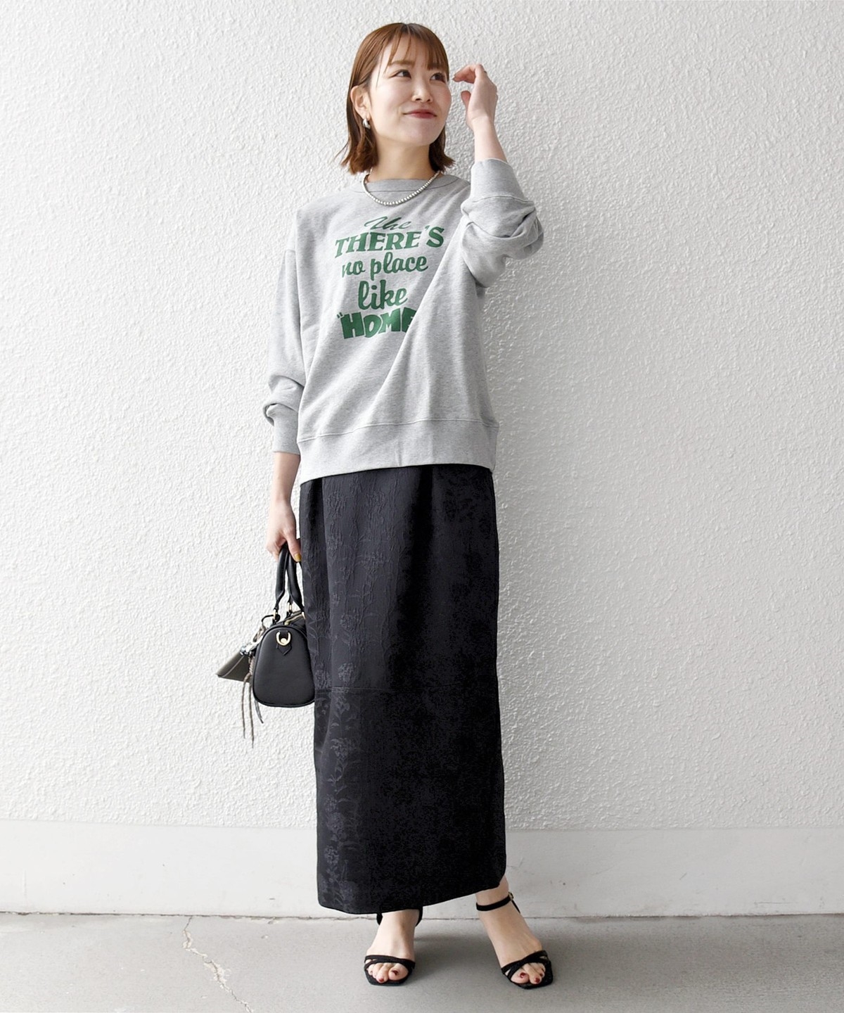 きちんとしたシーン以外では、ニットやスウェットなどカジュアル要素を加えたコーデもおすすめです。