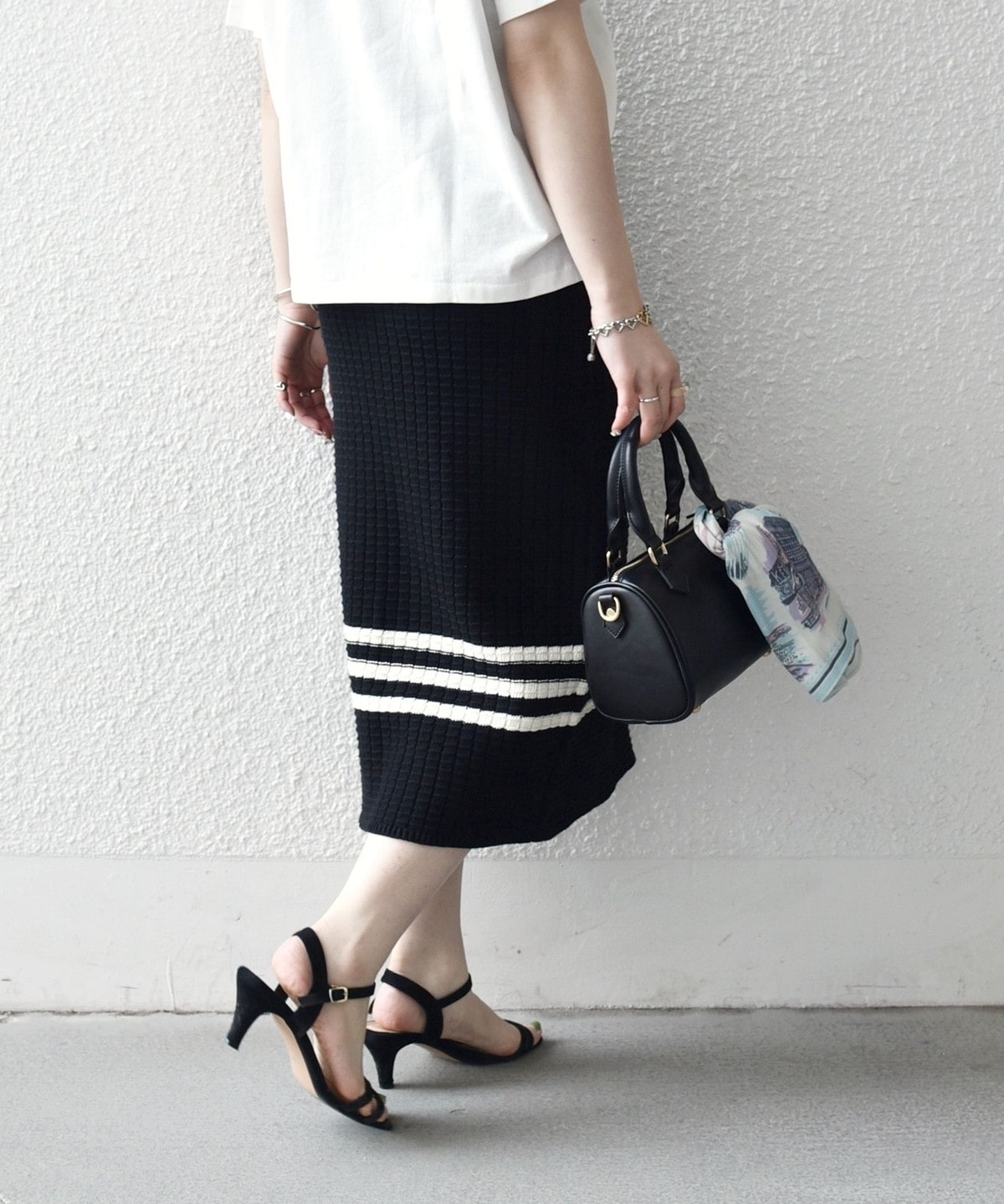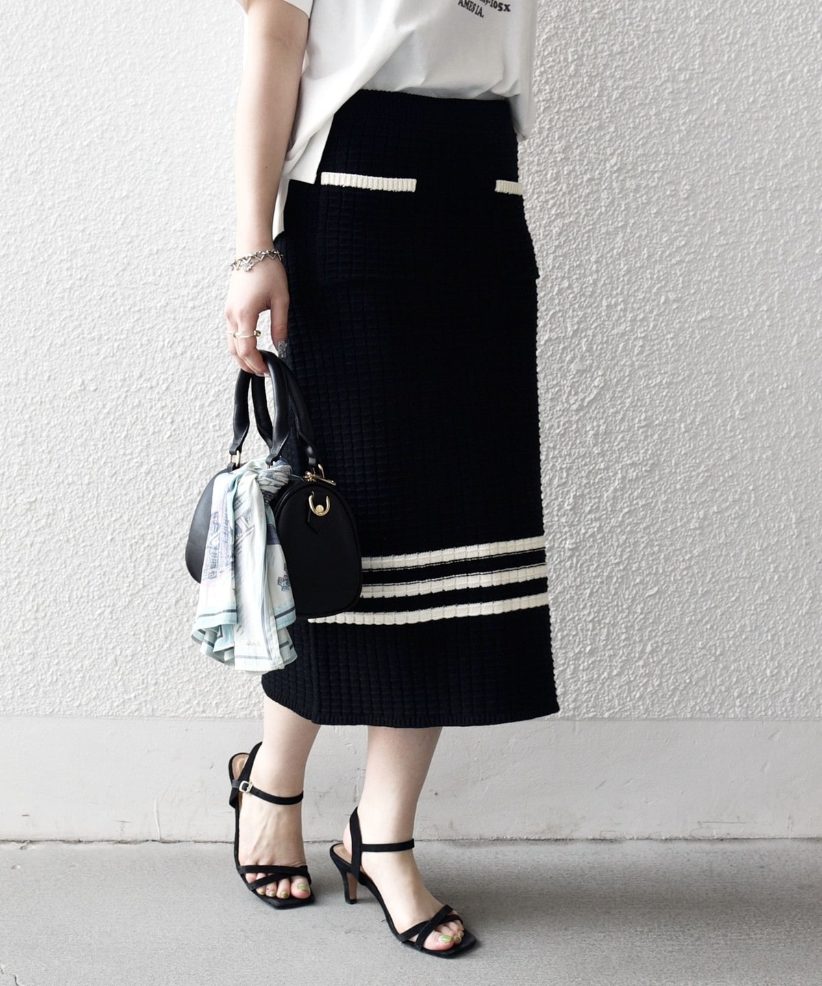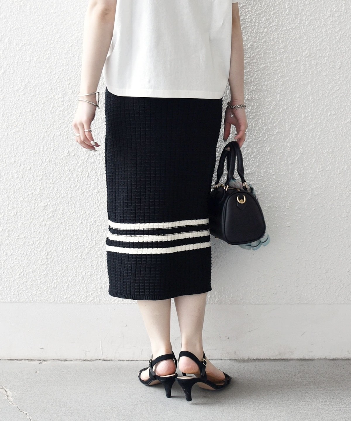 1. 《予約》SHIPS any:〈手洗い可能〉バスケット編み 配色 ライン タイト スカート ブラック