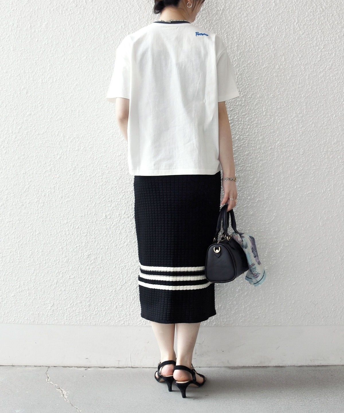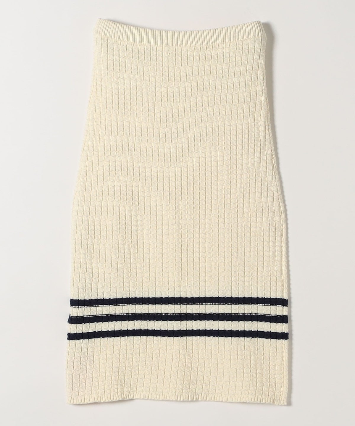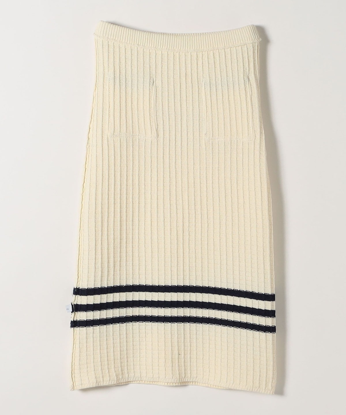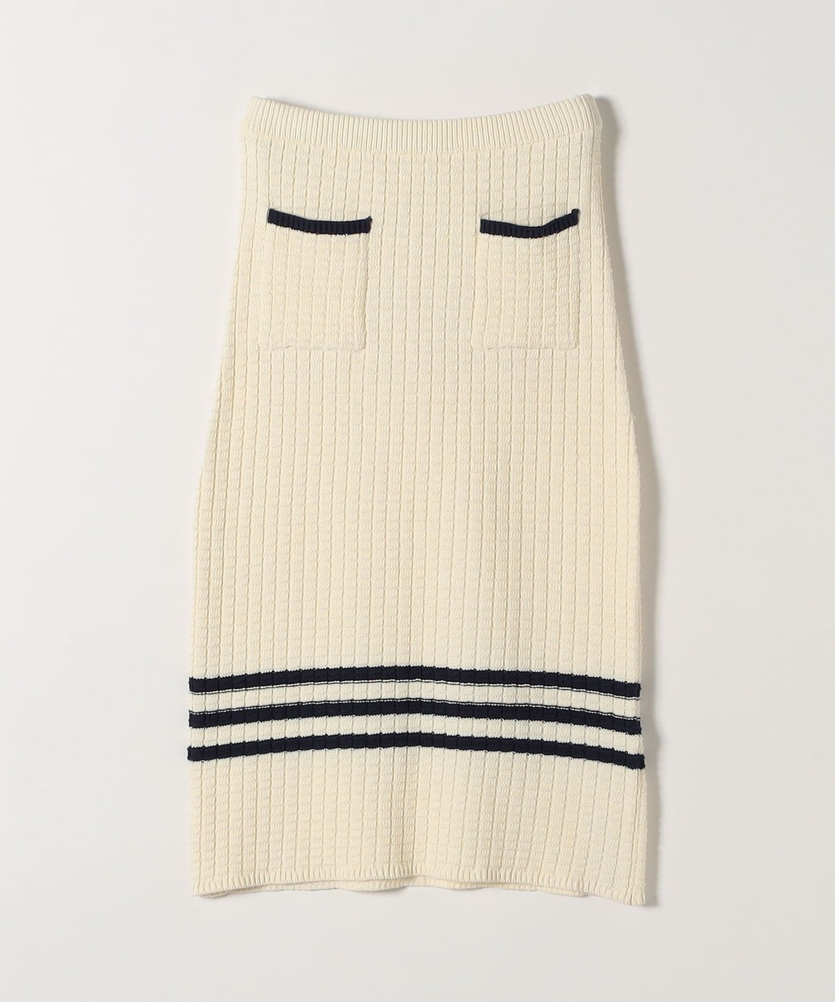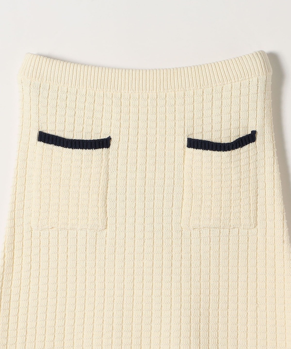 2. 《予約》SHIPS any:〈手洗い可能〉バスケット編み 配色 ライン タイト スカート オフホワイト
