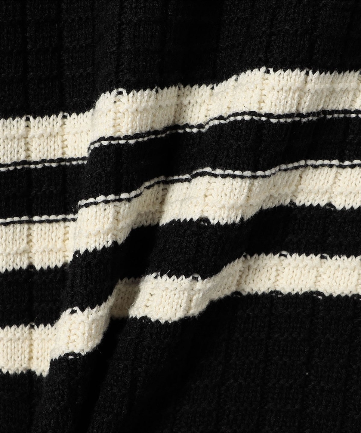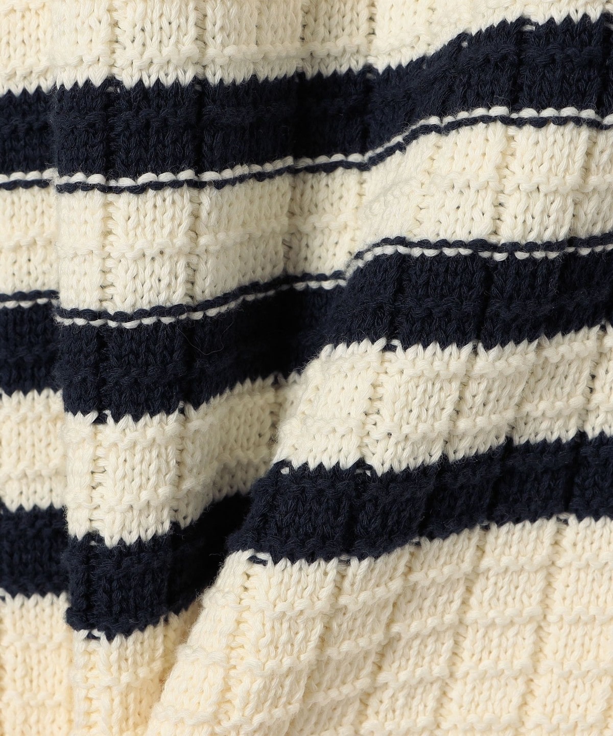 コットンのリリヤーン糸を使用し、ざっくりとしたバスケット編みでボーダー柄を表現しました。