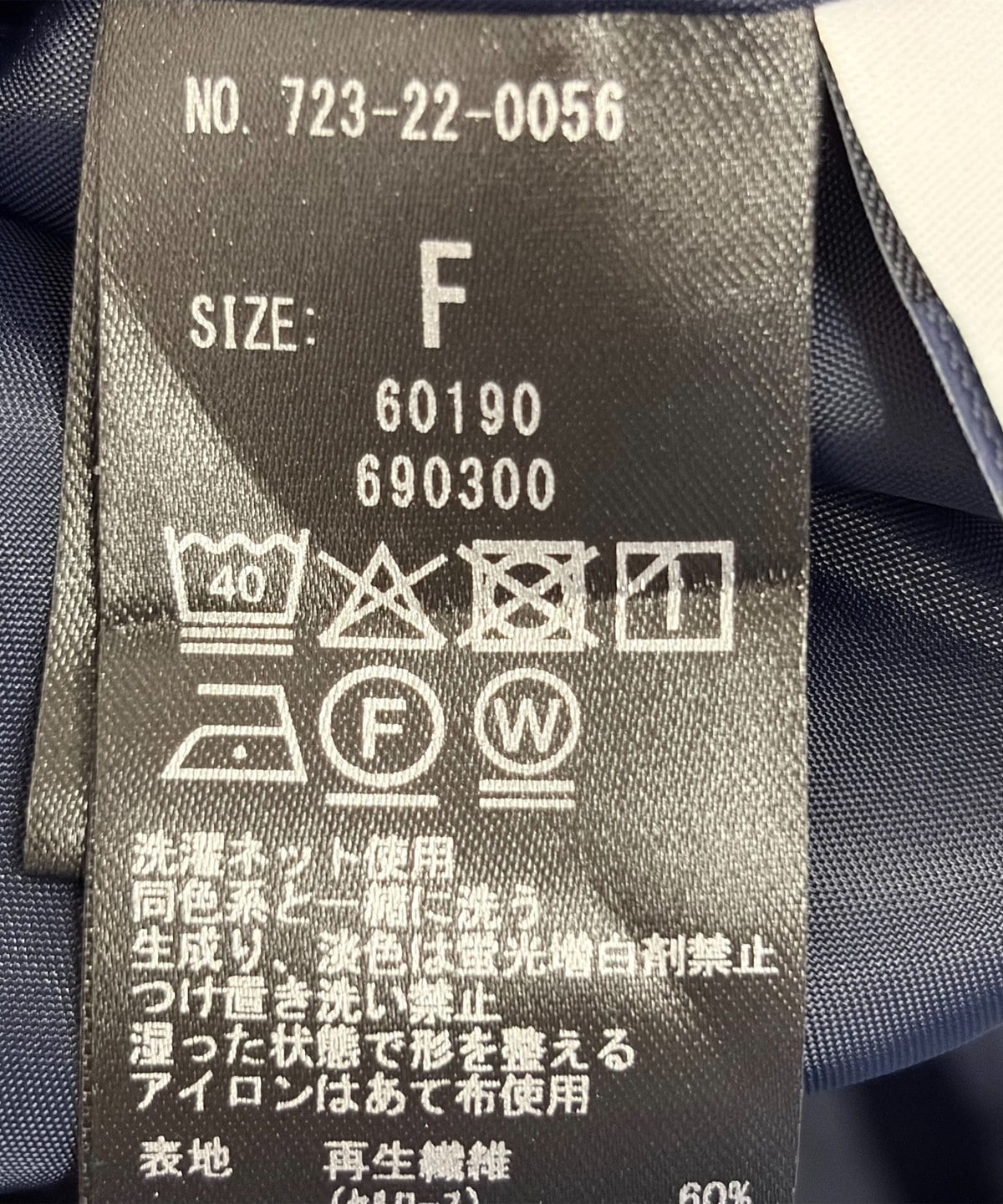 素材:表地: 再生繊維(セルロース)60%, アセテート20%, ポリエステル15%, 麻5%, 裏地: ポリエステル100%