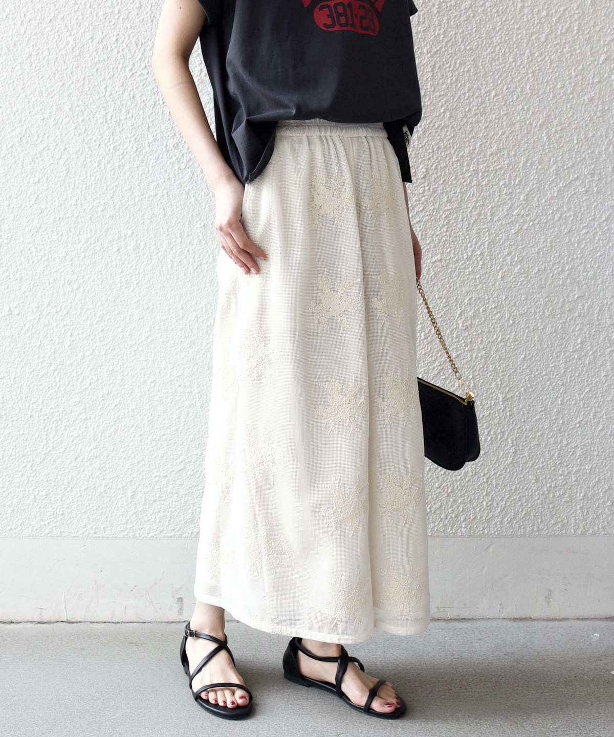 《予約》SHIPS any:〈洗濯機可能〉メッシュ レース エンブロイダリー Iライン スカート
