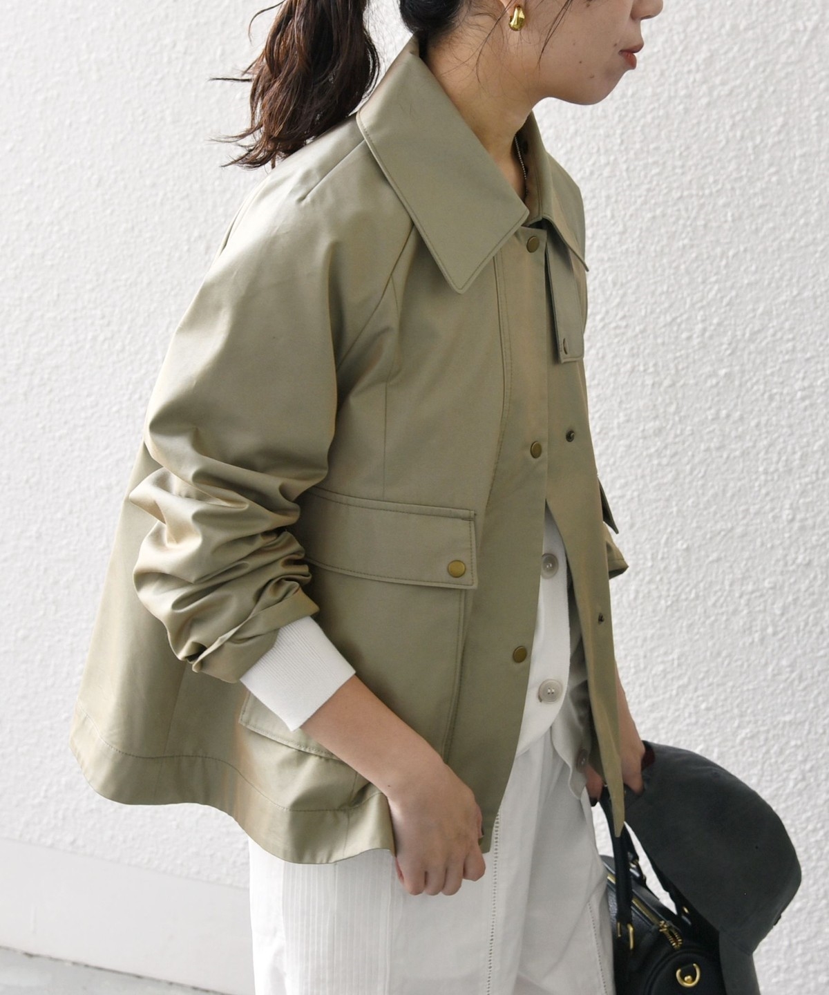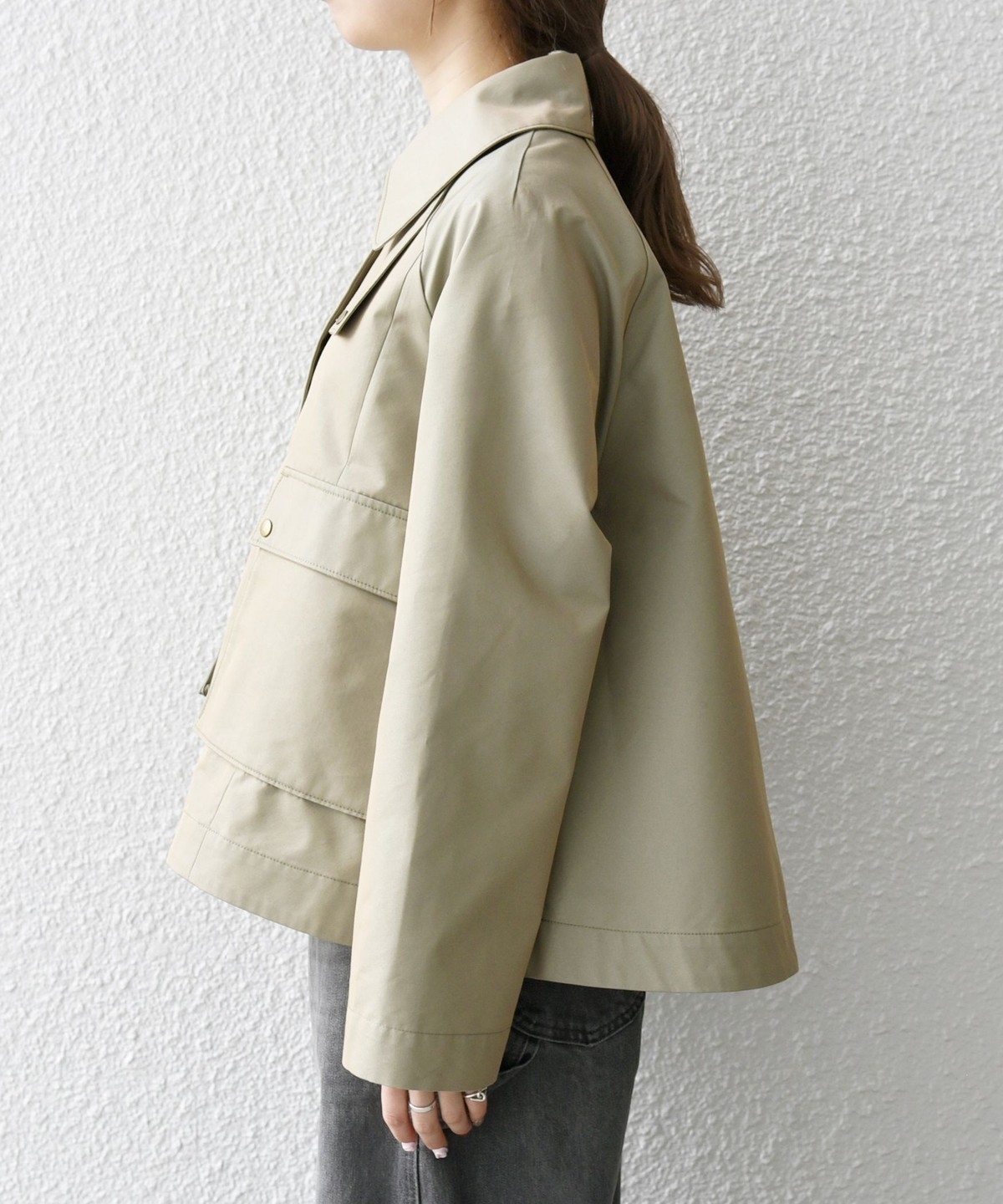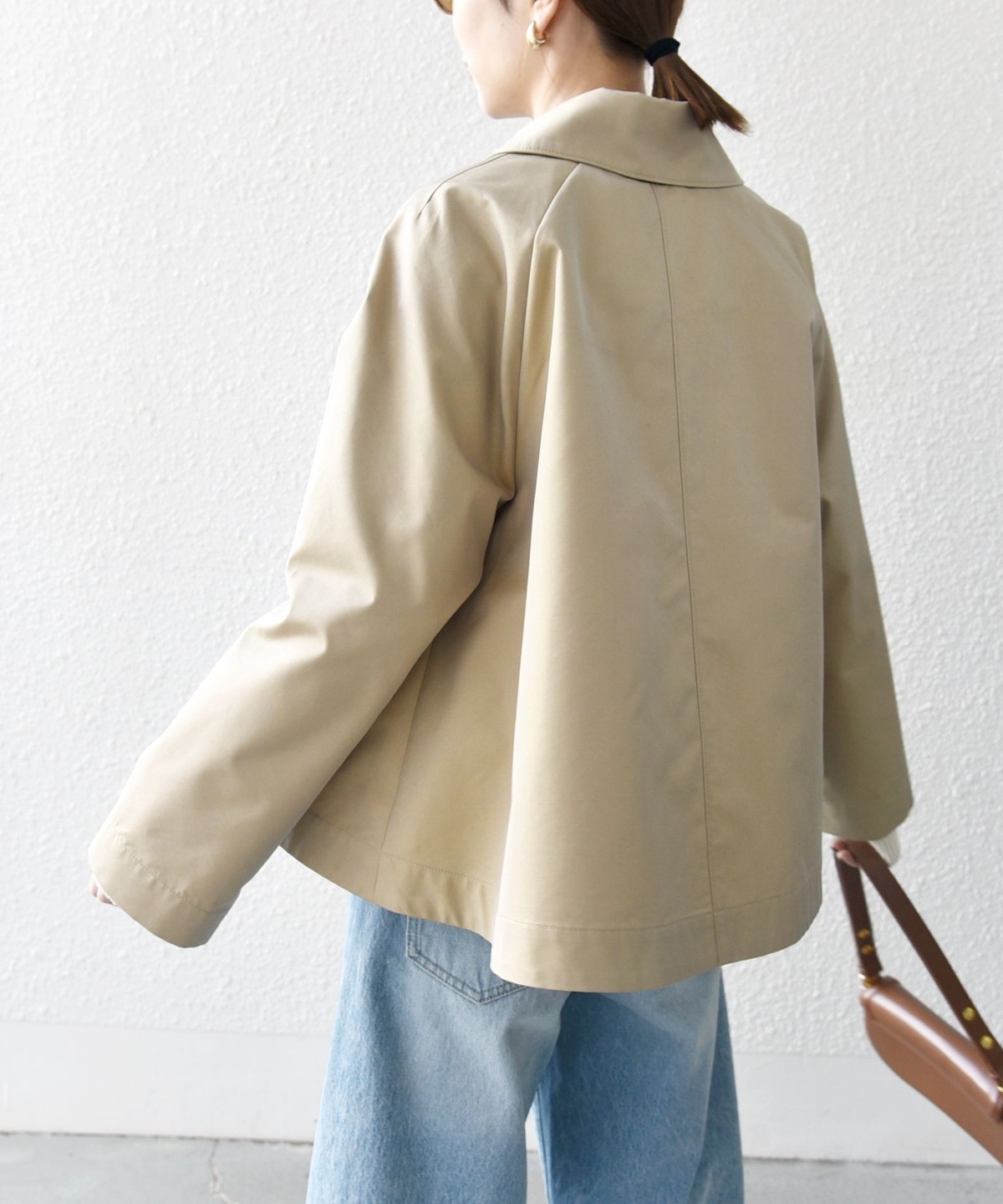 すっきりとしたコンパクトなショート丈に、立体感のあるAラインシルエットが可愛いショートコート。