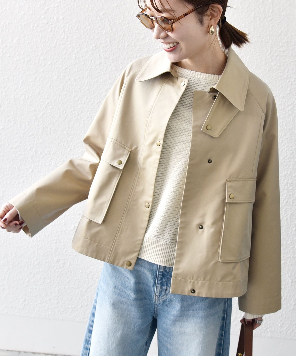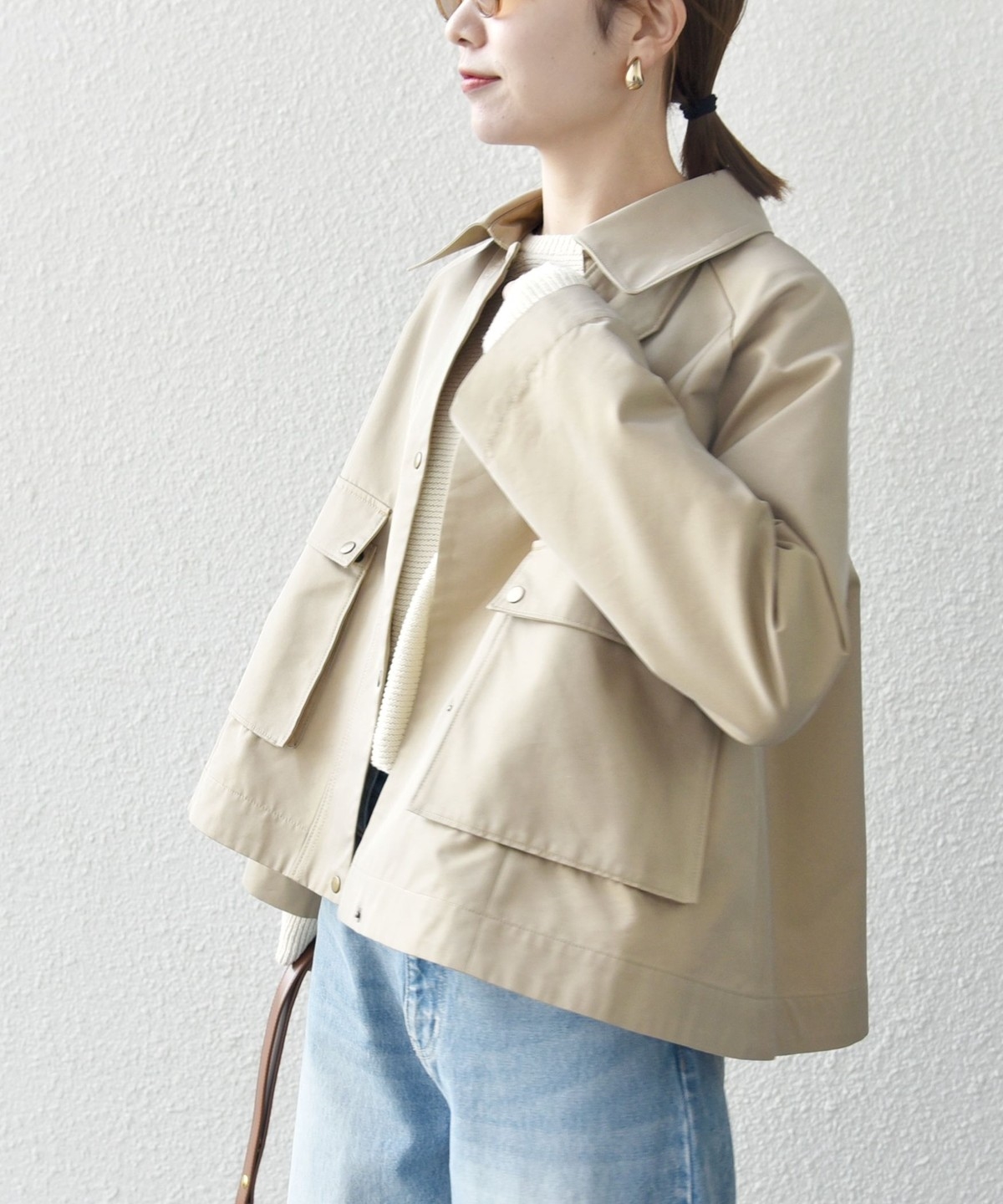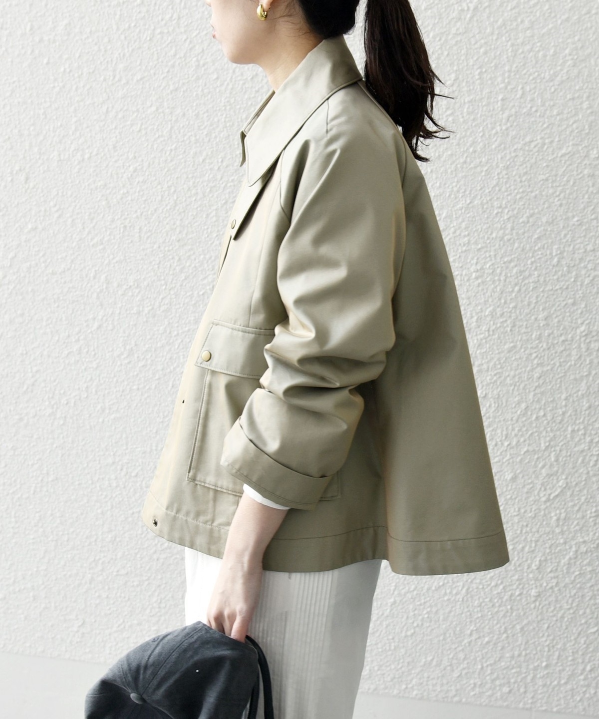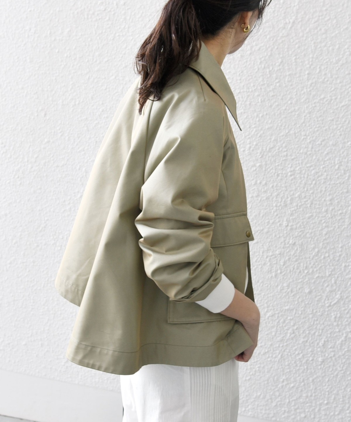 すっきりとしたコンパクトなショート丈に、立体感のあるAラインシルエットが可愛いショートコート。