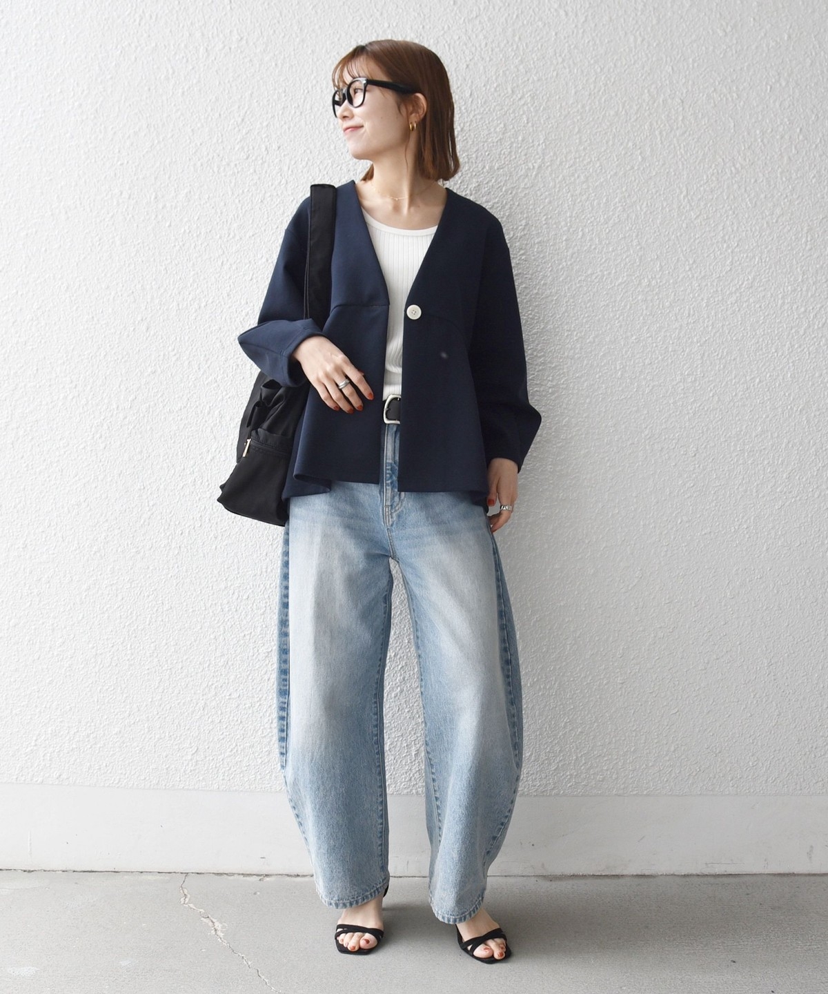 カジュアルときちんと感が両立されたカットソージャケットなので、シーンに合わせて幅広く好相性。