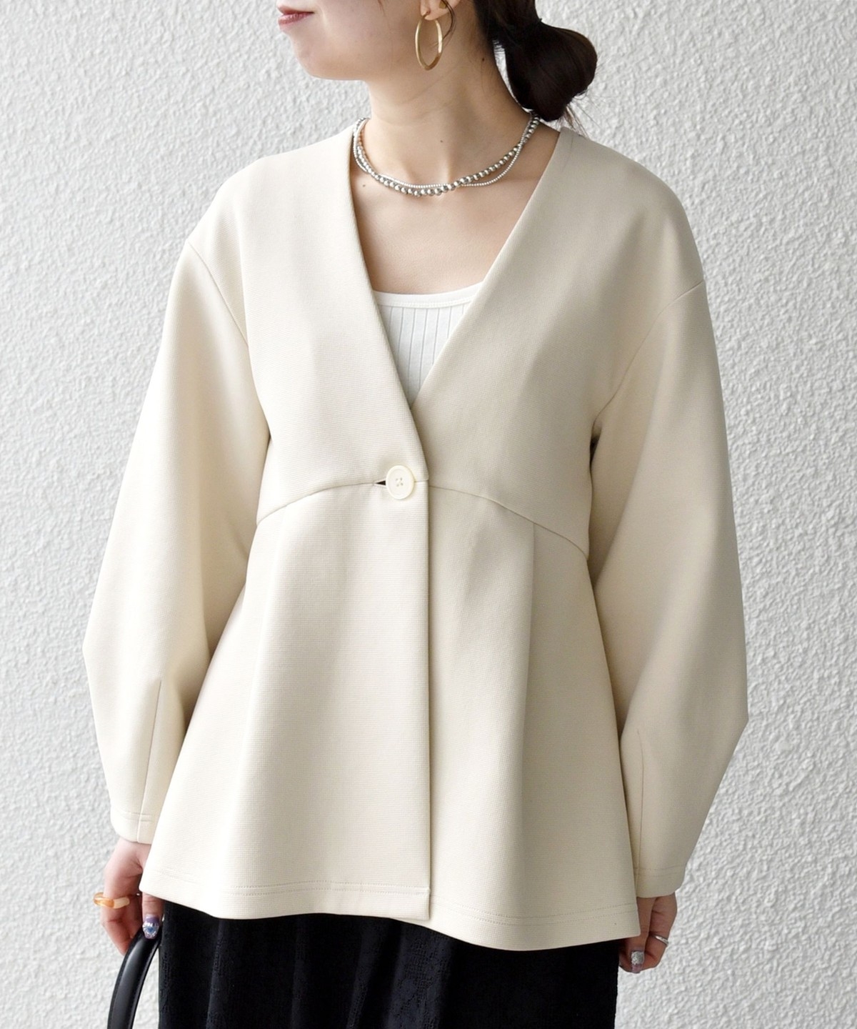《予約》SHIPS any:〈手洗い可能〉ダンボール ペプラム Vネック ジャケット