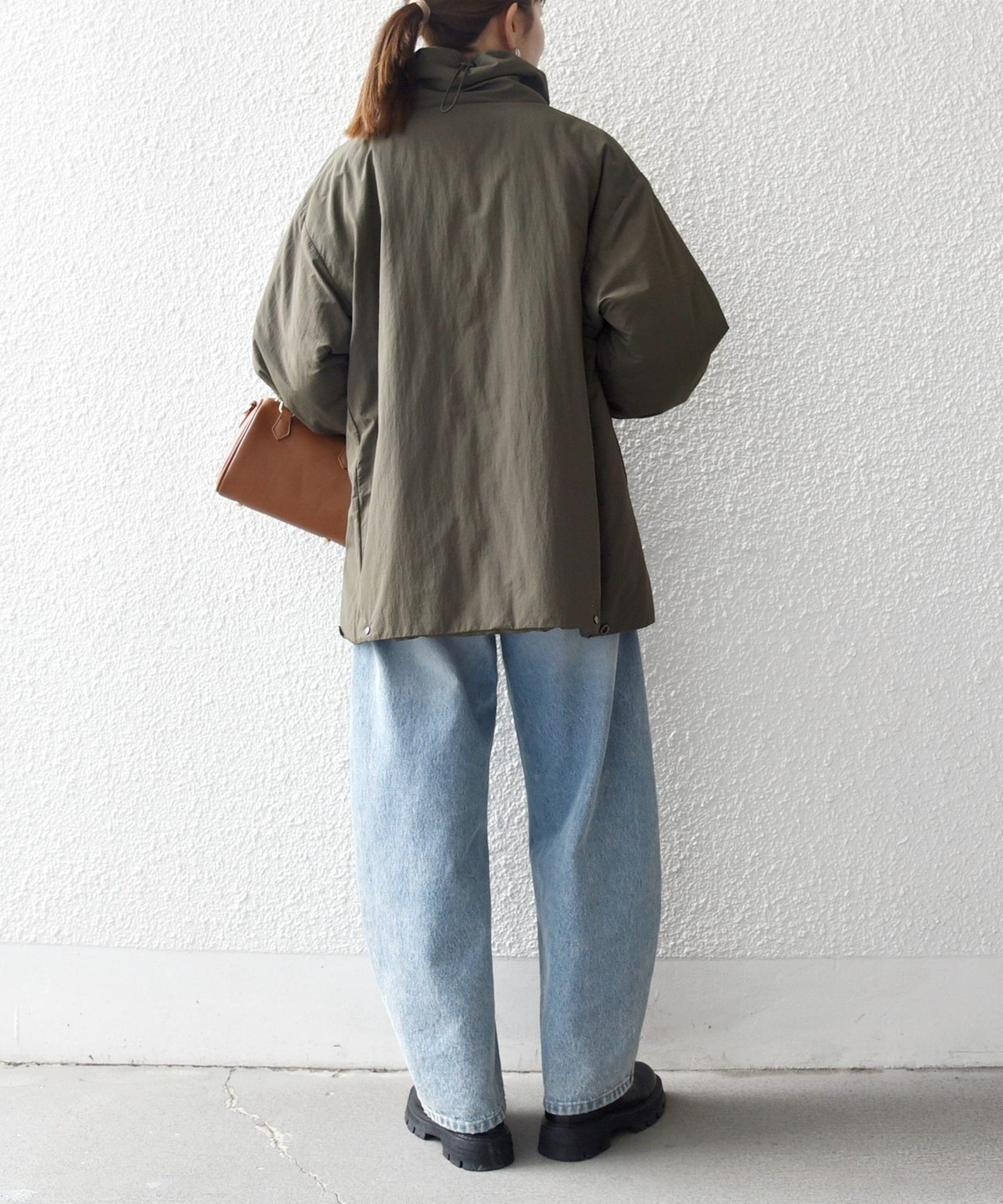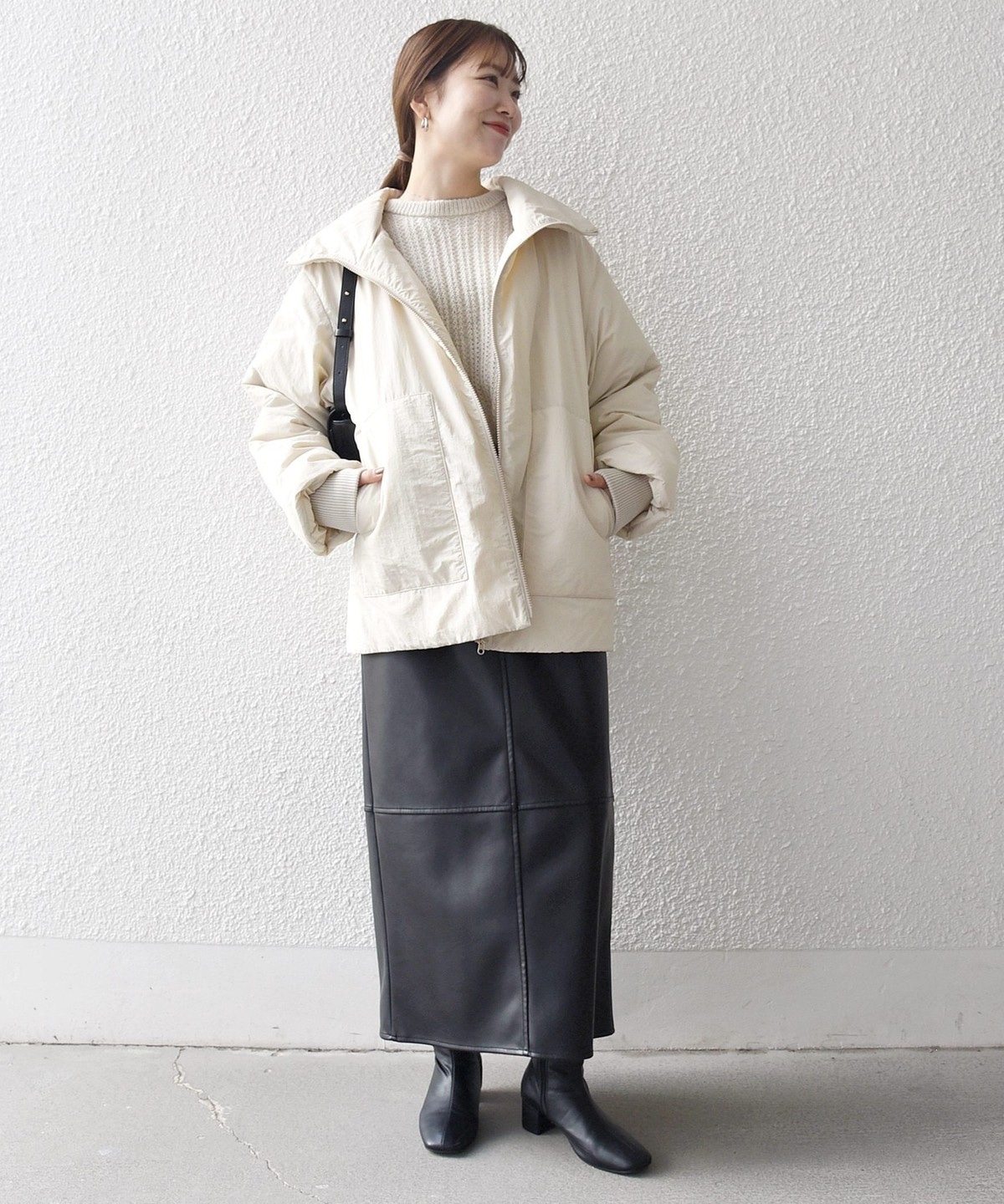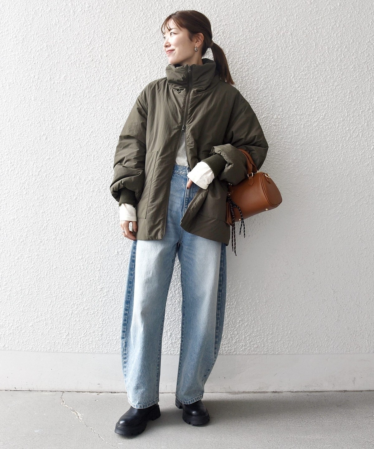 身幅などゆとりのあるサイズ感で、厚手のニットなどをインすれば本格的な冬にも着用可能。