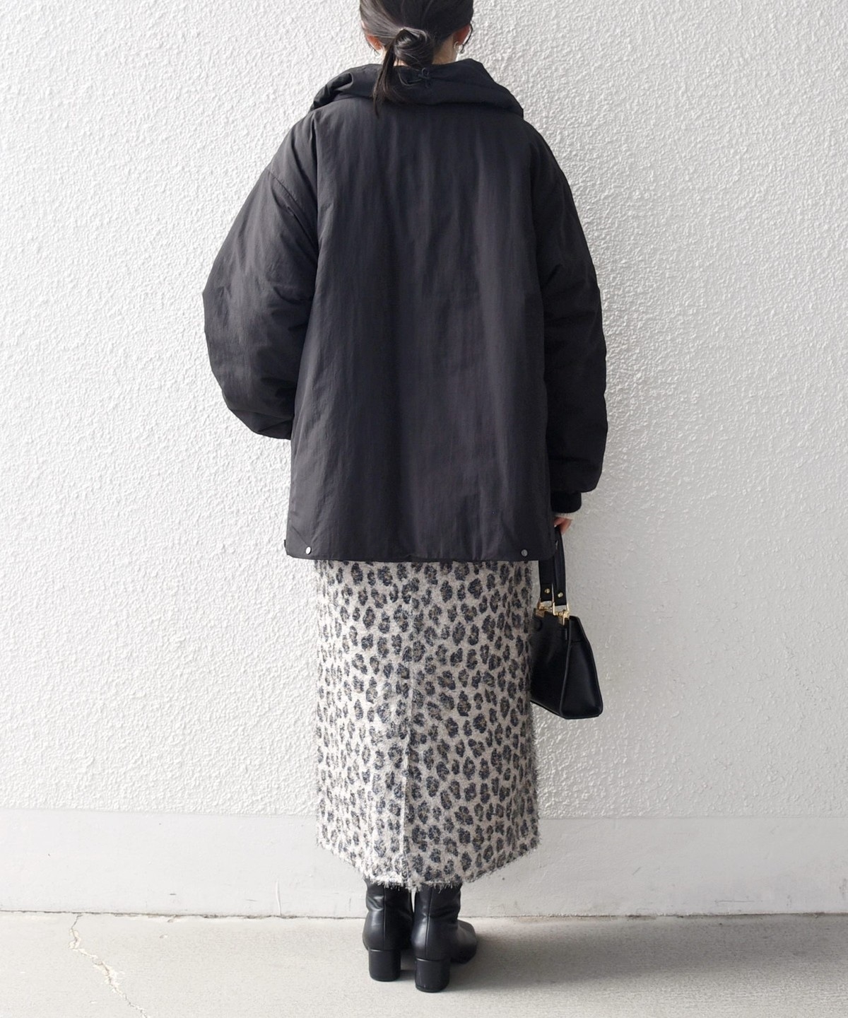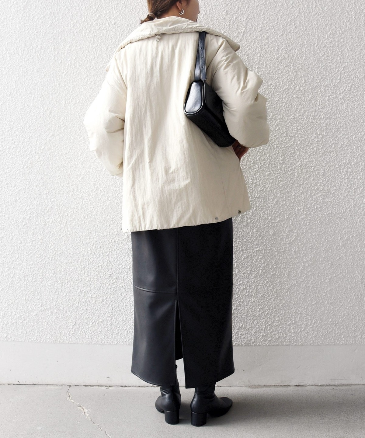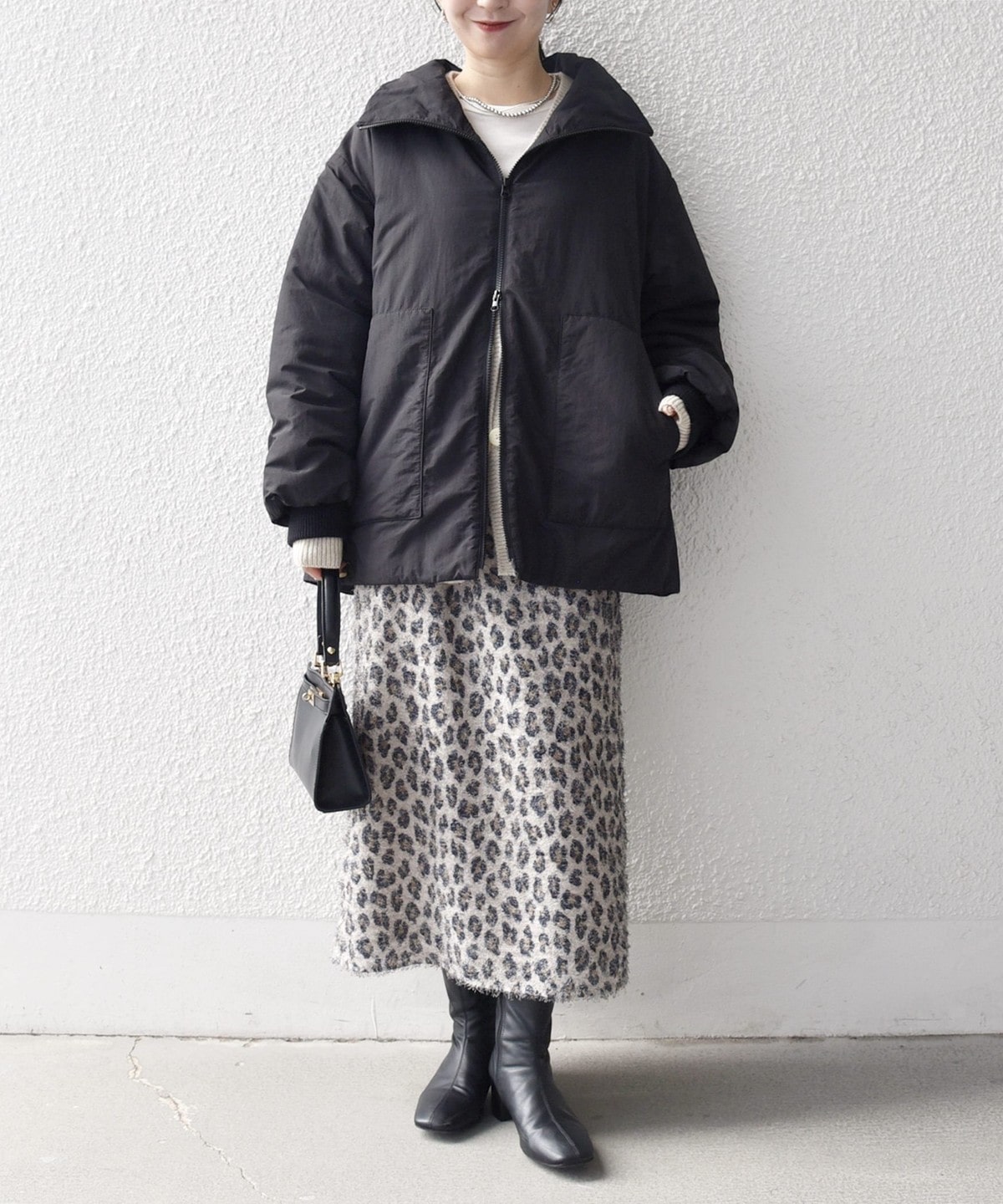 身幅などゆとりのあるサイズ感で、厚手のニットなどをインすれば本格的な冬にも着用可能。