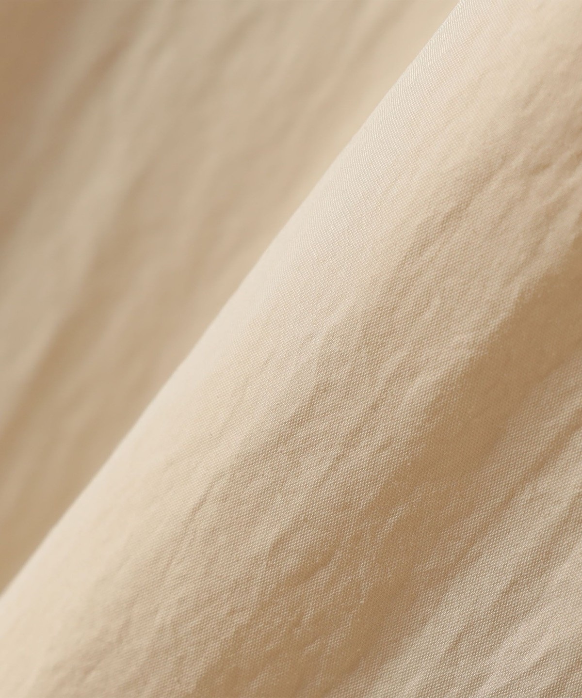 後ろ裾のドットボタンを閉じればコクーンシルエットに、開ければテントラインに変化し、スタイリングの幅が広がります。