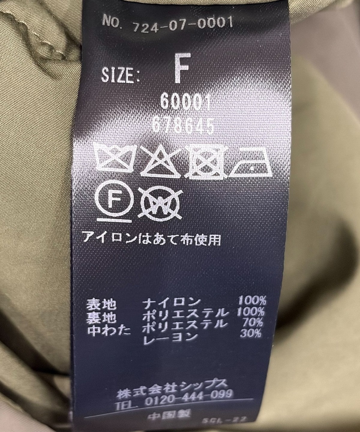 素材:表地: ナイロン100%, 裏地: ポリエステル100%, 中わた: ポリエステル70%, レーヨン30%