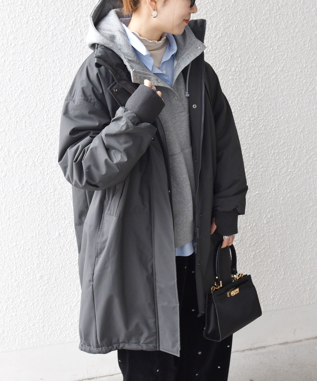 2. SHIPS any:〈多機能〉中綿 2WAY スタンドカラー モンスター コート チャコールグレー