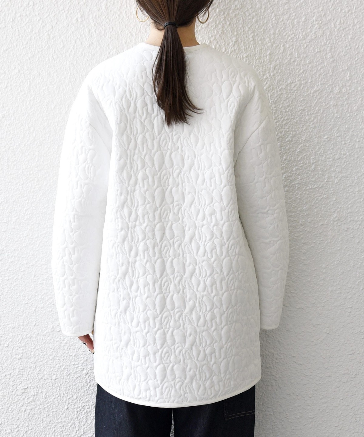 1. 《予約》SHIPS any: キルティング ステッチ ノーカラー ミディ コート オフホワイト