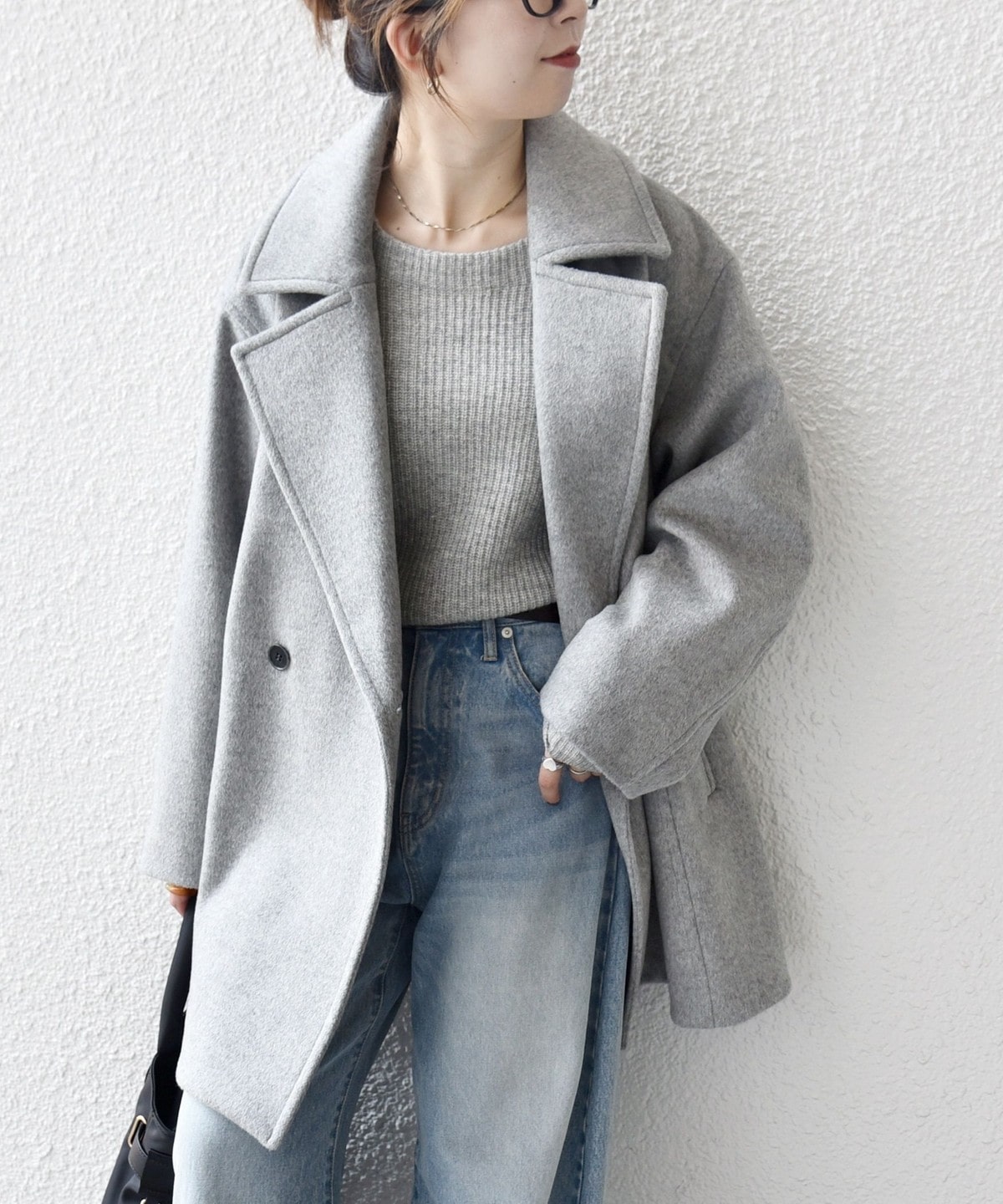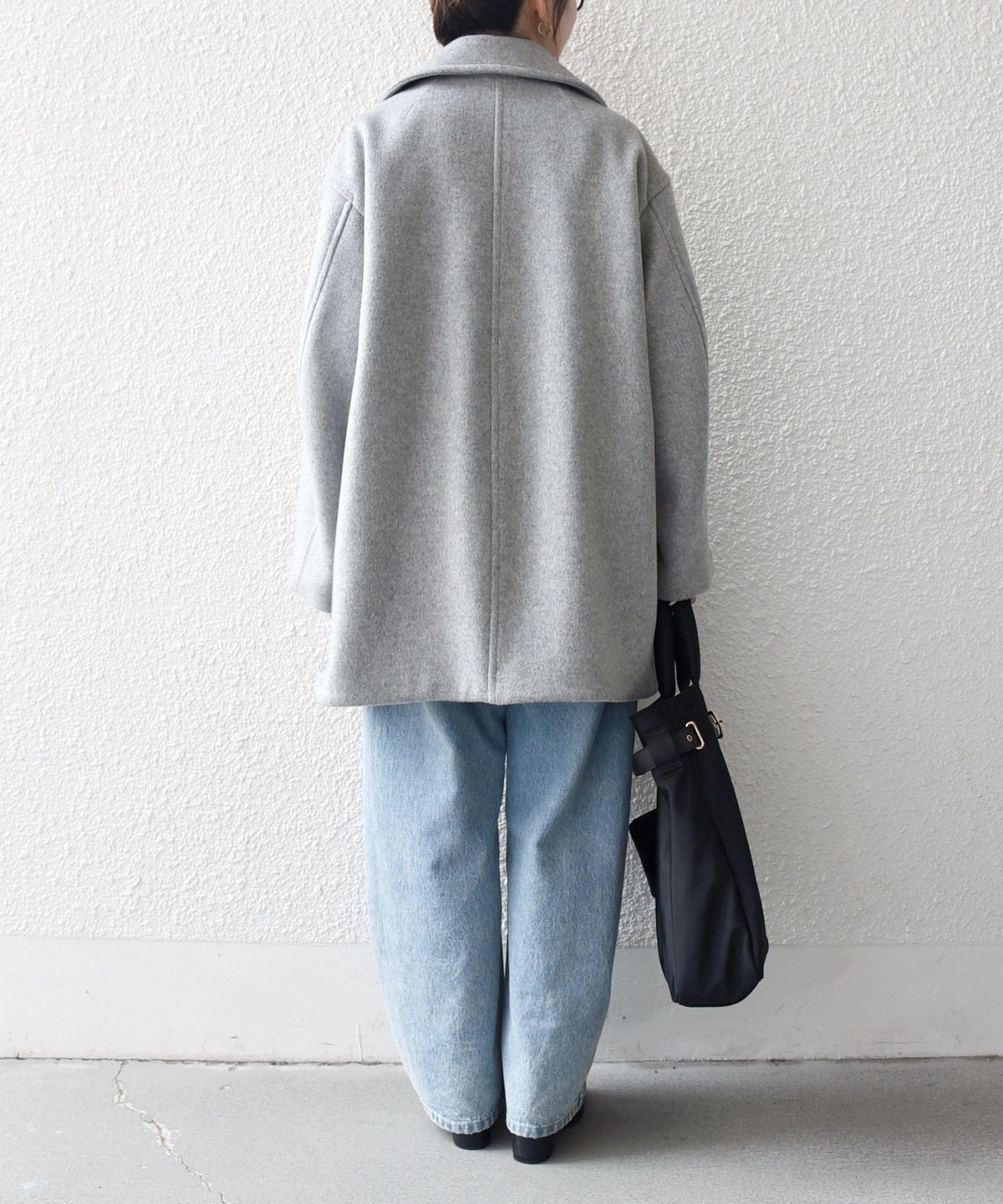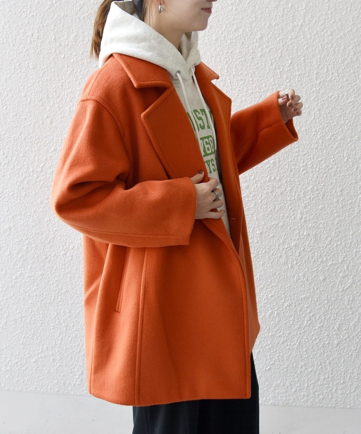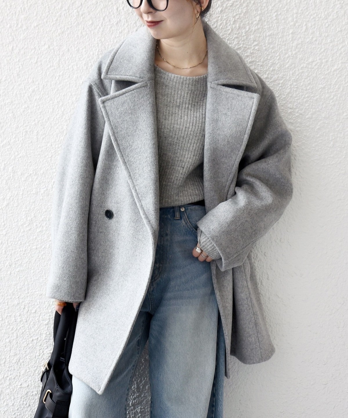 厚手のニットも着用できるサイズ感でありながら、オーバーサイズに見えない計算されたシルエットがポイントです。
