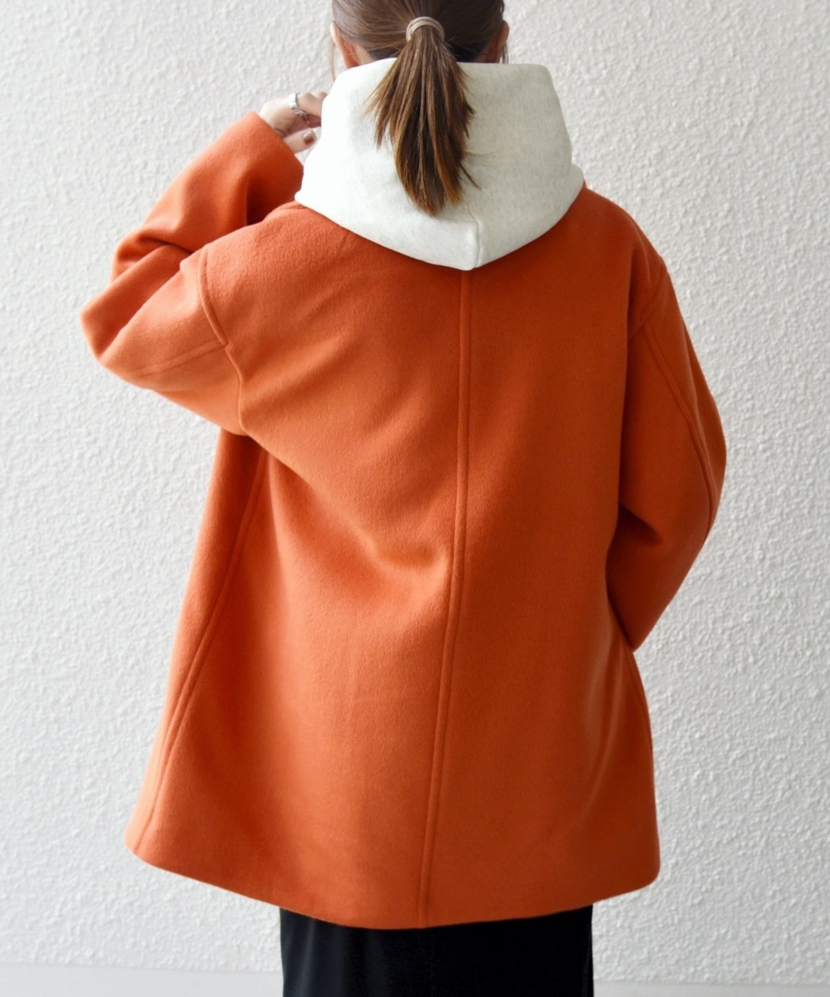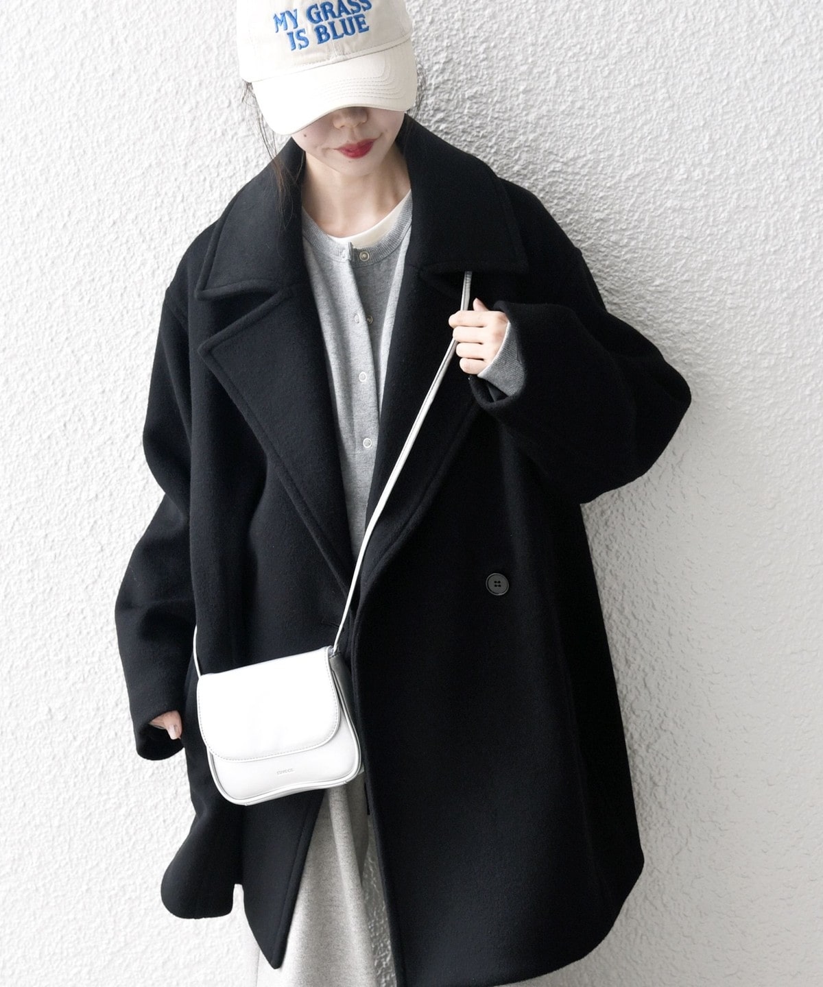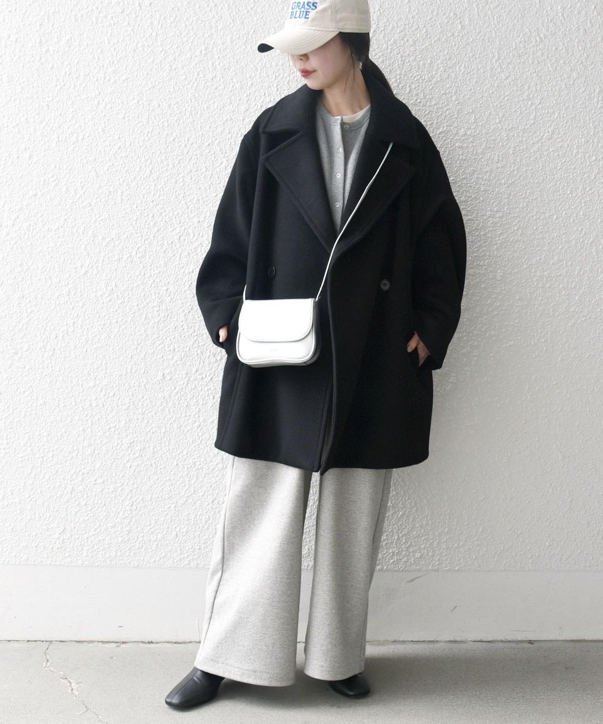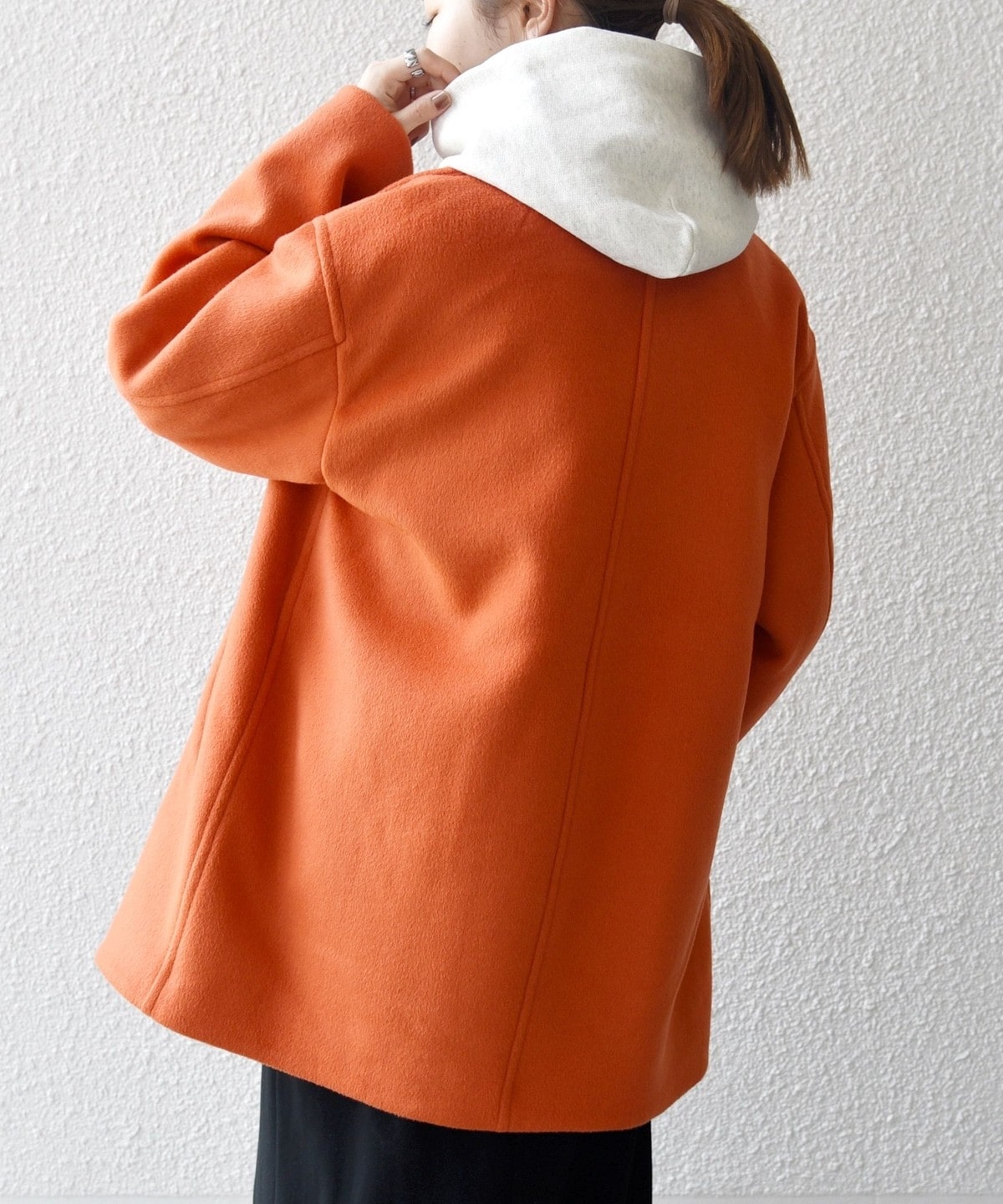 厚手のニットも着用できるサイズ感でありながら、オーバーサイズに見えない計算されたシルエットがポイントです。